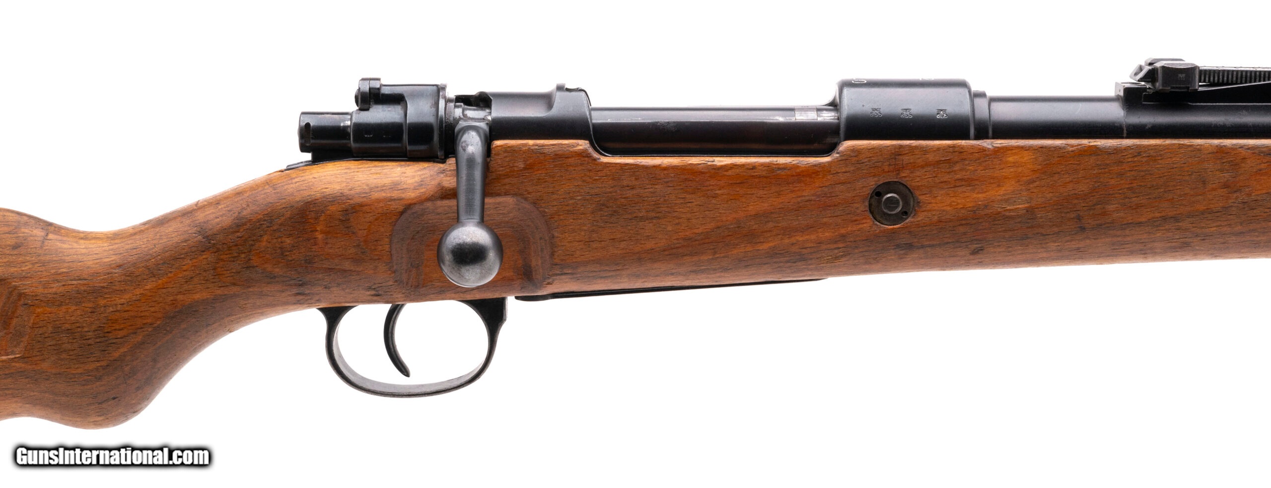 Description: "Serial No. 2521q, made in 1940, 8mm, 24" round barrel. Bore is excellent with strong rifling noted. This rifle is all matching down to the follower and firing pin. 97% original factory blue remains with the receiver having “Eagle/655" waffenamts visible. Just below the rear sight on the right-hand side can be seen “Eagle/WaA656". Stock is in excellent condition with minimal handling wear noted. Action is smooth and functions correctly. This is a hard-to-find example and would make any surplus collection proud! SOLD Curio/Relic: Yes |