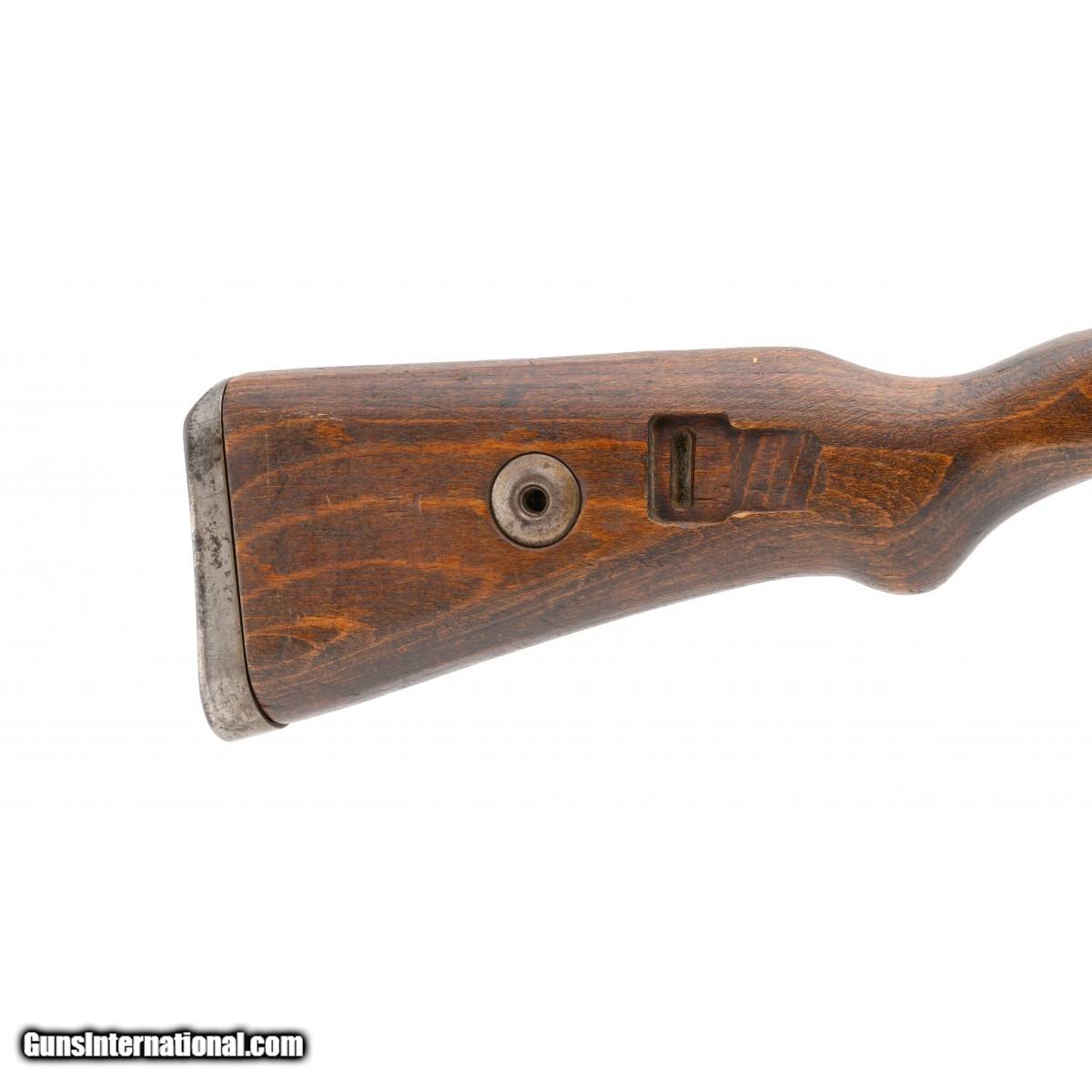 SN: 9370. Made in 1944 by Gustloff Werke in Wiemar with a 23.62-inch barrel chambered for the 8mm Mauser rifle cartridge. Overall condition is very good with original dull phosphate factory finish across the metallic parts that is fading with age in some spots & mostly worn away near the muzzle. The laminate wood buttstock is in very good condition with no cracks but only moderate handling wear, & the handguard is matching in both color & condition. Gun is numbers matching & NOT import marked. Comes with a front sight hood, a 12.5-inch cleaning rod & nine brass 5-round stripper clips.