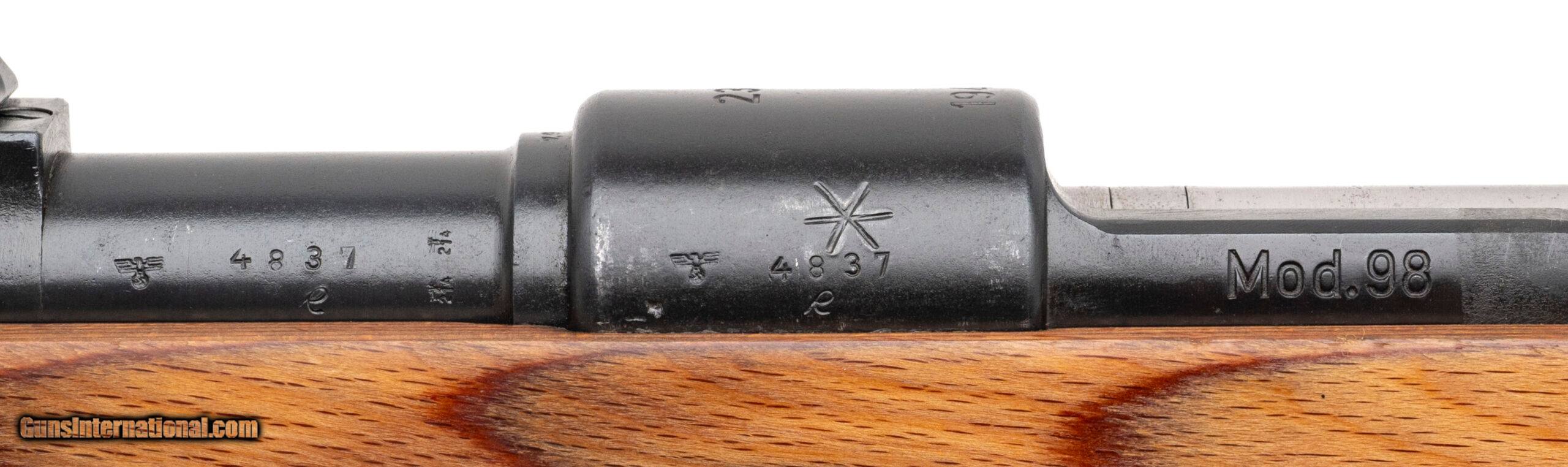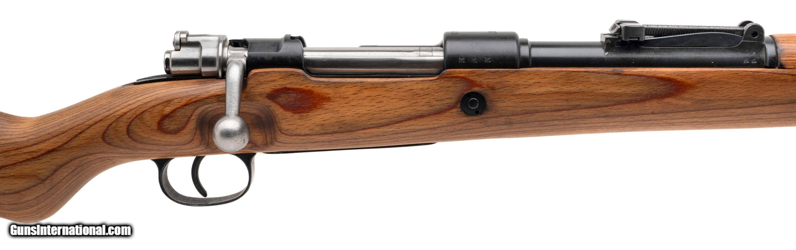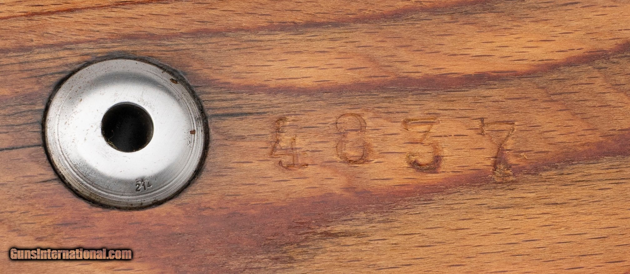 Description: "Serial Number 4837e. Made in 1940 by Berlin-Lubecker Maschinenfabriken with a 24-inch barrel that has a bright bore with strong visible rifling. This is a ""Mitchell's Mausers"" conversion of a Russian capture Kar98k, so the bolt is ""in the white"" & the other metallic parts have all been refinished. The wood has also been refinished & force numbered to the gun's serial number. There are import marks on the left side of the barrel. Comes with a 10.5-inch cleaning rod. Curio/Relic: Yes Price: $1,250.00 Contact Seller |