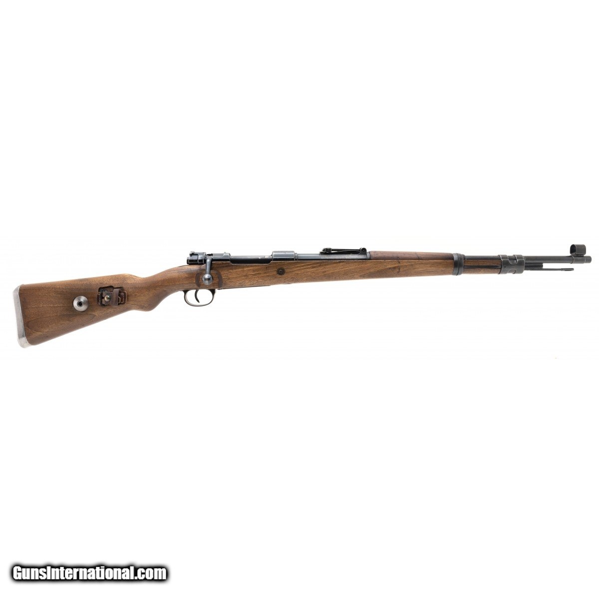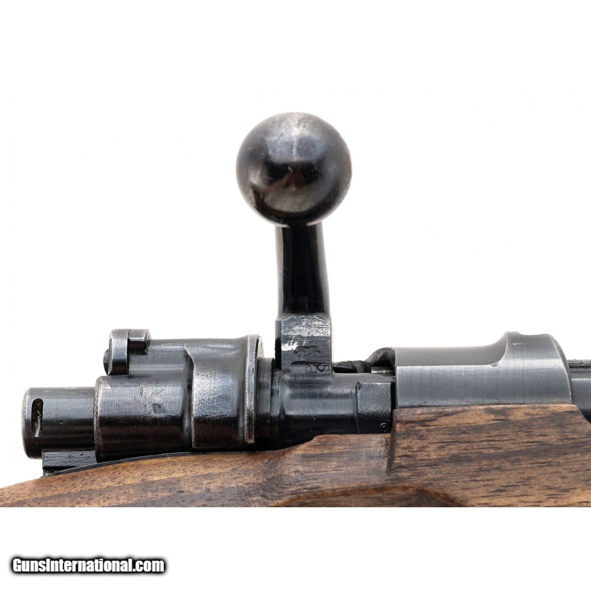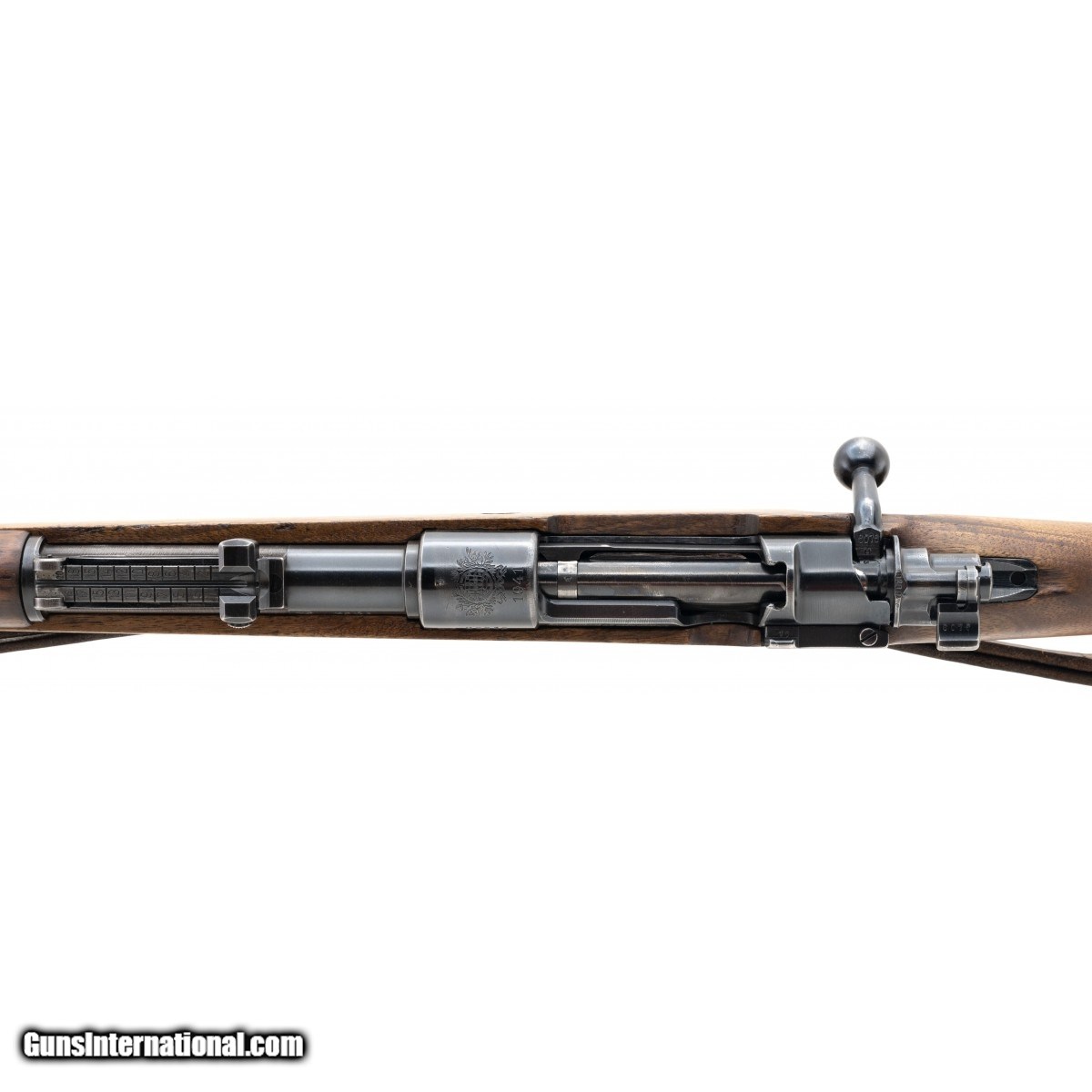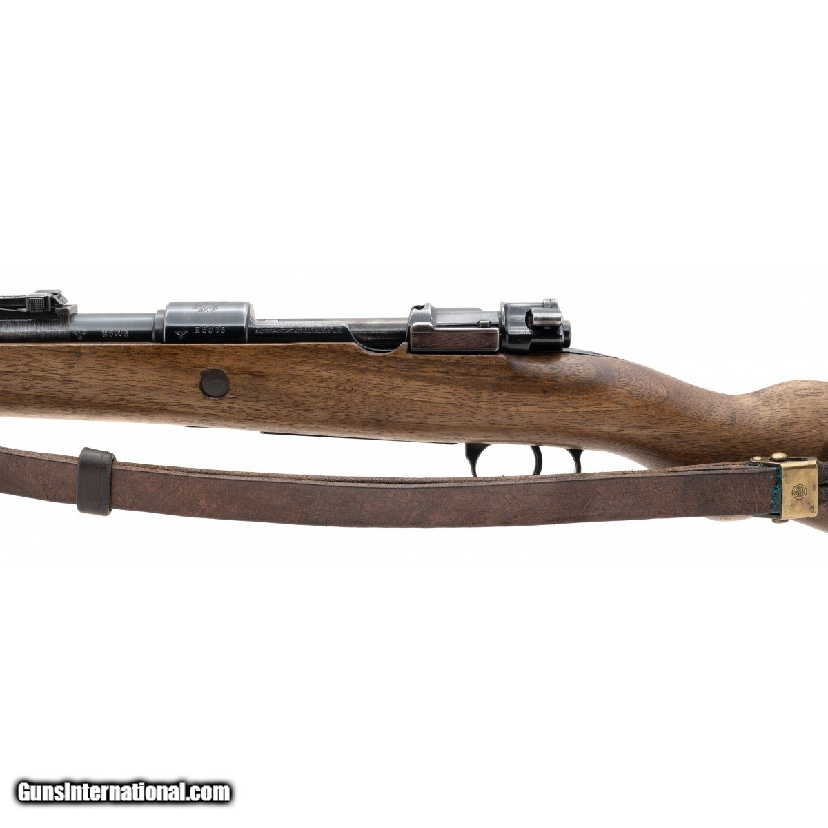 SN: H6016. made in 1941 by Mauser Oberndorf. Chambered in 8mm with, 24"" round barrel, bore is bright and shiny with strong rifling noted. This example is from the ""H"" block series that is believed to be undelivered and sent back for the German Army. Serial numbers are matching, receiver is marked with the Portuguese crest over 1941 with waffenamts visible. Action functions correctly.