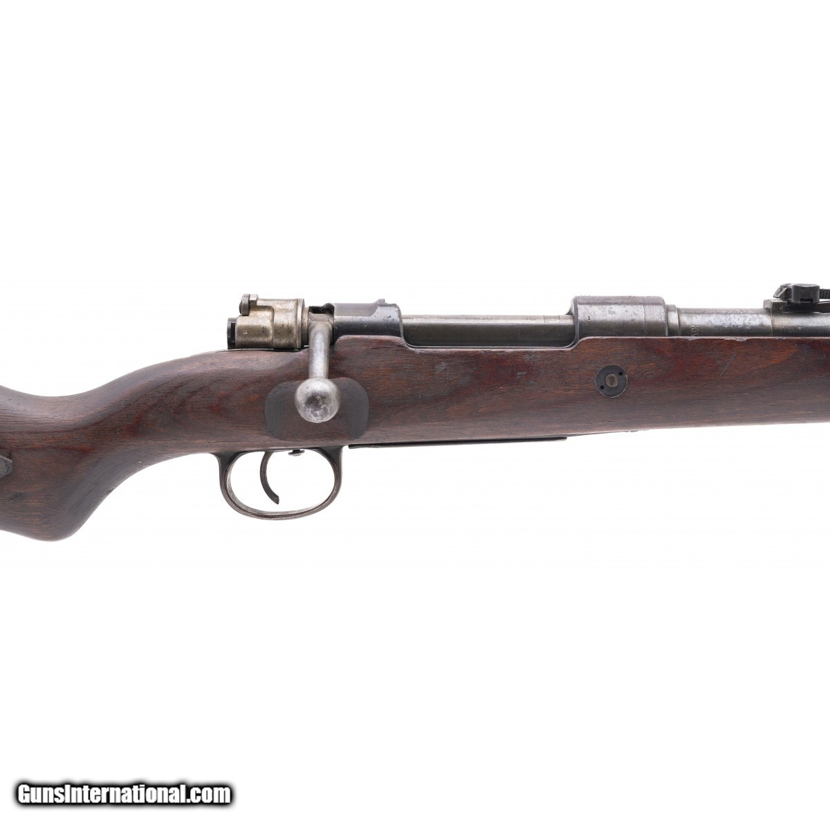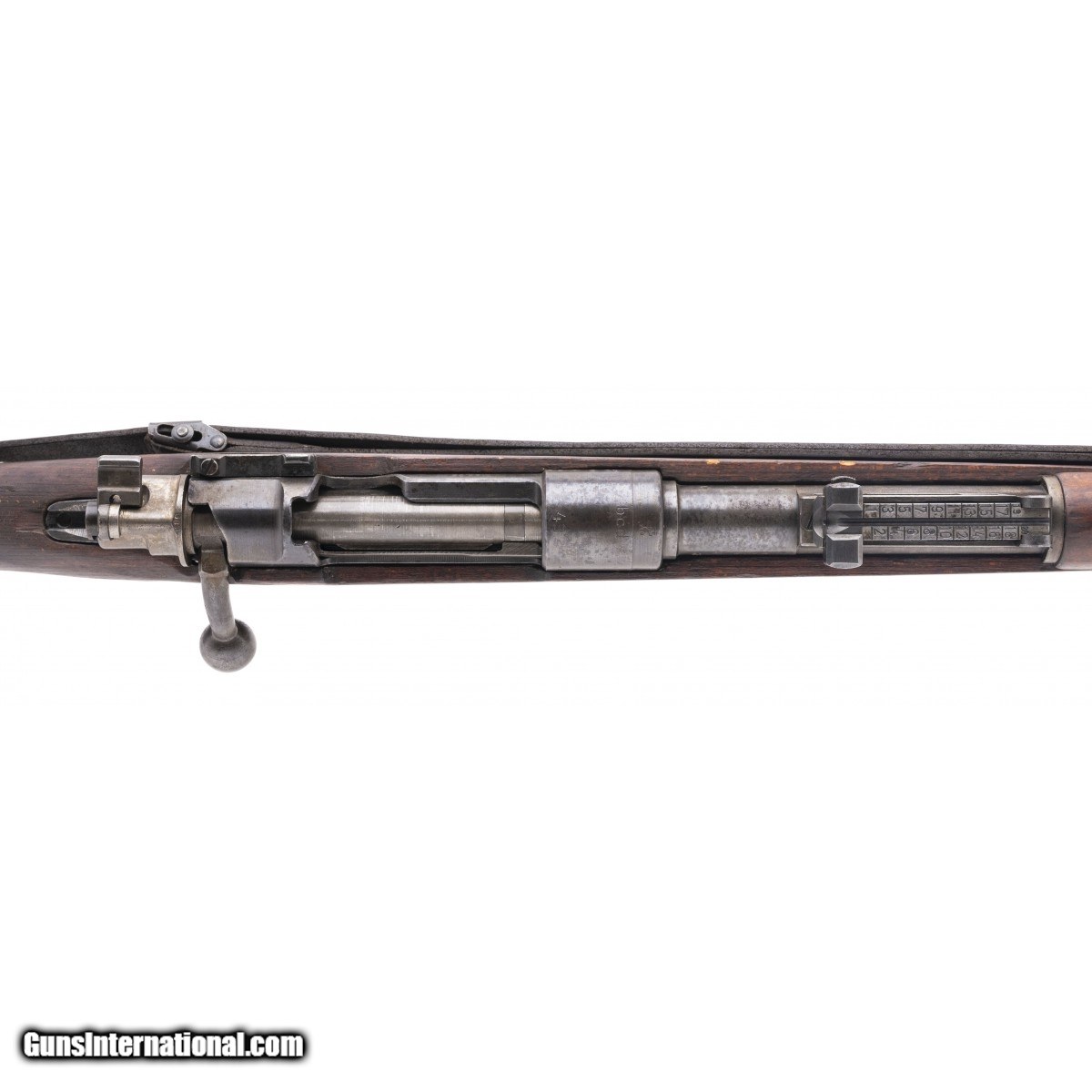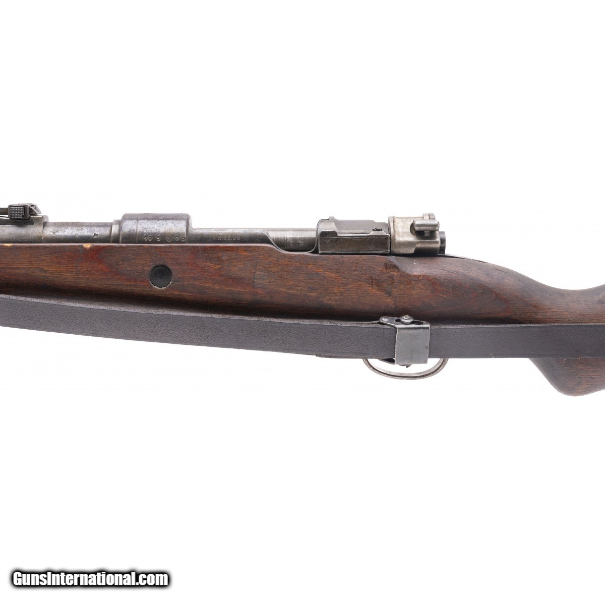 Description: " SN: 1950EE. Made in 1943 at Gustloff Werke in Wiemar with a 24-inch barrel chambered for the 7.92x57mm cartridge. Overall excellent condition with a bright bore & strong rifling. The laminate stock is also excellent with no scratches, dings or dents & the handguard is matching in both color & condition. Stock is of the late war ""kriegsmodell"" pattern. Original finish remains across all metal parts but it is a little faded with no rust. Comes with a 12.5-inch cleaning rod, leather sling & original muzzle cover. Consignment SOLD Curio/Relic: Yes |