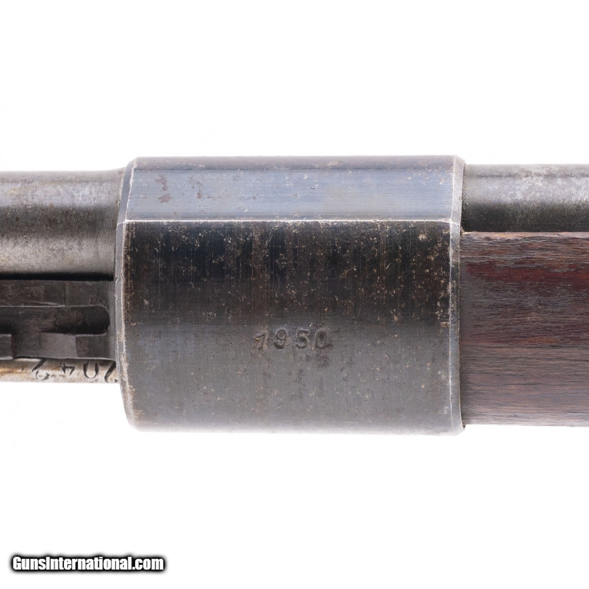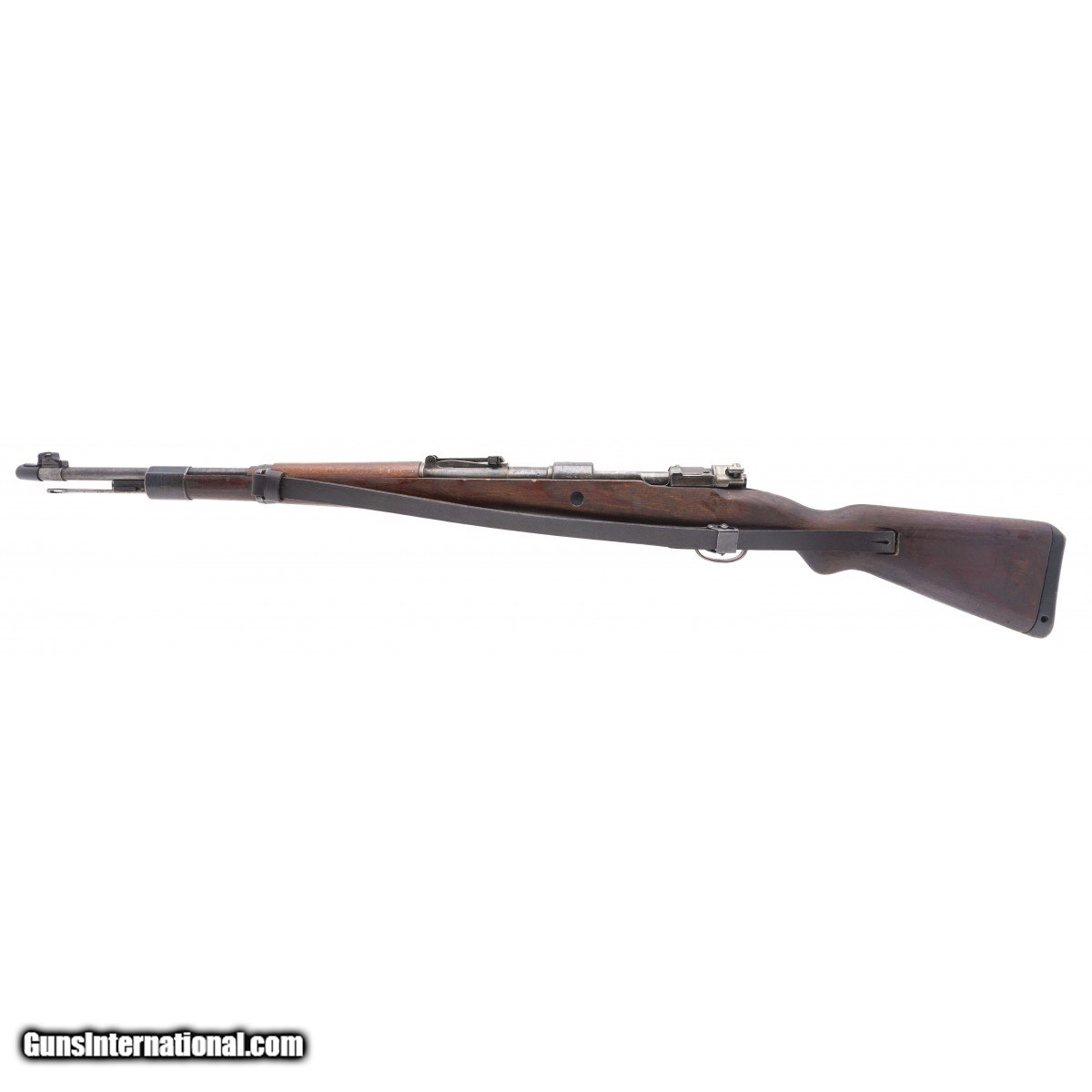 SN: 1950EE. Made in 1943 at Gustloff Werke in Wiemar with a 24-inch barrel chambered for the 7.92x57mm cartridge. Overall excellent condition with a bright bore & strong rifling. The laminate stock is also excellent with no scratches, dings or dents & the handguard is matching in both color & condition. Stock is of the late war ""kriegsmodell"" pattern. Original finish remains across all metal parts but it is a little faded with no rust. Comes with a 12.5-inch cleaning rod, leather sling & original muzzle cover. Consignment