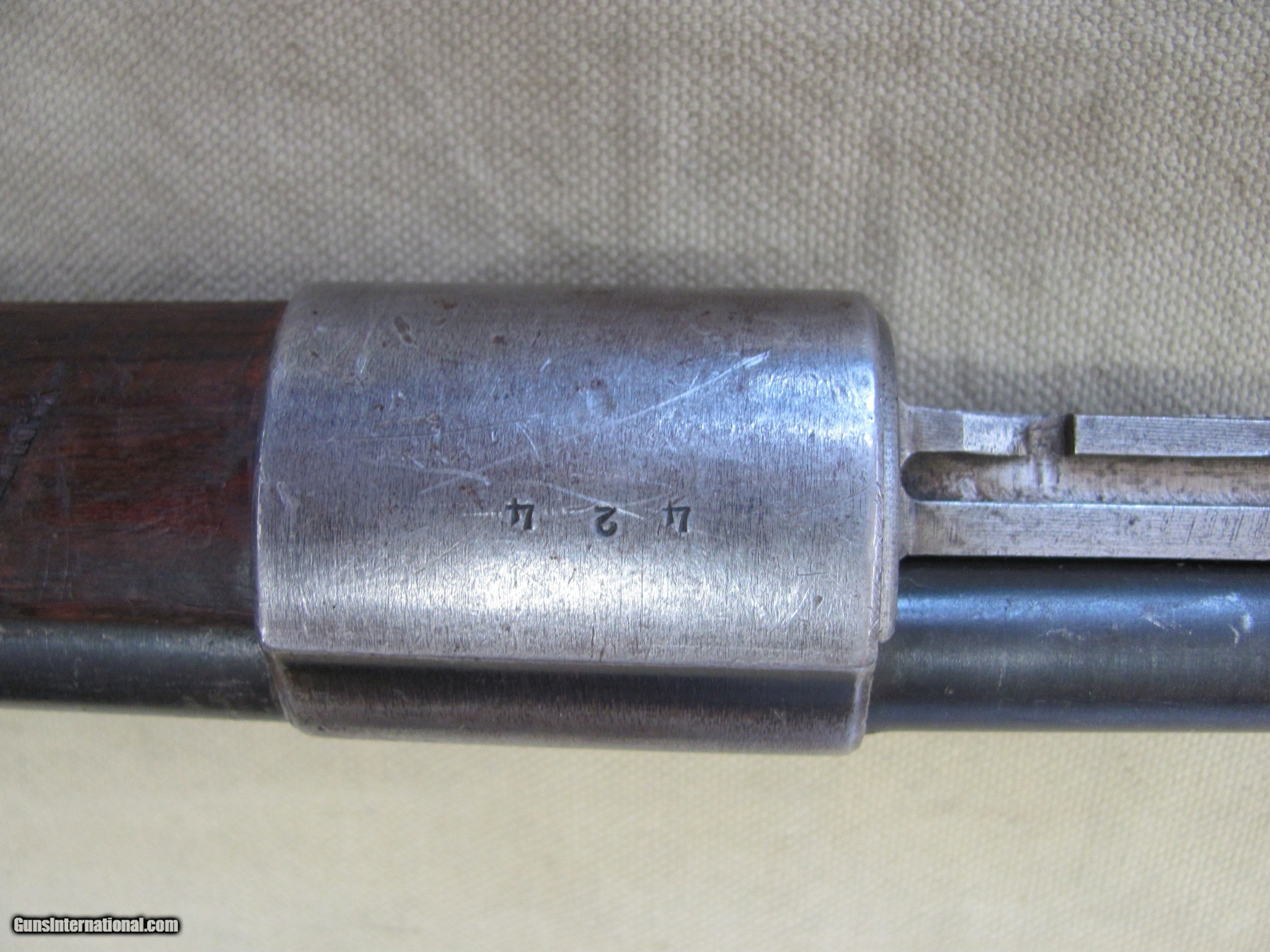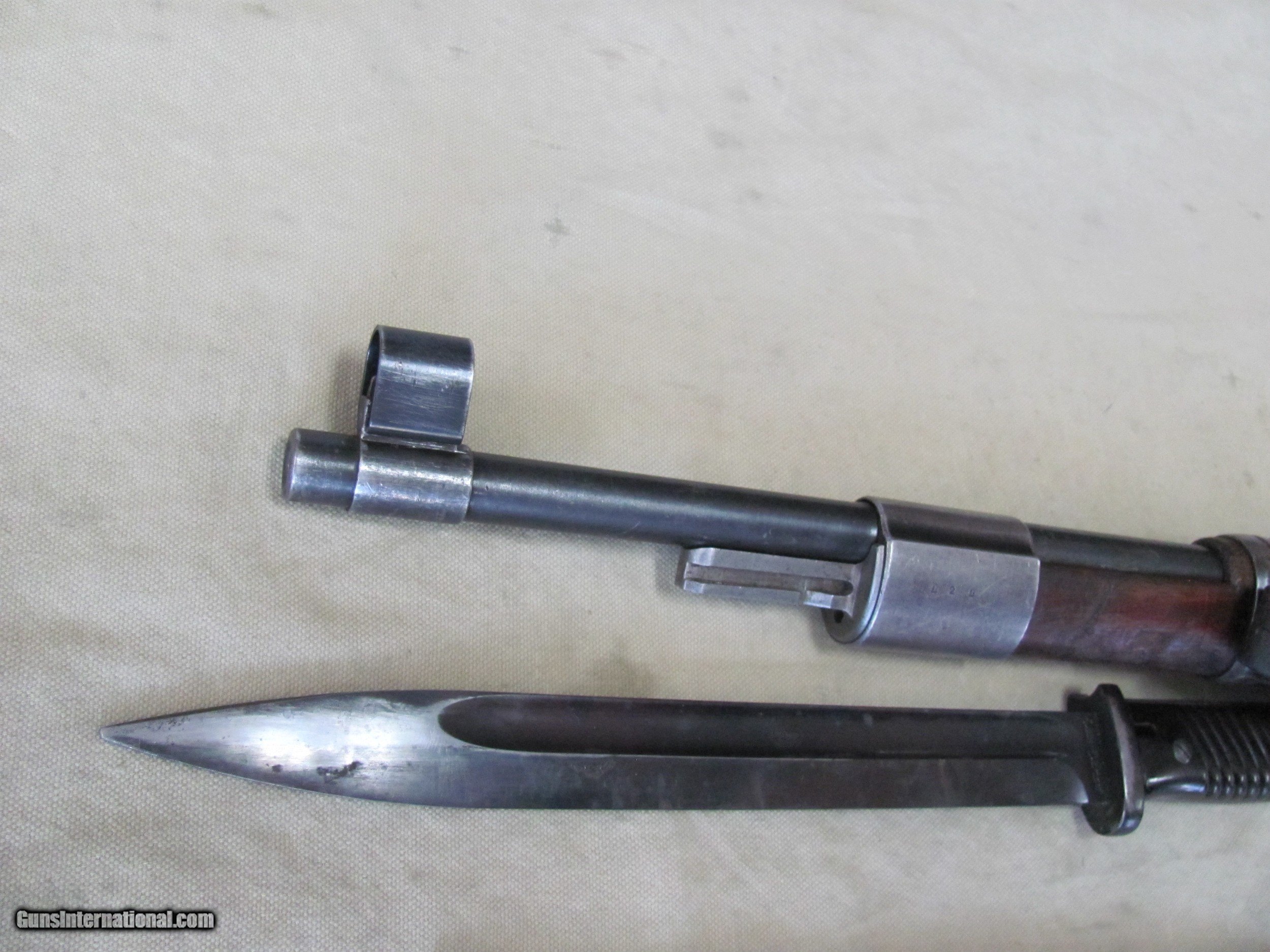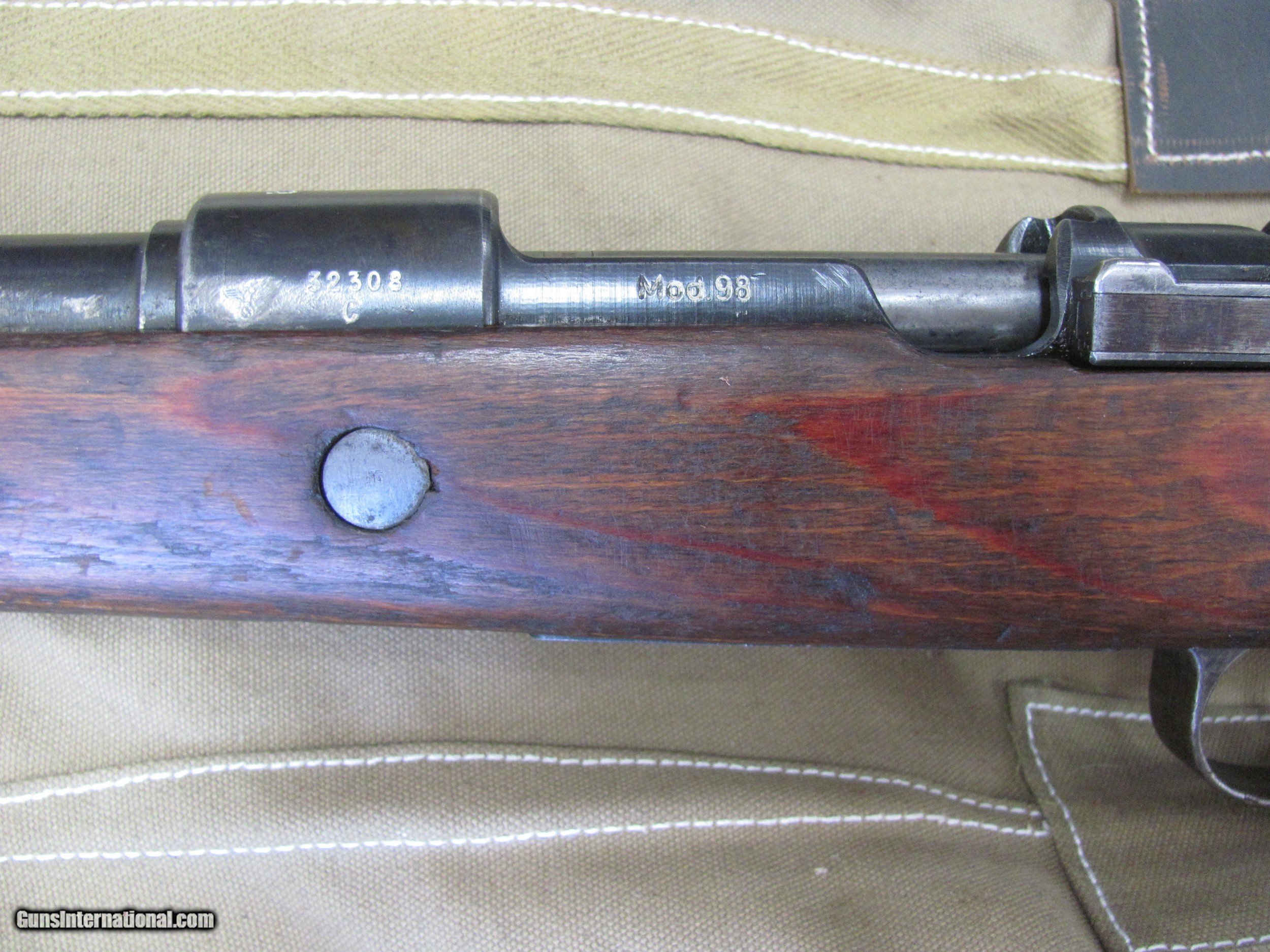 Description: THIS IS A 1943 BYF NAZI STAMPED 8X57 CALIBER MODEL 98 MAUSER BOLT ACTION RIFLE WITH BAYONET THE SERIAL NUMBERS NON MATCHING AND THE CANVAS ACTION COVER IN REPRODUCTION THE BLUE FINISH SHOWS YEAR AND THERE IS A GRIND MARK ON THE LEFT SIDE OF THE BARREL CLOSE TO THE RECEIVER (SHOWN) . THE LAMINATED WOOD SHOWS YEARS OF WEAR AND ALTHOUGH I LOOKED CLOSELY AND DIDN'T FIND ANY CRACKS IT IS POSSIBLE I MISSED ONE. THE 24” BORE IS MILDLY AND UNIFORMLY PITTED THE LENGTH AND THE RIFLING AT LEAST 70% SO PROBABLY A GREAT SHOOTER THE SHOWN OLD LEATHER SLING, CLEANING ROD, BAYONET AND REPO-ACTION-COVER INCLUDED. AS SHOWN IN THESE MANY CLOSE UP PICTURES ALSO IF YOU NEED OTHER PHOTOS EMAIL ME AND I WILL GET THEM FOR YOU. IF YOU WONT, THEN DON’T CRY AFTER THE SALE. A CURIO WILL WORK ON THIS SALE BUT UNDERSTAND THAT WE WILL PUT A SIGNATURE ON THE PACKAGE SO IT WONT GET LEFT ON A PORCH BUYER PAYS A FIXED AMOUNT OF 35.00 GROUND INSURED SHIPPING TO THE LOWER 48 MAINLAND STATES. SHIPPING TO ALASKA, HAWAII OR PUERTO RICO WOULD BE 78.00 NO SHIPMENTS OUTSIDE THE USA. MISSOURI RESIDENTS DO PAY A 8.075% SALES TAX. NO EXTRA CHARGE FOR CREDIT CARDS. BRANDON'S GUN TRADING CO LLC 321 EAST 20TH ST JOPLIN MO. 64804 (417)-623-8787 FAX (417)-623-2326 brandonsguntradinggmail 9-5 TUESDAY-SATURDAY CENTRAL TIME WE ARE ALSO CLOSED THE 1'ST SATURDAY OF EVERY MONTH AND HOLIDAYS. WE DO OFFER A STORE LAY-A-WAY AND THE POLICY GOES LIKE THIS; YOU MUST MAKE A NOTATION WITH ANY MAIL TO US THAT YOU ARE USING THE LAY-A-WAY OPTION. 1/3RD DOWN WITH IN 10 DAYS OF THE CLOSE. ITEM MUST BE PAID OFF WITH IN 3 MONTHS OF THE CLOSE A CREDIT CARD "CAN NOT" BE USED AS A DOWN PAYMENT FOR A LAY-A-WAY BUT “CAN” BE USED TO PAY OFF THE BALANCE OF A LAYAWAY. THE DOWN PAYMENT OF A LAYAWAY MUST BE MADE BY “CASHIERS CHECK OR MONEY ORDER” IF YOU DO NOT PAY OFF THE LAY-A-WAY WITH IN 3 MONTHS, THE ITEM WILL BE RE-LISTED AND YOU WILL FORFEIT ANY MONEY PUT DOWN. NO EXCEPTIONS! INVENTORY REFERENCE: WWII SAFE PLEASE NOTE, UPS SERVICE HAS GOTTEN SO BAD UNDER CURRENT MANAGEMENT THAT WE WON’T SHIP UPS UNLESS WE ABSOLUTELY HAVE TOO. WHEN WE DOUBLE PACK, INSURE, ADD SIGNATURE, USE GOOD BOXES AND UPS EVEN NOTES THEY DAMAGED THE ITEM AND THEY STILL WONT PAY. ALSO, ANY INSURANCE WE DO PUT ON OUR PACKAGES IS VOID IF YOU OR YOUR DEALER THROWS AWAY THE BOX, ANY PACKING MATERIALS OR FAILS TO PICTURE AND NOTIFY US AND THE SHIPPING COMPANY IMMEDIATELY SOLD Curio/Relic: Yes Rifle Caliber: 8x57mm J Manufacturer: MAUSER Model: 98 Barrel Length: 24 Condition: USED Item Location: Missouri |