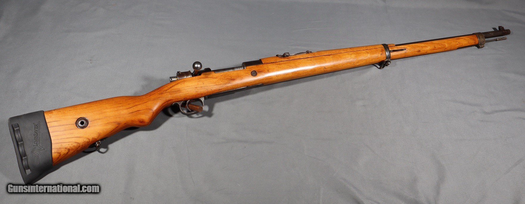 Description: For your consideration, we have an Ankara, M1938, Mauser in 8mm caliber. This Turkish Mauser is in very good condition and functions mechanically very well. You may purchase this used firearm by clicking "Order Online." For more information, click "Request Info" or you may contact the Wichita, Kansas Gun Library at (316) 854-0748. Your purchase will be shipped free of charge to the Bass Pro Shops/Cabelas store nearest to your location. Thank You for your interest and for shopping Bass Pro Shops/Cabelas. 8mm Curio/Relic: Yes Metal Condition: Good Condition Wood Condition: Good Condition Barrels: 29" round barrel Stock Dimensions: 50" Length OAD Butt Pad: LimeSaver recoil pad Weight: 9lb 15oz Sights: Front fixed blade sight and rear adjustable sight Item Location: Wichita, KS Price: $449.99 Contact Seller |