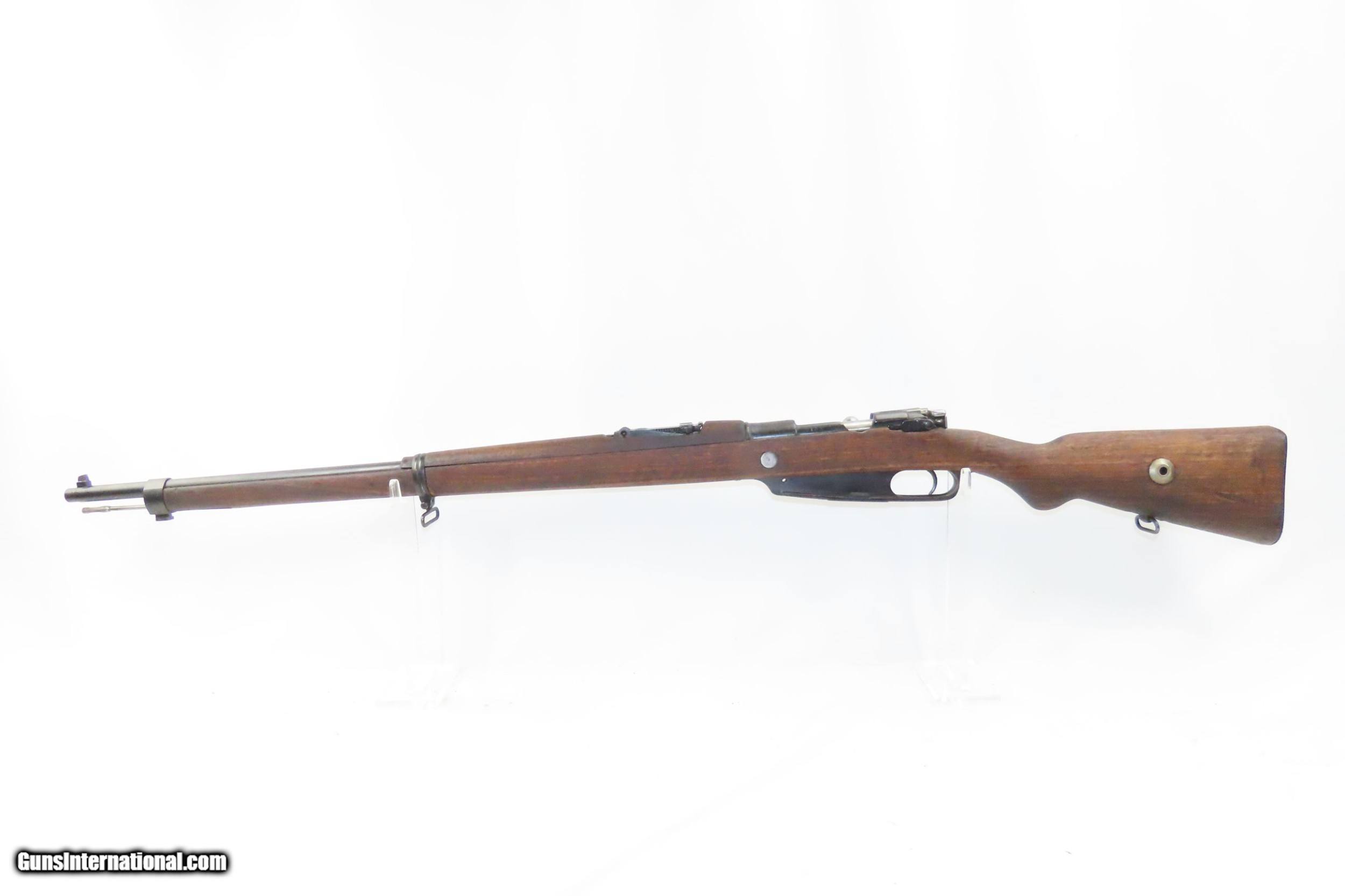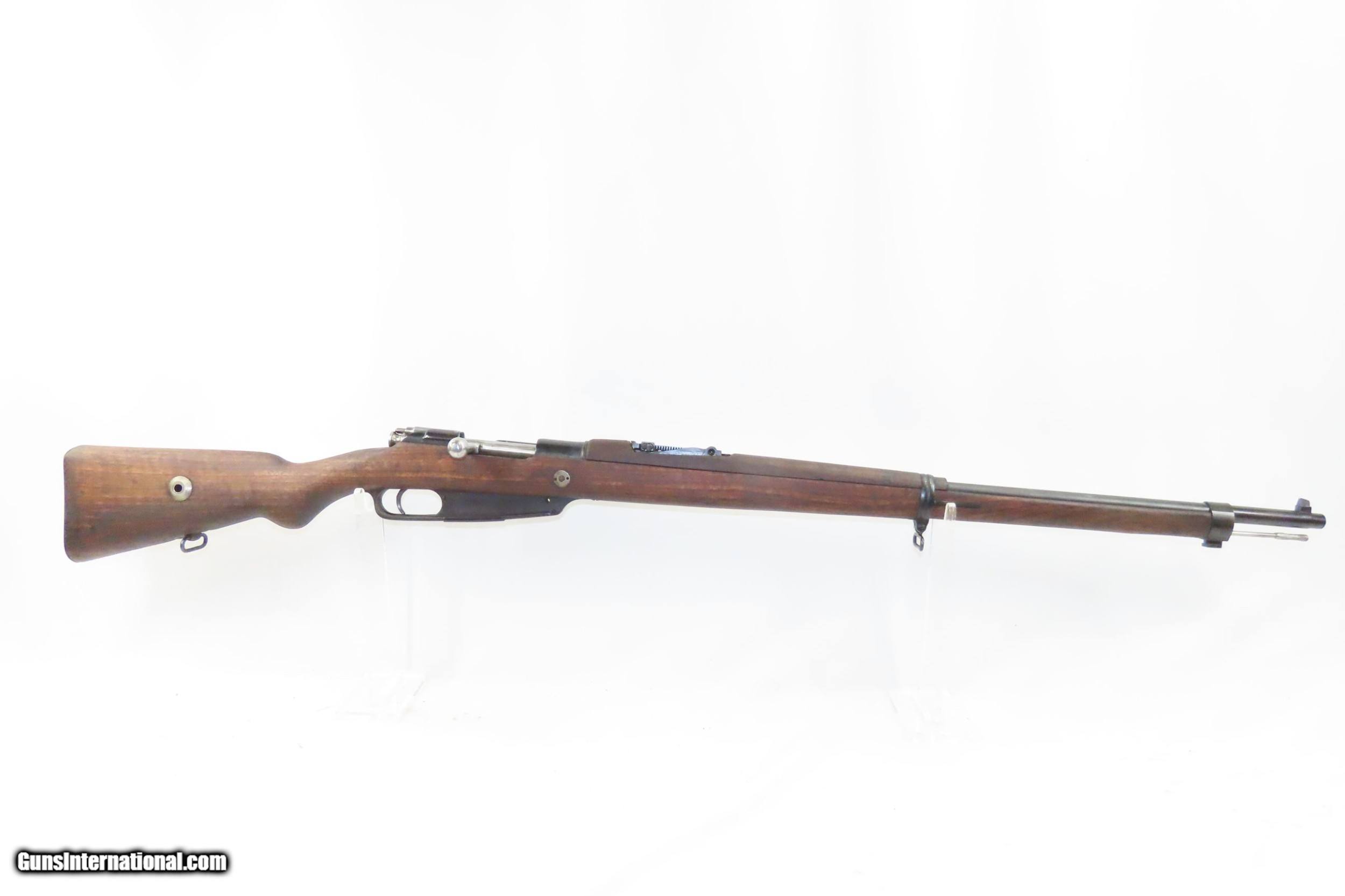 Description: Antique TURKISH ANKARA GEWEHR 88 Bolt Action 7.92mm Caliber MAUSER Rifle Turkish Rework of a Model 1888 COMMISSION RIFLE Here we present an antique Turkish Ankara Gewehr 88 Bolt Action Rifle, also referred to as the Model 88 Commission Rifle, made circa the 1890s in Berlin, Germany with a production run between 1888 and 1899 and reworked at Ankara circa 1935. In 1915, The Ottoman Empire joined the Great War with the Central Powers, and virtually from the start, the declining empire was critically short of many necessary weapons and supplies, rifles being one of them. The German Empire, seeing the desperate situation the Ottomans were in, wished to provide them with Rifles of some kind. However, all Gewehr 98’s were prioritized for use by troops of the German empire, meaning there weren’t that many rifles the Germans could ultimately give away. However, the Germans had a very large and relatively untouched inventory of Gewehr 88/05s, which are essentially ‘modernized’ Gewehr 88’s with the ability use charger clips and 7.92x57mm. In 1915, Germany sent tens of thousands of these rifles, one source citing it was most likely somewhere between 25,000 and 50,000 rifles. The Turks would utilize them throughout the war for various duties, before they were once again stored away and left to be unused after the fall of the empire in 1921. In the 1930’s, as War in Europe seemed imminent, the Young Turkish military was shocked to see how short they were of modern and effective rifles. Thus, an initiative began in the mid-1930s to both manufacture contracted Gewehr 98 and Vz.24’s, while also repurposing and further modernizing the old Gewehr 88/05’s. The Turks at the Ankara Arsenal made minor changes to the original design, most likely adding a notch on the front of the receiver for smoother stripper clip loading, as well as potentially heat treating the old rifles to strengthen them as much as possible. As mentioned above, the Gewehr 88 was a late 19th-century German bolt action rifle, adopted in 1888. The invention of smokeless powder in the late 19th century immediately rendered all of the large-bore black powder rifles then in use obsolete. To keep pace with the French, who had adopted smokeless powder "small bore" ammunition for their Lebel Model 1886 rifle, the Germans adopted the Gewehr 88 using its own new M/88 cartridge, which was also designed by the German Rifle Commission. The rifle was one of many weapons in the arms race between the Germanic states and France, and with Europe in general. There were also two carbine versions, the Karabiner 88 for mounted troops and the Gewehr 91 for artillery. Later models provided for loading with stripper clips and went on to serve in World War I to a limited degree. Unlike many German service rifles before and after, it was not developed by Mauser, but rather the arms commission, and Mauser was one of the few major arms manufacturers in Germany that did not produce Gewehr 88s. The overall condition is very good. Robust action. Semi-bright bore remains in good shape. This example sports a sturdy stock with less than expected wear. Legible markings. The numbers match, although the trigger guard is ill numbered. A layer of cosmoline was added at some point in time to the bolt and rear sight for preservation. “1935” dated barrel. Own the original! This is a legitimate antique and not a reproduction. Barrel is 29 inches. Caliber: 7.92mm Mauser Overall condition as seen in photos. Very Fast. Very Safe. FREE SHIPPING WORLDWIDE. Delivered directly to your door by express mail! Guaranteed AUTHENTIC & Includes CERTIFICATE OF AUTHENTICITY. ancestryguns $1150 #217545 SOLD Antique: Yes |