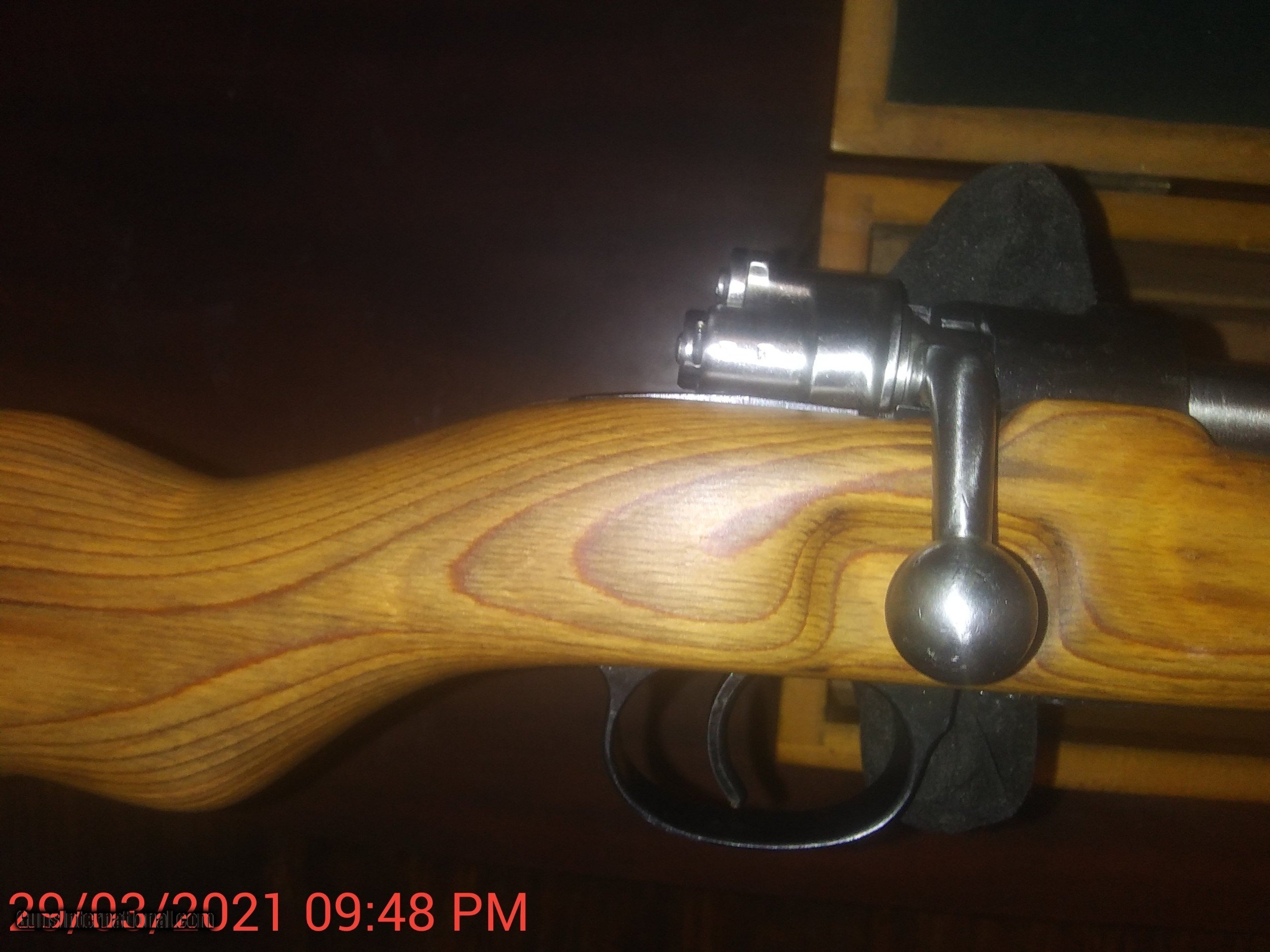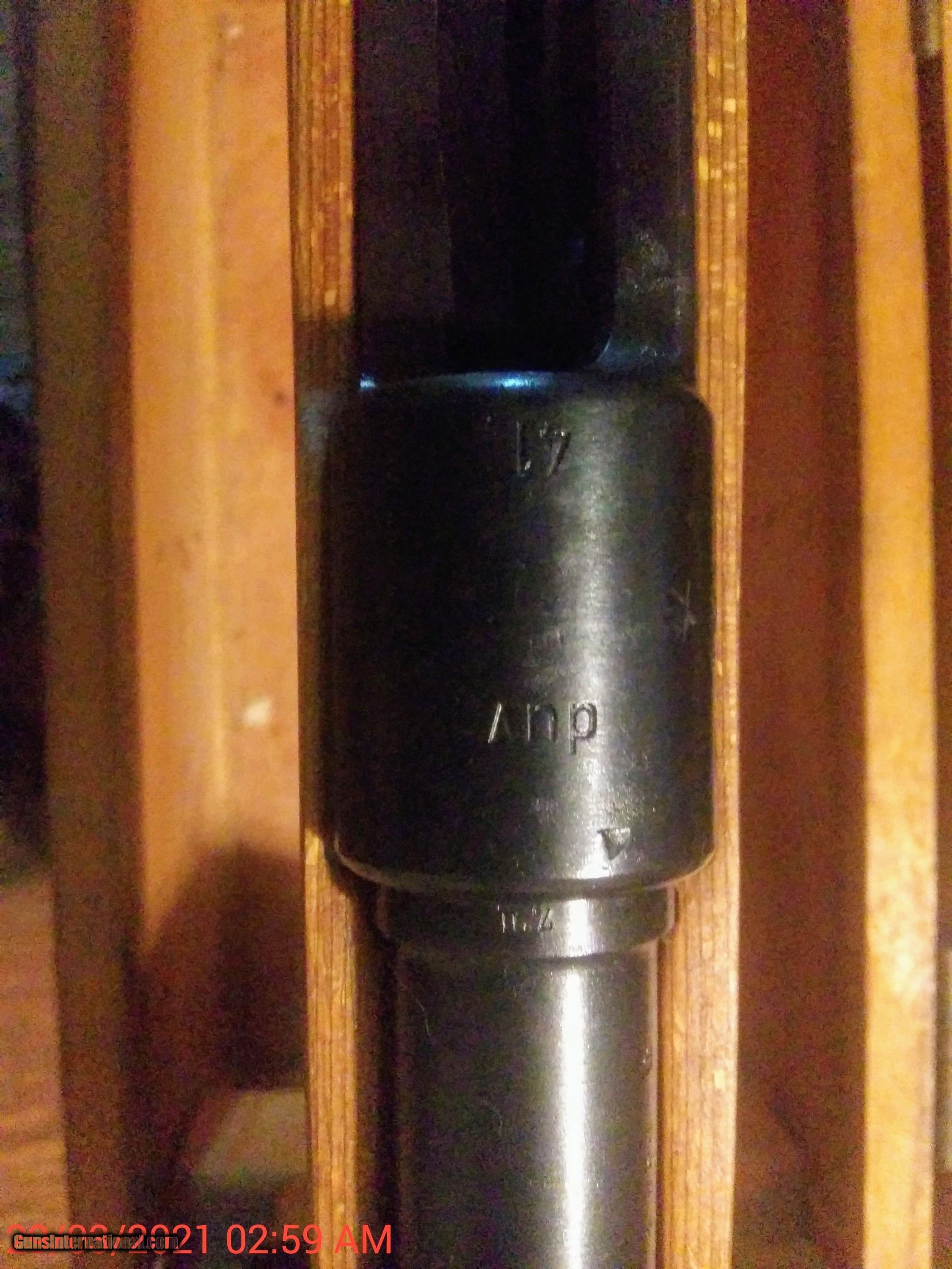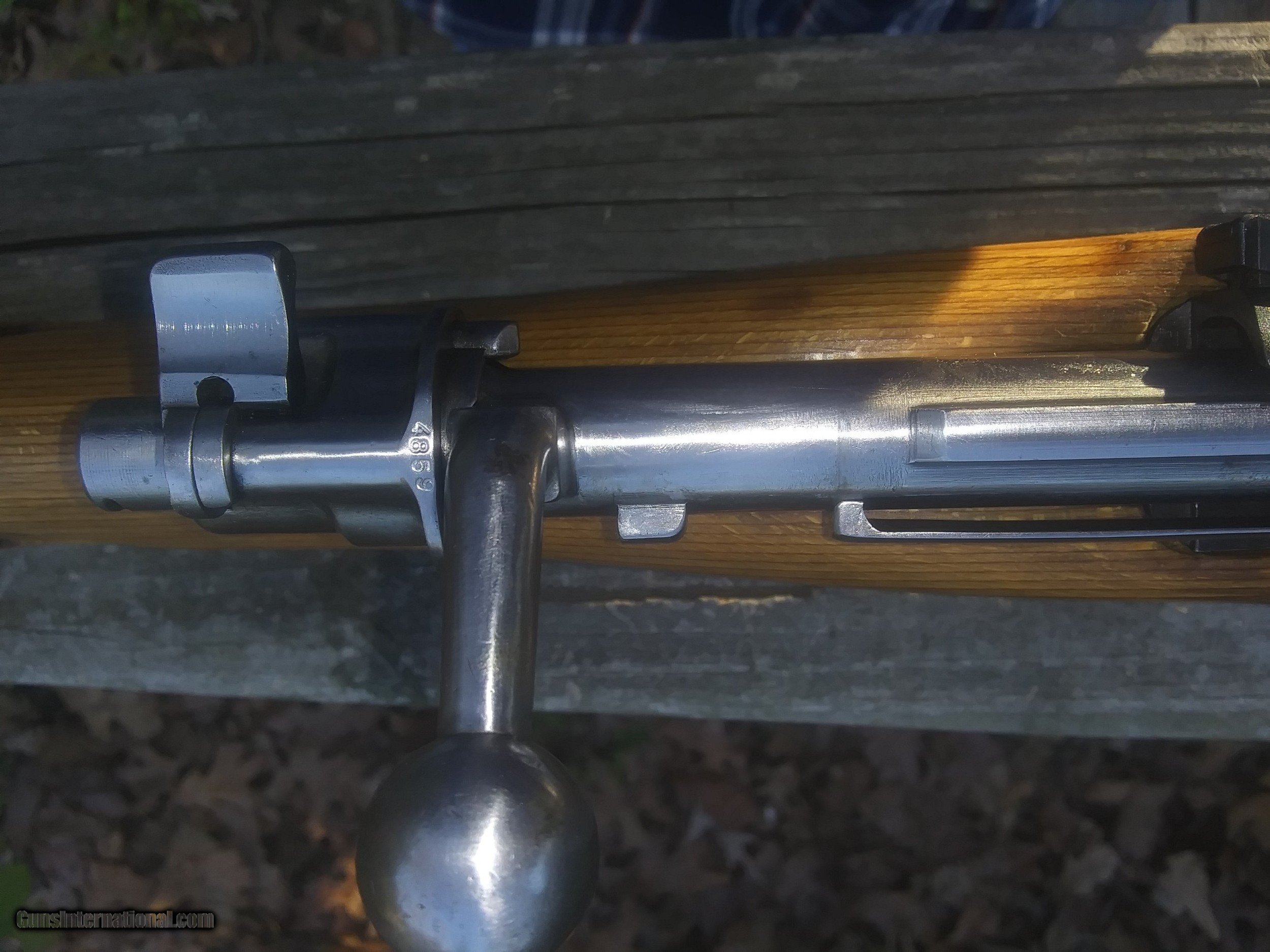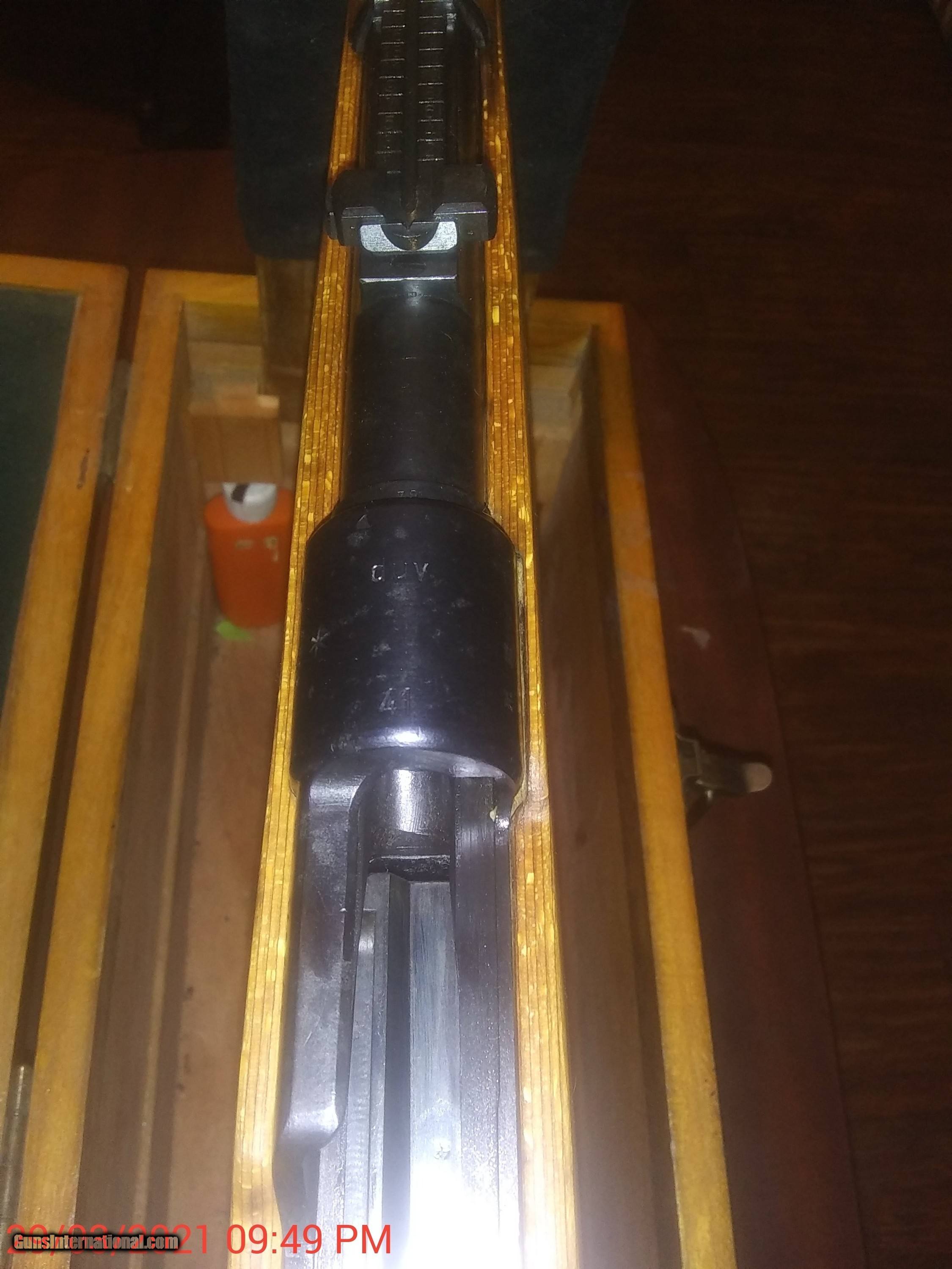 Description: SALE PENDING Very nice rarer 41 duv coded K98k . A quick Google search will confirm it's seldom up for sale and far less common than comparable codes such as bnz. Nice sharp bore. All main components match. Barrel matches receiver and bolt. Stock has serial number on the inside and out side of stock. Bolt is stamped with serial number in two places. Floor plate and magazine cover all so match. The rifle is stamped 4859 in seven places in all. All so has many waffen stamps of 214 which are correct for rifle. The rifle barrel bands do not match. This is a excellent example in fine condition of a less common Mauser that's shoots as God as it looks. Michaels Mauser select collector grade. SOLD Curio/Relic: Yes Rifle Caliber: 7.92x57mm Mauser Manufacturer: Berlin-Lubecker Maschinenfabrik Model: Mauser K98K Serial Number: 4859 Condition: Excellent Metal Condition: Excellent Wood Condition: Excellent Bore Condition: Very good to excellent Manufacture Date: 1941 |