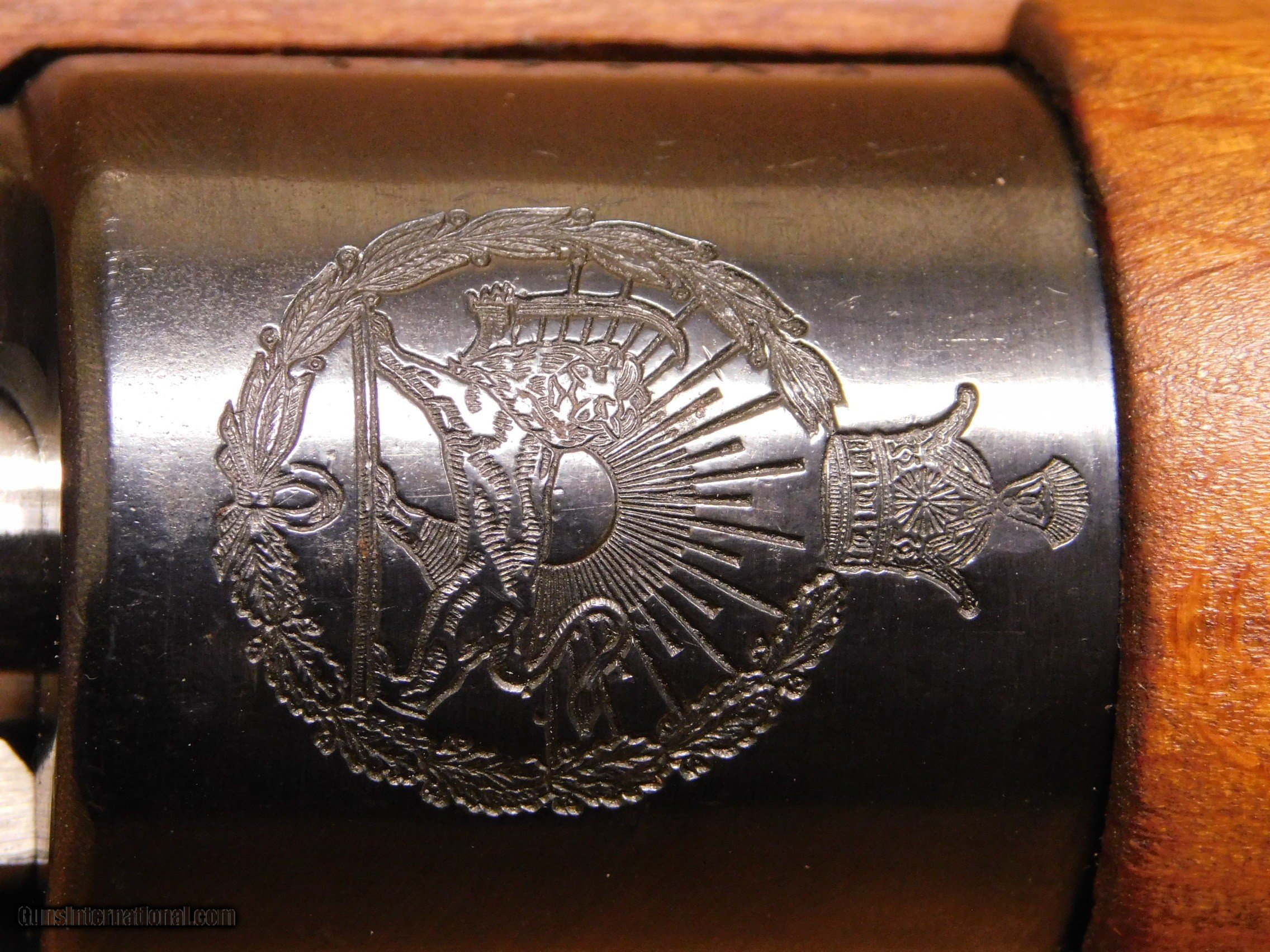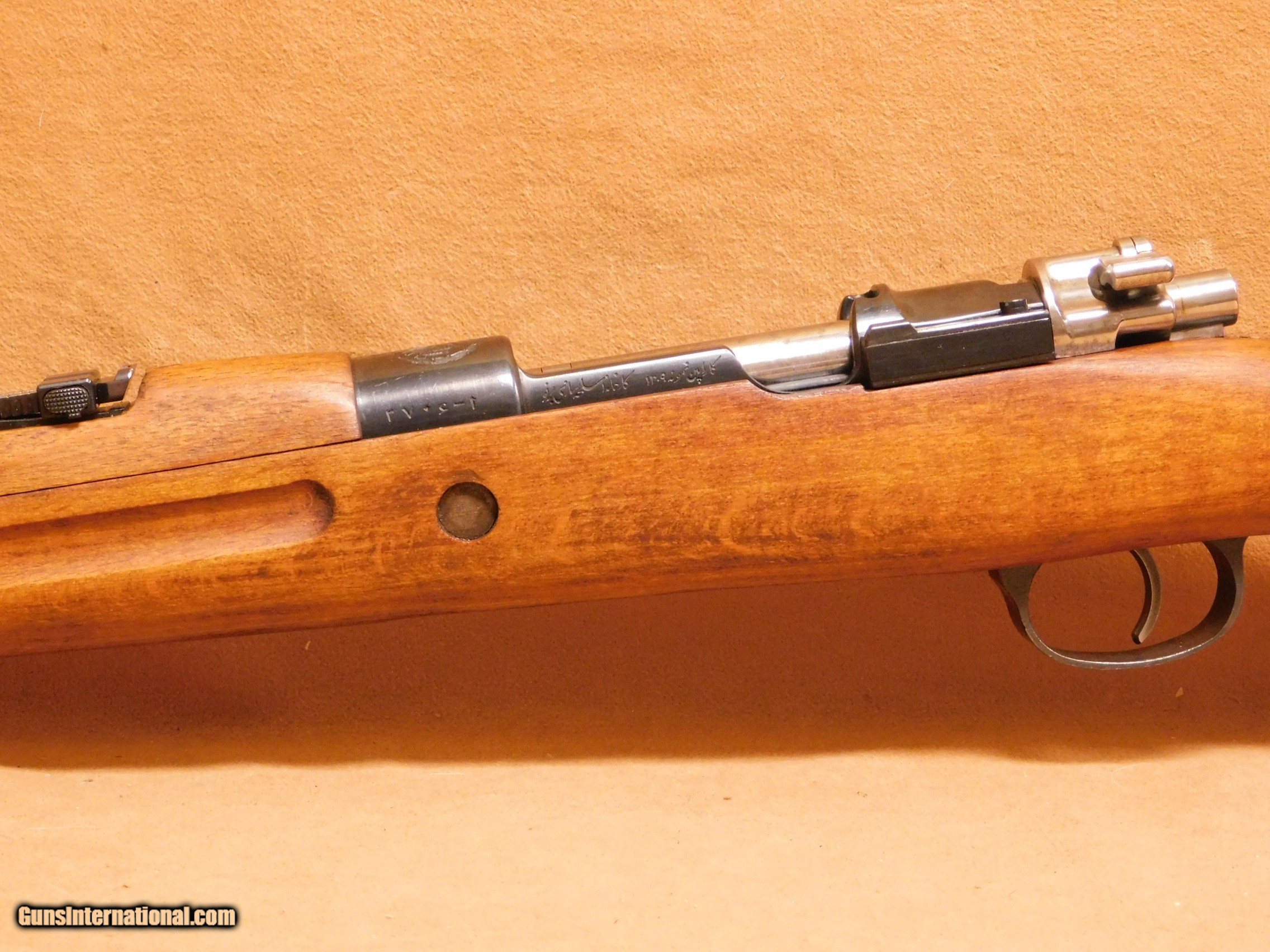 Description: This is an Iranian Mauser Carbine, manufactured in Iran on machinery set up by the Czechoslovakians. It has a partially-hooded blade front and an elevation-adjustable tangent rear sight, graduated from "1" to "20". It also has a stamped front and rear barrel band with a fixed sling bar. The Iranian national crest is present on the receiver ring and all visible receiver markings, including the serial number, are in Farsi. The rifle also has the correct Iranian hardwood pistol grip stock with grasping grooves, sling cut out, and flat blue steel buttplate. This is an all-matching numbers gun and it appears to be unfired and unissued. It would be very difficult to improve on the condition of the rifle. High grade examples of this carbine are nearly non-existent. All items are also available for sale in our brick & mortar store and are subject to prior sale. Think long, think wrong. Payment On firearms, we typically only accept credit cards or money orders/cashier's checks.