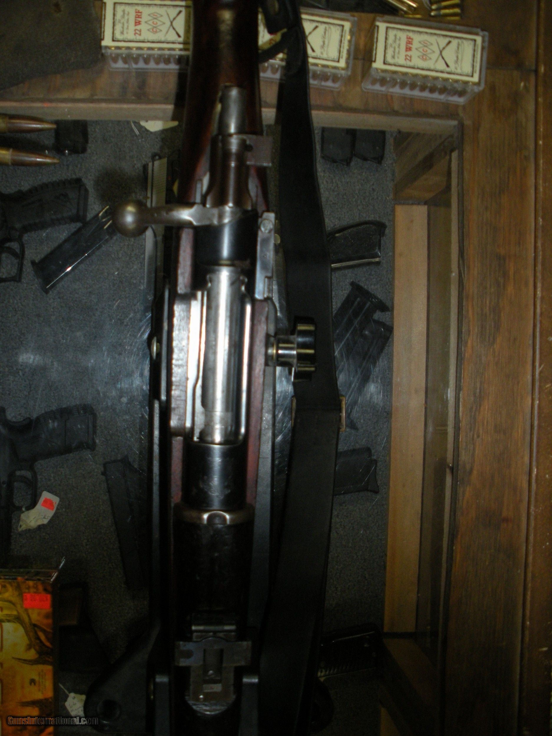 Description: Chilean Mauser 7x57mm with a 21.5" bbl. & sling. Mauser Chileno Modelo 1895 Manufactura Loewe Berlin stamped on Action with Chilean Crest stamped on top. Numbers do not match. The bore and chamber on this Mauser are good but be sure to have a competent gunsmith check before firing. Credit Cards +3% Visa, Discover +4% American Express, Mastercard. Call 512-868-2643 for further information abouthis firearm. SOLD Curio/Relic: Yes Manufacturer: Loewe Berlin Model: 1895 Condition: good |