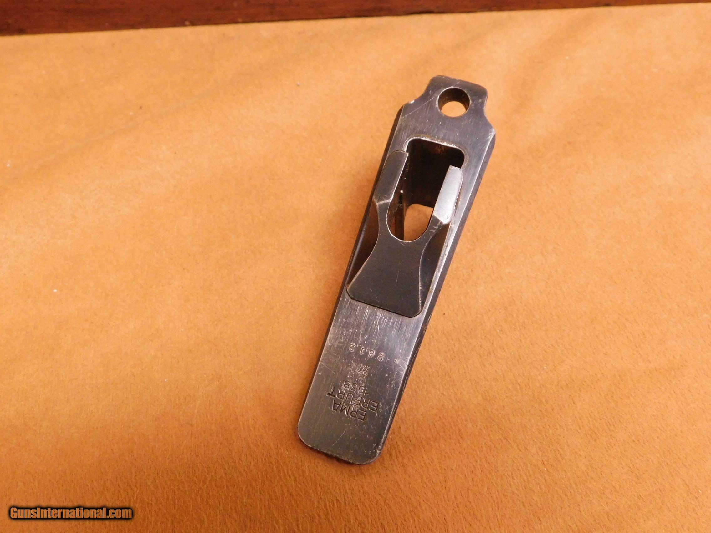 Description: This is a rare .22 conversion kit for a K98 made by Erma of Munich. It comes in a fitted wooden case that is numbered to the kit, which is marked "WaA 51". The receiver insert is marked "EL24" for model designation. It has some type of unit markings ("2/R.R.11.5"). The kit is numbered 644 and the bolt is numbered 7523 and "WaA 280". Two magazines are included. On is marked Erma, Erfurt 1936 and is bright blued. The second is marked Erma, Erfurt 1938 with a wartime finish. The floor plate magazine adapter is marked Erma, Erfurt 1932 and serial numbered 2612. This kit also features a very rare, Erma-marked tool with a brilliant, nitre blue finish. This is a very excellent collectible for the discriminating K98 collector. All items are also available for sale in our brick & mortar store and are subject to prior sale. Think long, think wrong. We are always buying unique and collectible single firearms and collections. Please give us a call at 859-278-8370 to discuss what you have available. We also offer free appraisals and guarantee TOP DOLLAR PAID for your unique and collectible firearms. Payment On firearms, we typically only accept credit cards or money orders/cashier's checks.