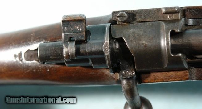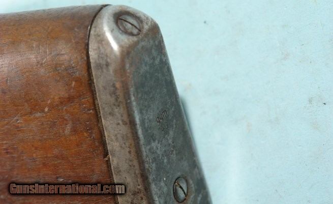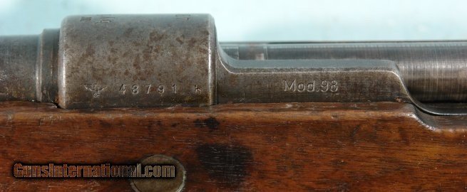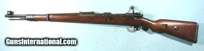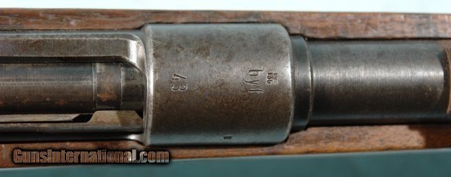 Description: EXCELLENT WW2 GERMAN MAUSER K98K BYF/43 8MM CARBINE. All original and matching except the bolt which is a near serial number. Receiver marked “BYF/43” Original stock and hand guard and extra sharp “EAGLE/SWAZTIKA” Ordnance and WaA 135 Waffenampt stamps on the butt. Excellent Nazi Army Ordnance “EAGLE/SWAZTIKA” proofs on barrel and receiver as well as a crisp “EAGLE/135” Waffenampt on the receiver. Excellent with all the original finish on the wood and original blue mixed with light handling patina on the metal. Perfect working order and excellent bore. Real “bring back” with no import marks. SOLD Curio/Relic: Yes Rifle Caliber: 7.92x57mm Mauser |