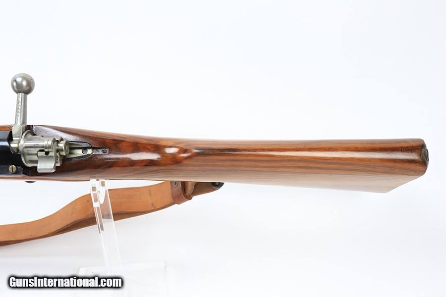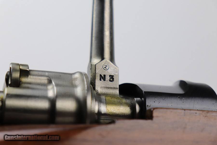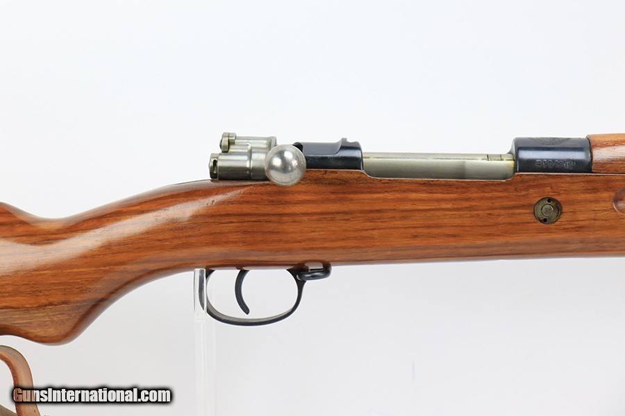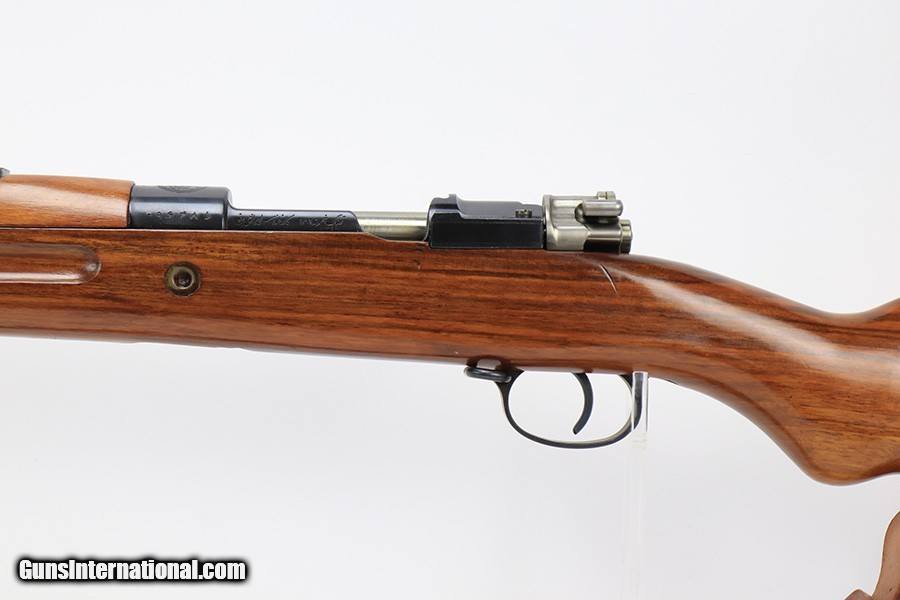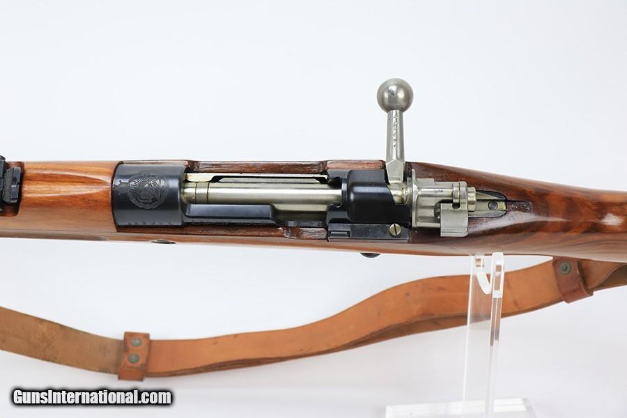 Description: This a stunning example of a Persian Model 98/29 Mauser. The rifle looks fresh from the arsenal. The bluing is pristine with hardly any handling wear to mention. The rifle has matching serial numbers on the receiver, bolt, stock, and bayonet. The receiver has a clean stamp of the Persian Lion Crest. The stock has little to no handling marks. The bore is mirror bright, with no wear. The rifle also comes with the original factory test target from Czechoslovakia when the rifle was made. SOLD Curio/Relic: Yes Rifle Caliber: 7.92x57mm Mauser |