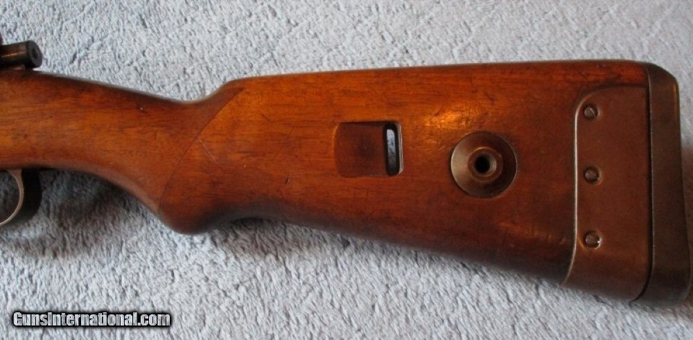 Description: 8mm Mauser of course. Serial #5472 with a small b on receiver and stock, #8745 on bolt. Feel free to do your own research, here is what I have found in mine. This is a dot 1941 stamped rifle, further adding to the rarity as not many came with the 3-piece dovetail stock. A Forgotten Weapons video explains that the stocks didn’t take stamps very well, but with the aid of a high-res camera, most of the serial number can be seen on mine. The 5 is mostly gone due to an impact mark, there is quite a bit of the 4 left, most the 7 can be seen, and the 2 is clearly discernable. And the lower case b is also clear to see. This easily supports that this is the original stock to the gun. There are several other stamps in the stock that are the Eagle/Swastika along with “WaA63” stamped below them. "Gebirgsjager" German Mountain Troops rifle. The stocks of these rifles took a beating as they were used for bracing while getting around in the mountains, and also in being subjected to sudden temperature extremes of going back and forth between heated bunkhouses and the high altitude frigid air. All these rigors subjected the stocks to cracking. So the 3-piece dovetail came along as a remedy. I’ve found some info that the spliced stock would absorb impacts and temperature variations better. I found other info stating the 3 piece design helped stretch out the walnut supply. Whatever the case the work involved in making this kind of stock was exacting and thus difficult, aka added cost, so there aren’t as many around. This one seems very well done, as the photos will show, but if the effort was to prevent cracking it wasn’t 100% effective on this one. There is a short crack down by the floorplate. There are some very tight (surface crack?) hairlines below the barrel shank on the left side that follow natural marks in the wood. See photos. There is a small hairline near the serial number stamping in the stock where an impact mark took out most the 5 in the serial number. There are typical military storage and handling marks, but certainly not excessive. There is a coat of varnish. The metal seems to be relatively free of surface pitting and has some decent remaining bluing, don't know if bluing is original or not. The buttplate of course has the usual surface pitting. There is a distinct line in the bluing right below the front sight, where the shade of the bluing slightly changes from that point to the end of the barrel. My guess is that is the area a bayonet would attach. As for the bore, the "rifling" still has great raised definition to it, and although not mirror bright, still has some shininess left in borelight, and there is no frosting. I don’t see any import marks. Everything functions as it should, it is a sweet shooting rifle. The Pre98 webbsite sold one for 5750 dollars. It was matching numbers and mine isn’t due to the bolt being a different number, but mine does has the correct bolt with the hollowed handle knob for this model. Two different sources in my research stated the bolts are often mismatched on these rifles as the bolts would be thrown into one pile while the rifle would go into another pile as the Gebirgsjager surrendered to the Allies. I believe the sight hood and cleaning rod are correct, but I defer to the experts. Legacy Collectibles has sold several of them, varying in prices, but none of them I found had this 3 piece dovetail stock. Given these values, I think mine is very reasonably priced, and is probably the only one with this stock that is currently for sale anywhere on the planet at this time. Due to the scarcity, the collectiblily, and the upper end values of these, I can provide 76 photos and a short video clip of it in operation, to a SERIOUS buyer/collector. I will accommodate personal inspections if you want to send a forum member over to look it over for you. Terms are as per this Description section and our correspondence. Cash only if a Local sale. For local sale I will only sell to anyone who is verified to purchase a firearm so I would need to see either a FFL, or Neb. Firearm Purchase Certificate, and ID with either, just like it's done at the auuctions/shows. Concealed Carry Permit works as well. If you are from out of state but can make the drive, there is an FFL in Lincoln that will do the transfer for 25 bucks. I will ship to an FFL. If you do not have your own FFL you must contact your FFL provider and ensure that they will accept firearms that come from a private individual like me that does not have an FFL. I can provide them a copy of my ID. I will also need contact info for your receiving FFL so that I can arrange shipping with them. If I'm shipping the firearm, payment for the firearm and shipping combined is by Bank Cashier's Check ONLY. Shipping is to only the lower 48 and is a flat fee of 65 dollars. Rifle Caliber: 7.92x57mm Mauser Stock: 3 piece dovetail Item Location: Lincoln Nebraska Price: $3,900.00 Shipping: $65.00 Contact Seller |