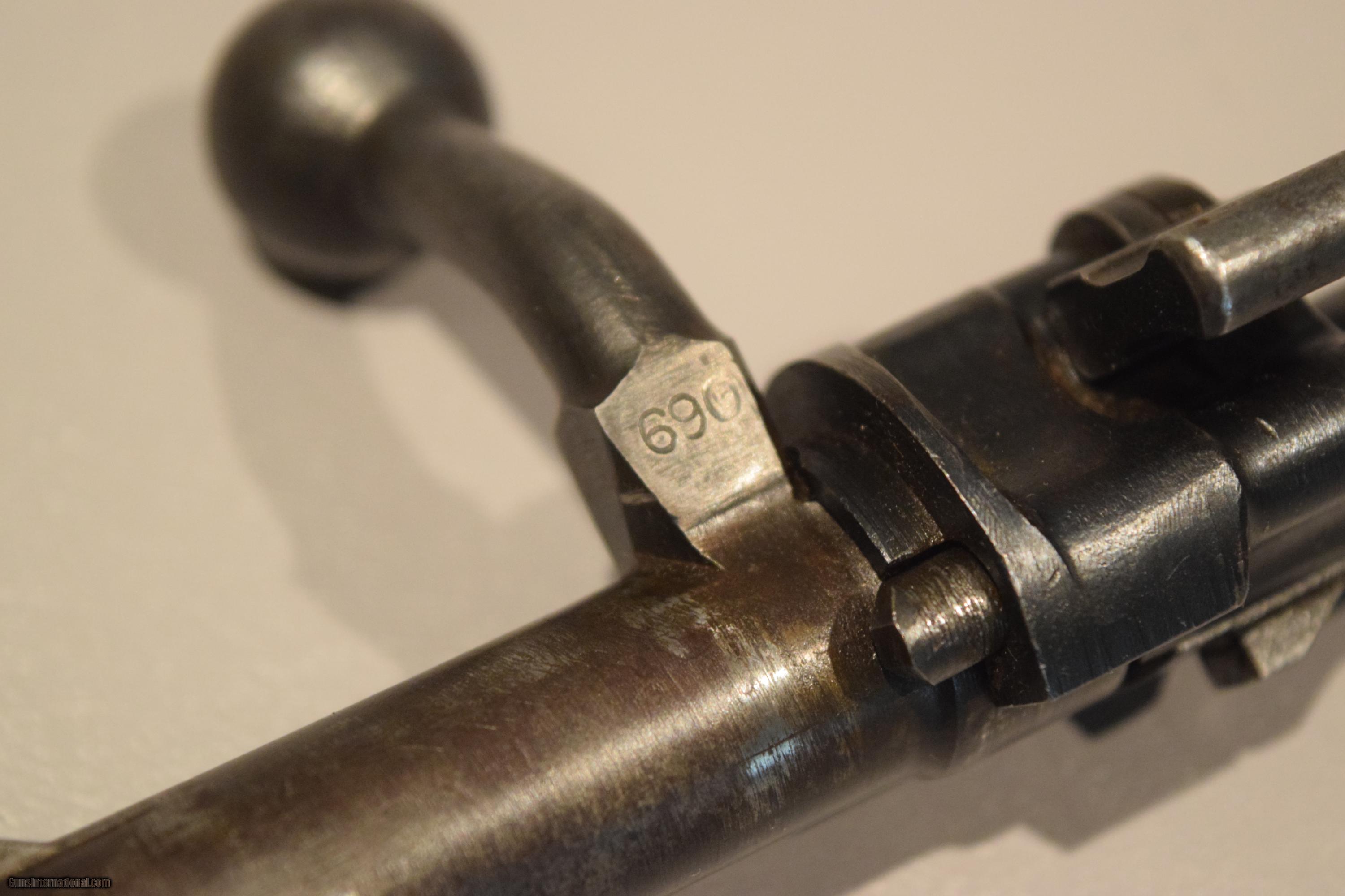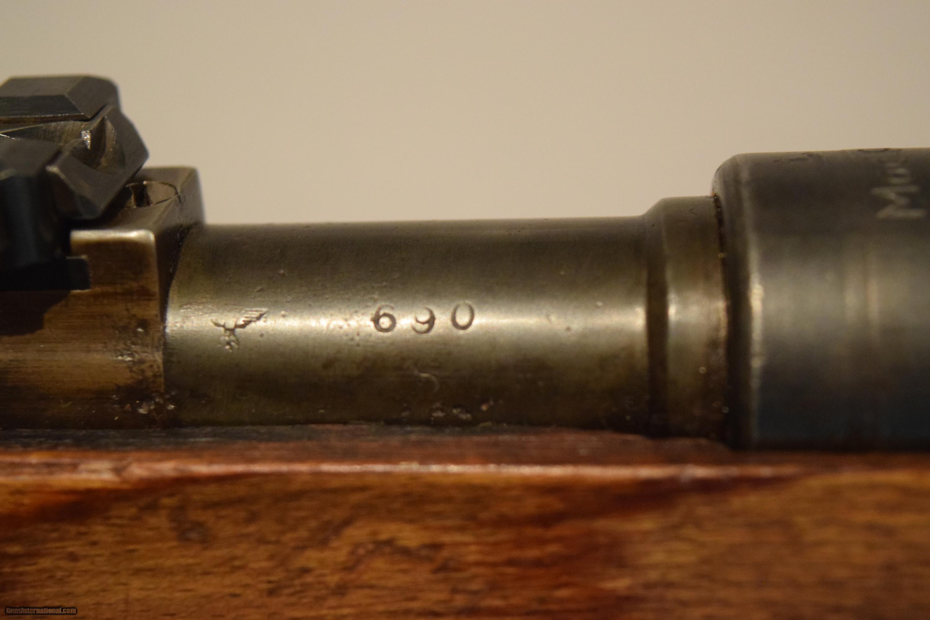 Description: GERMAN K-98 KREIGSMODELL MAUSER 8mm. BNZ 1945 DATED LOW SERIAL #690 ALL NUMBERS MATCHING, WAFFENAMP PROOF MARKED STOCK & PARTS, UNISSUED CONDITION AS PICTURED. CALL (410) 829-8715 FOR ADDITIONAL DETAILS. SOLD Curio/Relic: Yes |