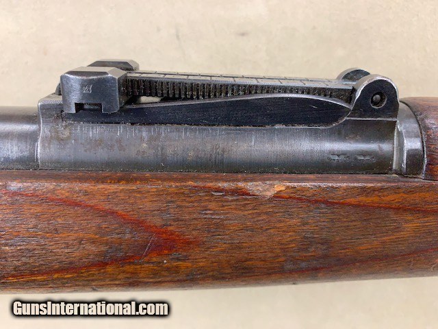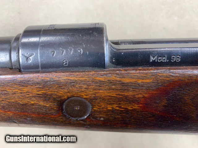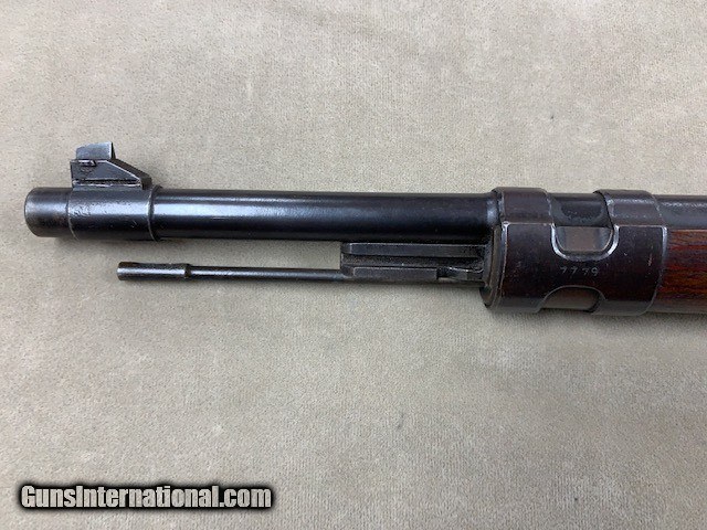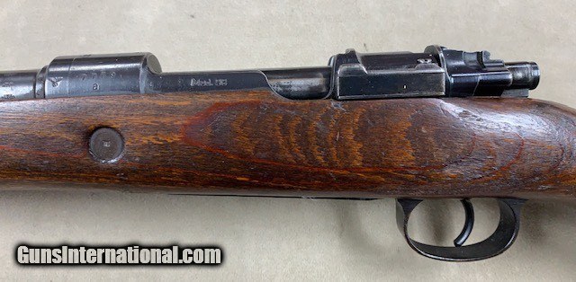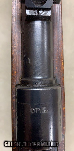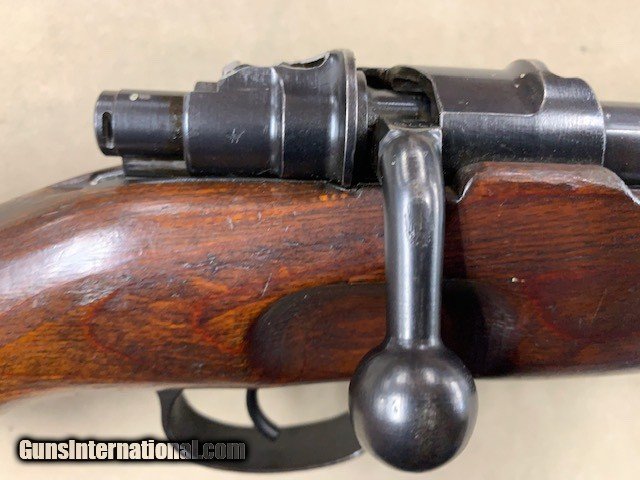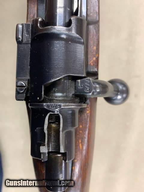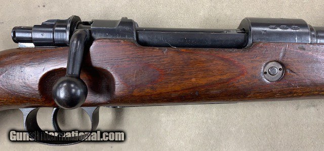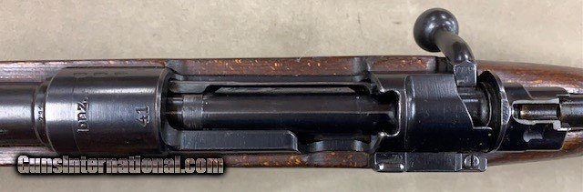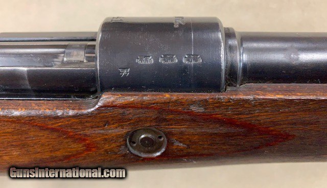 Description: An excellent condition original K98 WWII Nazi issue 8x57 caliber rifle - as nice as we have ever seen. A WWII bring back and of course not import marked. Nice bore and totally original (all parts) including bolt, receiver, barrel, stock, floorplate, etc. Top of bolt sleeve broken off (see photos) and of course safety therefore missing. Nonetheless an outstanding K98 and bolt parts are available from many sources. Just a super condition WWII Nazi K98 that would be worth twice what we are asking if the safety wasn't missing. SOLD Curio/Relic: Yes Rifle Caliber: 8x57mm JS |