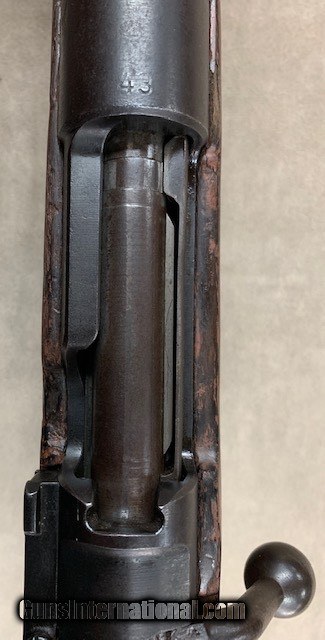 Description: This an original K98 WWII rifle as imported by Century years ago and so marked on the barrel. Receiver with BCD 43 marking & non matching numbers to bolt. Rifle has some parts missing - handguard, front bands and band spring, rear sight parts, etc. (see photos). Bore is about good with some strong rifling. Nazi marked as shown in the photos. If you have the parts this will make up into a nice representative WWII K98 Nazi rifle. Priced accordingly. SOLD Curio/Relic: Yes |