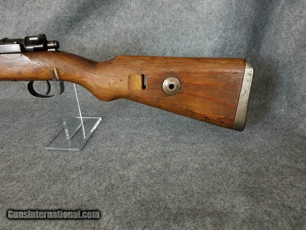 Description: A really nice mid-war German K98 rifle manufactured by Mauser Borsigwalde (Wartime manufacturer code AR). Rifle is a bolt mis-match meaning rifle itself is all matching except the bolt which is matching to itself. Rifle is from the a block so manufactured early in the year and includes all the mid-war simplifications manufacturers were implementing to speed up production. Stock shows light use but no issues or cracks, interesting it still has the wax german troops used as sealer around the barrel\receiver and stock to waterproof weapons. Rifle includes a correct K98 wartime sight hood and cleaning rod. Bolt in rifle is from a Gustloff (BCD) rifle of the same timeframe so a nice match to the rifle. This would make an excellent first K98 for a new collector or a great place holder until a matching rifle comes along, AR rifles are not the easiest to find. Rifle condition overall is very high and looks even better in hand. Rifle is sold as a collectible, if you wish to shoot it the rifle should be checked by a qualified gunsmith. Rifle includes 3 day non-firing inspection Shipping is $50 for CONUS, shipping to Alaska or Hawaii is at cost. I will do sales to Canada but it will require buyer to coordinate with an exporter to handle transfer. SOLD Curio/Relic: Yes |
