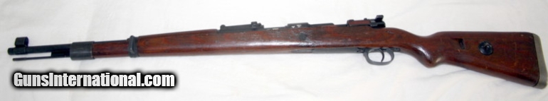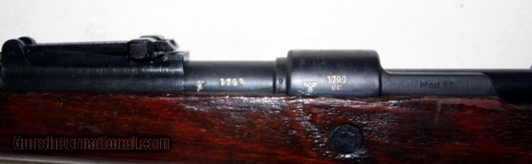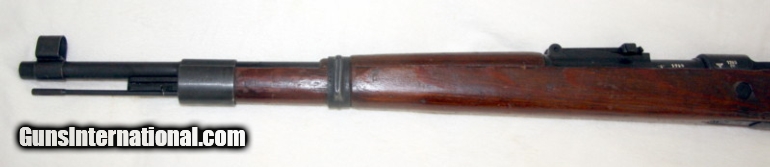 Description: GERMAN Model 98k Mauser bolt-action rifle # 1790ee (8x57) mfg. by Mauser (factory code byf) in 1941. Excellent condition, a Soviet rework with most remaining bluing and intact Nazi markings. Small parts electropenciled but do not match receiver. Bore is excellent and mirror-bright. Laminated walnut stock has a few of the expected dings and flaking shellac, strong eagle / H (Army) cartouche on right side. Solid front barrel-band, rear band is of the stamped and welded type. Completely functional, includes cleaning rod, locking screws and front sight hood. I will not ship to CA,CT,DC,MA,NJ,NY C&R eligible. There is a 3% charge on Credit card orders SOLD Curio/Relic: Yes |