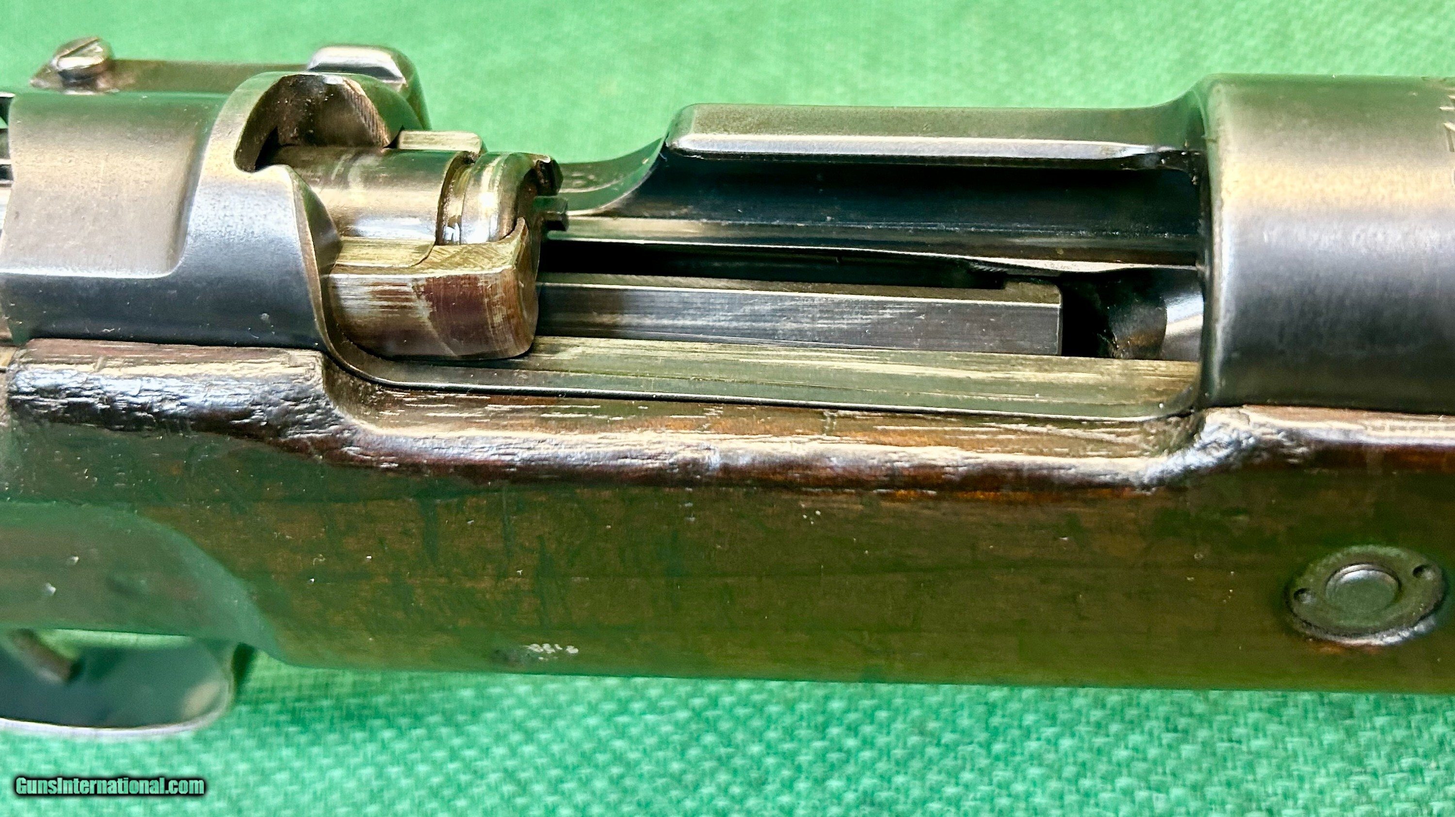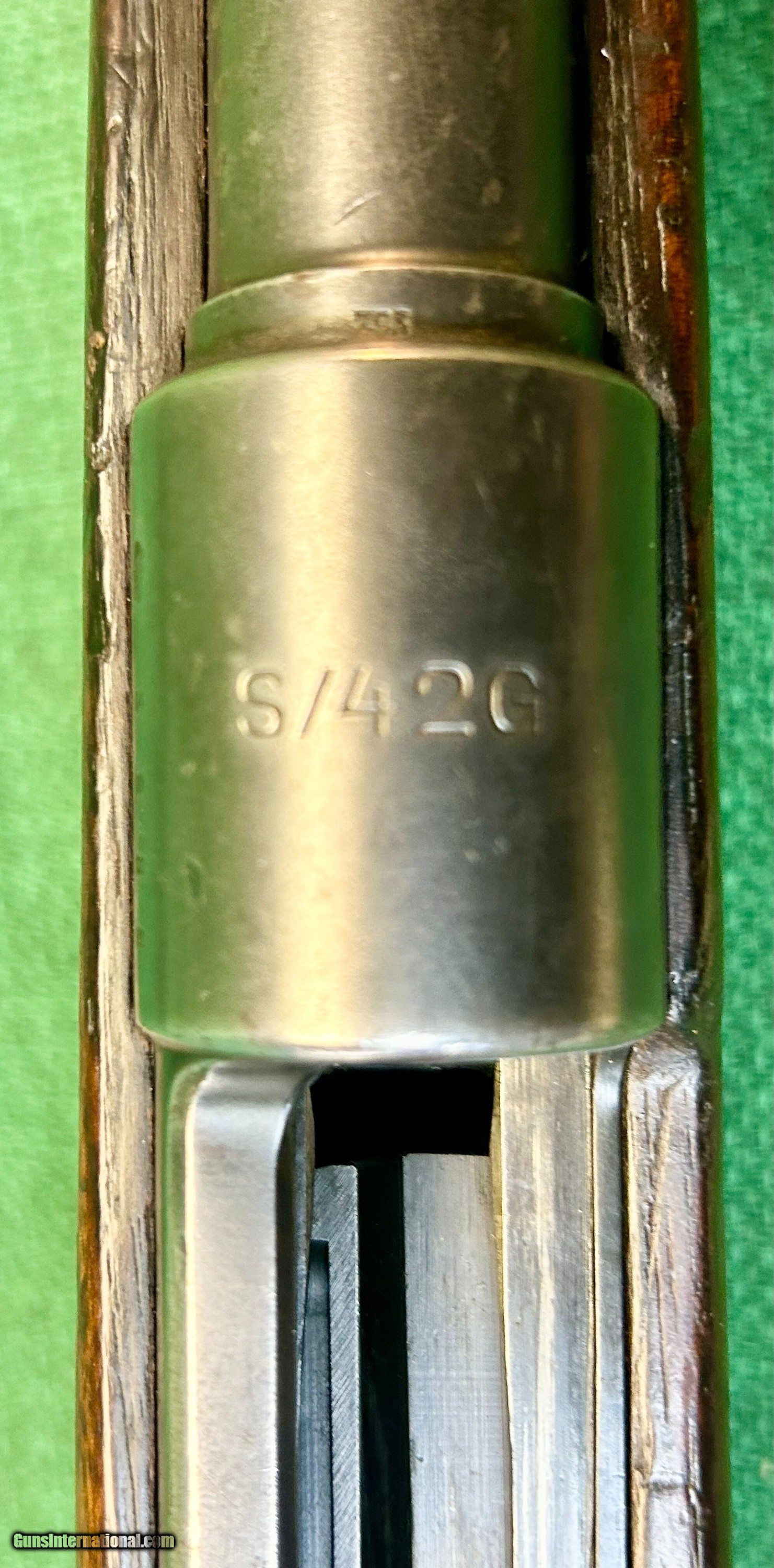 Description: The Oberndorf S/42G is a factory code (S/42G) used by Mauser at Oberndorf Mauserwerke AG during the pivotal year 1935 marking the early production of the legendary K98k bolt-action rifle. This rifle is matching numbers less the rear band and bolt and stop, bolt matches itself. Headspace is fine. It is chambered in original 8mm Mauser (7.92x57mm), featuring early characteristics like Weimar eagle proofs, and ramped front sights. As with any nearly 100-year-old military piece the bore could always use a little more cleaning but it does not show any signs of pitting or rust, and certainly not signs of neglect from corrosive ammo. All German markings are intact and none are peened or ground out. Wood is non laminate Walnut as it should be. Handguard and stock match in species and finish. Butt plate serial number matches. This is highly collectible to collectors as a transitional piece between the G98 and full K98k production. We find that this rifle's numbers match everywhere except the rear band. The bolt's numbers match itself. Please see pictures for details. We accept USPS Money Order, cashier’s check, or credit card for immediate shipping. Please note credit card sales are subject to an additional 3% fee. US shipping only. Shipping costs are actual postage, with adult signature required, to your FFL 01 or 03. We will pay the insurance for the amount sold. All items are for sale locally, so make contact as soon as you make your decision. Inquiries will be handled in chronological order. All postings will remain active until funds are received. We appreciate funds to arrive within 10 days of verbal agreement. After such time we will entertain other inquiries in the order they were received. Curio/Relic: Yes Rifle Caliber: 7.92x57mm Mauser Manufacturer: Mauser Model: S/42G Price: $1,199.00 Contact Seller |