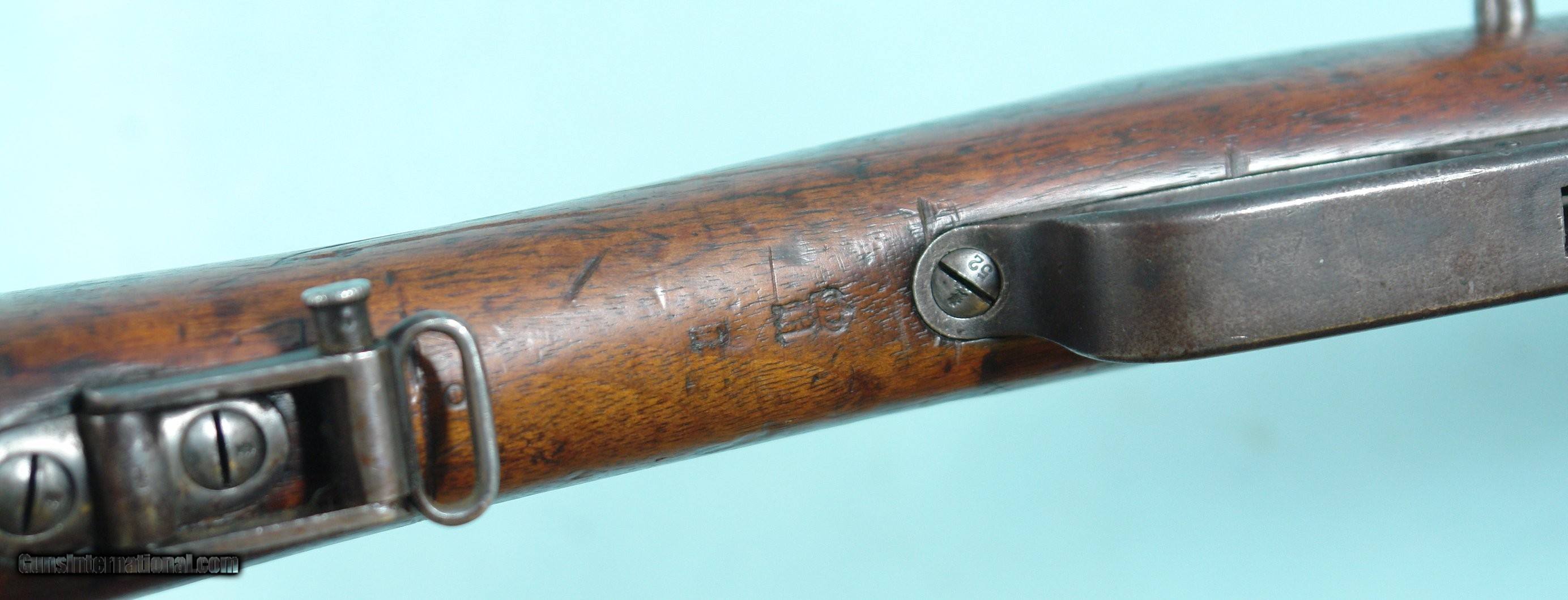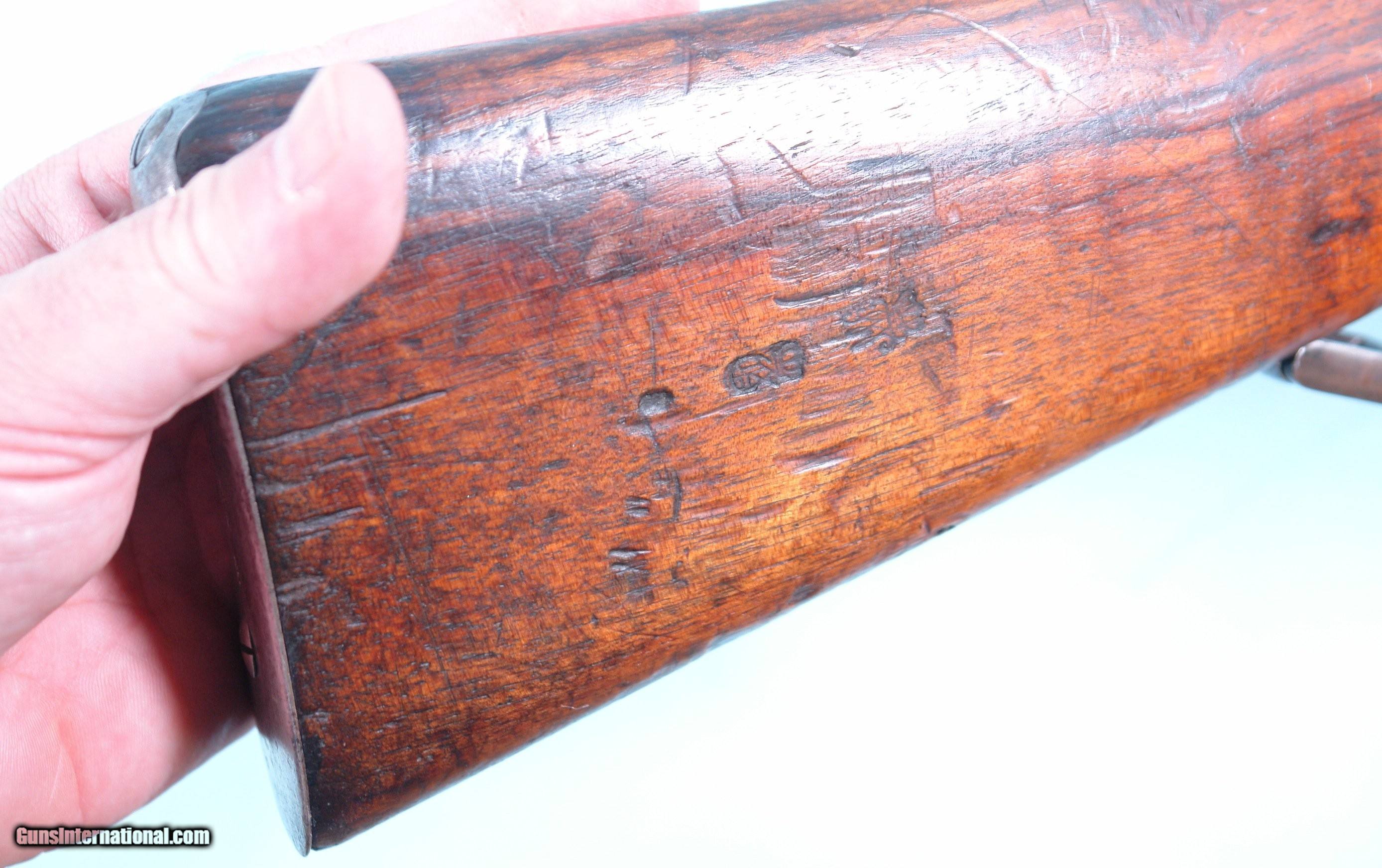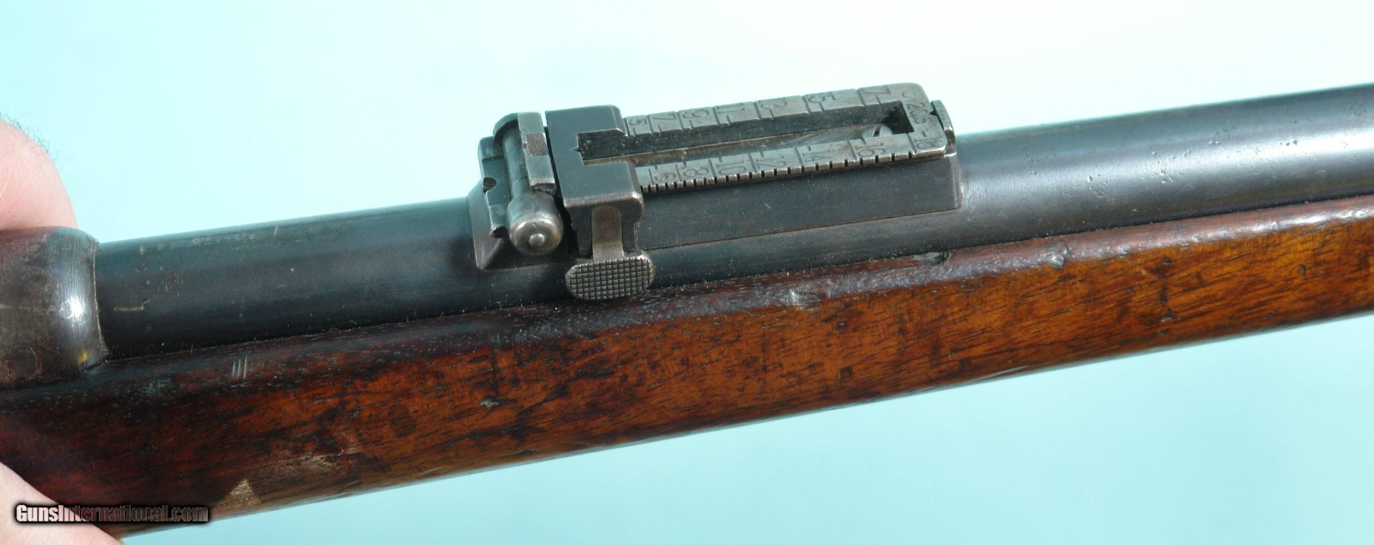 Description: 32271-IMPERIAL GERMAN LOEWE / BERLIN MAUSER GEW 88 G88 8MM INFANTRY COMMISSION RIFLE DATED 1890. 29 ½” barrel. All original and matching. Receiver ring stamped ‘LOEWE BERLIN/1890”. Imperial German proofs on all major parts. Very good to fine overall with approximately 90% original blue. Original wood finish. Shows use overall but superior to most we have seen. Perfect working order and excellent plus bright bore with very sharp rifling. $1100. SOLD Antique: Yes Rifle Caliber: 7.92x57mm Mauser |