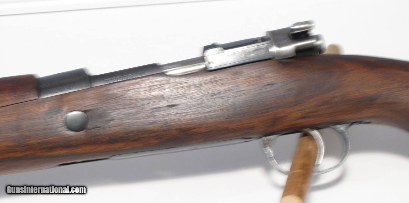 Description: M24 / 47 Yugo Mauser Short Rifle in 8mm Mauser caliber, 23 inch barrel. S/N M24005xxx. 43 inches overall length. Receiver, Stock, and floor plate cove numbers matching. Bolt is a different number. Import marked. Condition is very good, no cracks in the stocks, functions and fires without issues. Has the usual nicks, dings and scratches here & there with one repaired gouge on the left side by the recoil bolt. Dark line on butt stock is woodgrain, not a crack. Bore is darker, but the rifling is deep and sharp. Built at the Kragujevac Armory in Yugoslavia using the FN Mauser 98 machinery and drawings. Please see pictures. Email me with any questions. Shipping will be $25.00, ( within the continental USA) well packed and shipped to your FFL. C&R accepted on this firearm. Postal Money orders only. SOLD Curio/Relic: Yes Manufacturer: Preduzece 44 Model: Copy of 98 model 24/47 Serial Number: M24005xxx Caliber Info: 8mm Mauser Condition: Very Good Metal Condition: Very Good Wood Condition: Average Bore Condition: Dark w/very good rifling Barrels: 23 Inch Action: Bolt Triggers: Military Finish: Blued / Walnut Extras: none Case: none Item Location: S.W. Pennsylvania |