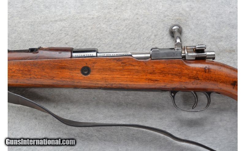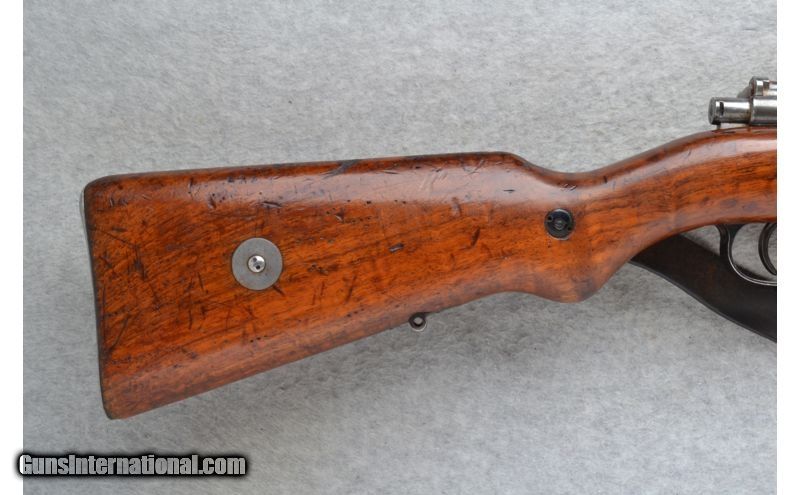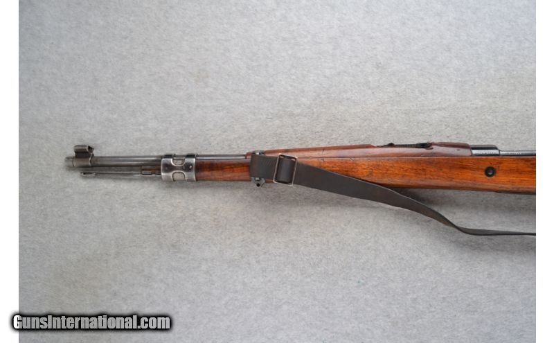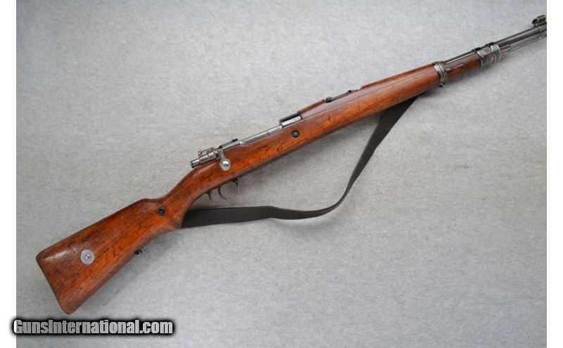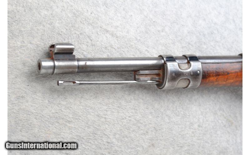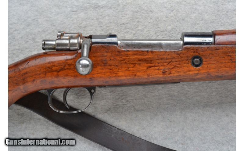 Description: This Mauser Model 1935 Chile is a right hand bolt action rifle in 7mm Cal. It has a 22 inch barrel. A front blade sight with protective sides and a numbered sliding adjustable notch middle sight. The stock is a smooth walnut semi-pistol grip. It has a matching serial number of 6071. It comes with a leather sling. SOLD Curio/Relic: Yes Caliber Info: 7mm Chambers: Bolt Action 5 round internal box magazine. Metal Condition: Very good with light blue wear, minor freckling and minor handling marks. Wood Condition: Good. Has multiple handling marks. Bore Condition: Very good. Barrels: 22 inch blued. Stock: Smooth walnut semi-pistol grip. Stock Dimensions: LOP 13 inches. Fore End: Smooth grip two piece walnut with a barrel band and steel end. Butt Pad: Smooth steel. Weight: 8 lbs. 10 oz. Sights: Blade front with protective sides. Numbered sliding adjustable notch middle. Extras: Leather sling. Item Location: Richfield, WI |