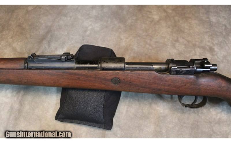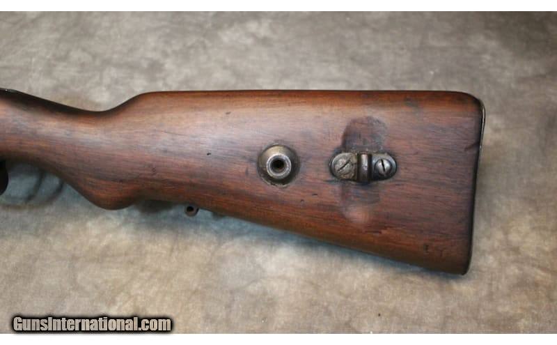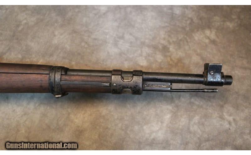 Description: This Mauser 98K is in good condition. The stock is solid with no cracks. There are a couple of small dents in the stock. The receiver, bolt, bolt shroud, safety and floor plate have matching serial numbers. The receiver is stamped 1937. There are several parts stamped with German army acceptance marks. 8mm Mauser SOLD Curio/Relic: Yes Chambers: 8mm Mauser Metal Condition: Good Wood Condition: Good Bore Condition: Good Barrels: 24 Butt Pad: Steel butt plate Weight: 8.5 lbs Sights: "Ladder adjustable rear for elevation graduations to 2000 meters, protected post front Item Location: Columbia, MO |