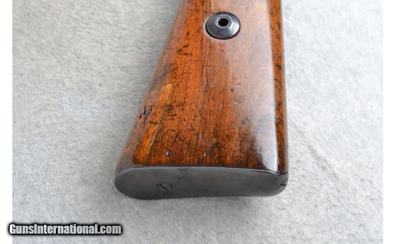 Description: This Mauser Model 98 1937 is a right hand bolt action rifle in 8mm Mauser Cal. It has a 24 inch barrel. A blade front and tangent middle sight. The butt stock is a smooth walnut semi-pistol grip. The forearm is a smooth grip two piece walnut with a barrel band. This gun appears to have been professionally refinished. 8MM SOLD Curio/Relic: Yes Chambers: Bolt Action 5 round internal magazine. Metal Condition: Very good. Has been reblued. Wood Condition: Very good. Handling marks. Has been refinished. Bore Condition: Excellent. Barrels: 24 inches. Stock Dimensions: 13 inches. Fore End: Smooth grip walnut. Butt Pad: Smooth steel plate. Weight: 8 lb. 9 oz. Sights: Raised blade front. Tangent Middle. Item Location: Richfield, WI |