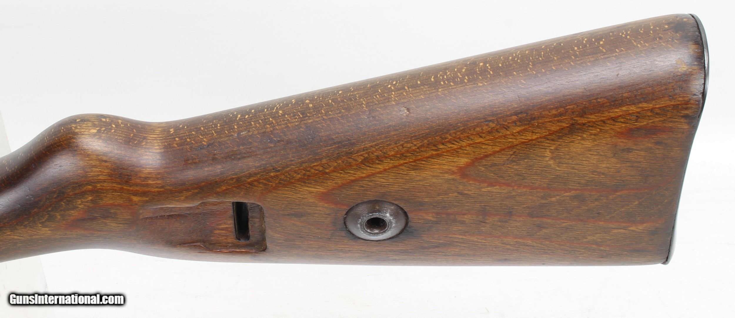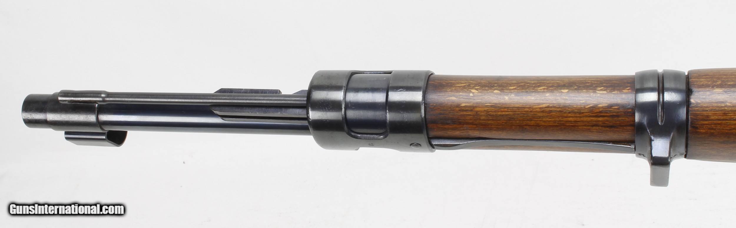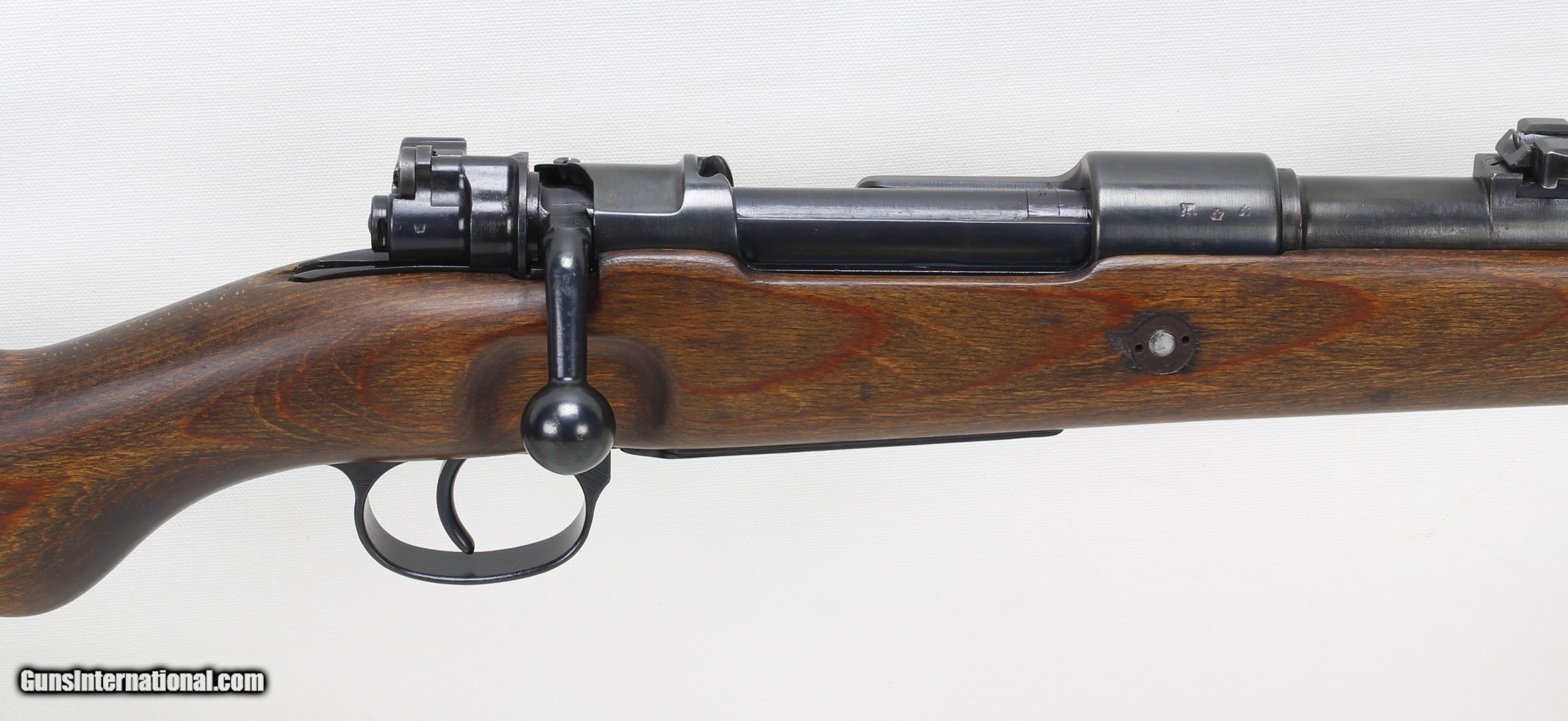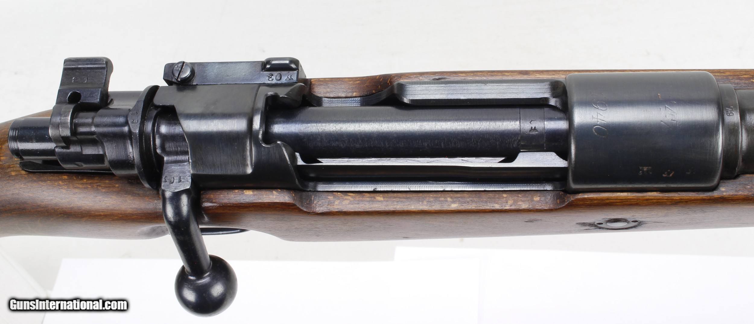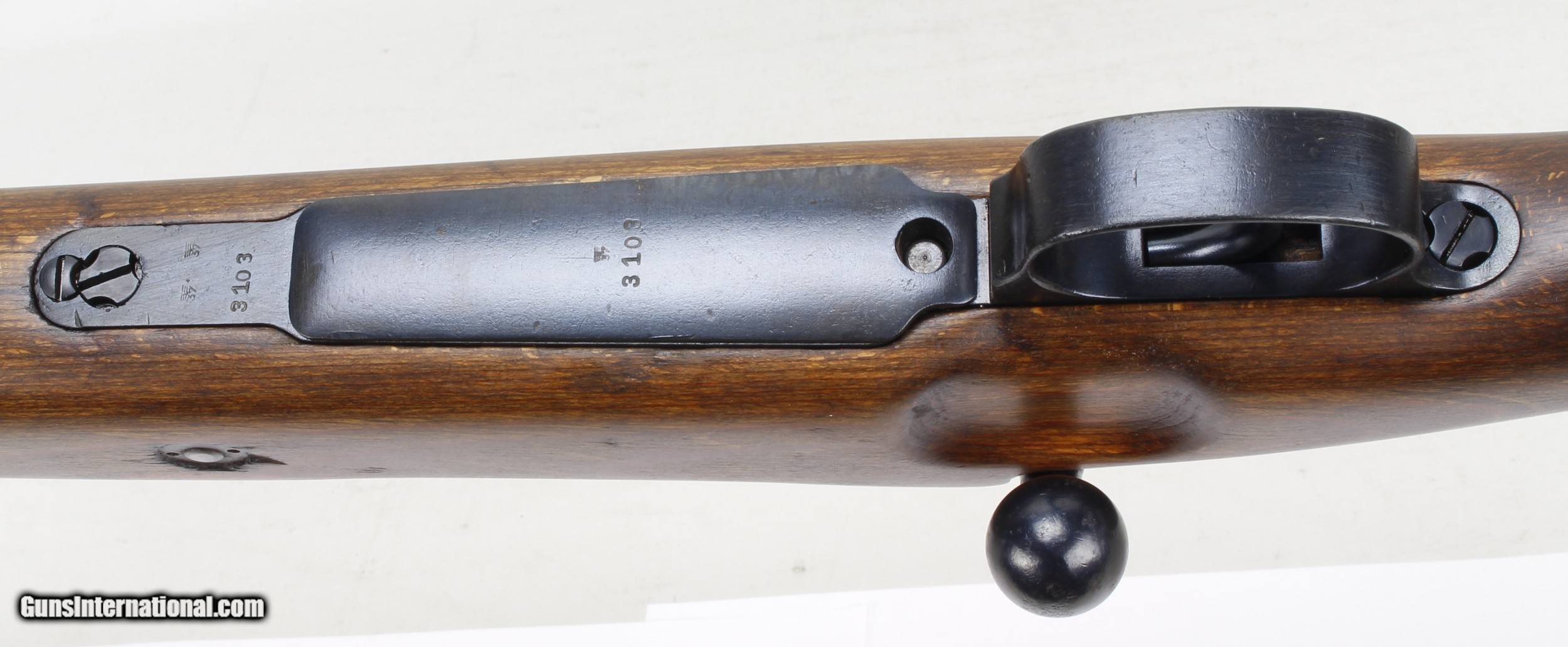 Description: Mauser K98 147 Rifle, Mfg. by J.P. Sauer, in 8MM. SN #3103r. Mfg. in 1940. All matching numbers. LOP 13". 24" barrel with a Very Good bore, strong rifling with slight frosting. The metal has been re-blued and all the Stampings and Nazi Markings are very clear. The wood has been nicely re-finished. Weight 8.7 Lbs. Very sharp all around and not easy to find one that has all matching numbers. More photos available upon request. Ships to Lower 48 W/ Insurance $40.00. SOLD Curio/Relic: Yes Rifle Caliber: 7.92x57mm Mauser Manufacturer: J.P. Sauer Model: 98K Mauser Serial Number: 3103r Barrel Length: 24 Condition: Excellent Metal Condition: Refinished Wood Condition: Refinished Bore Condition: VG Action: Bolt Action LOP: 13 Finish: Blue Weight: 8.7 Lbs. Manufacture Date: 1940 |
