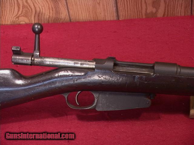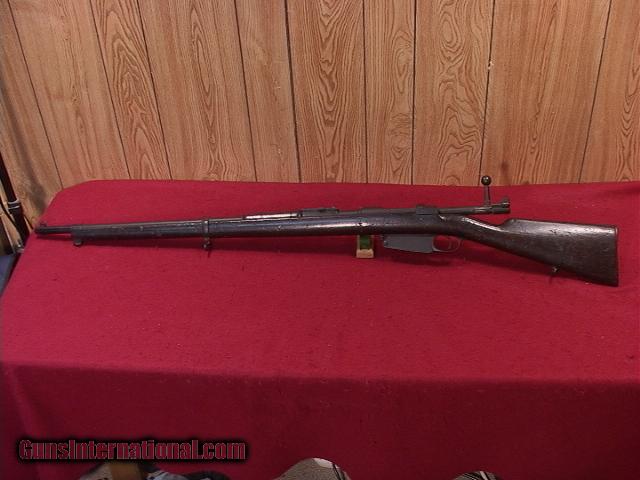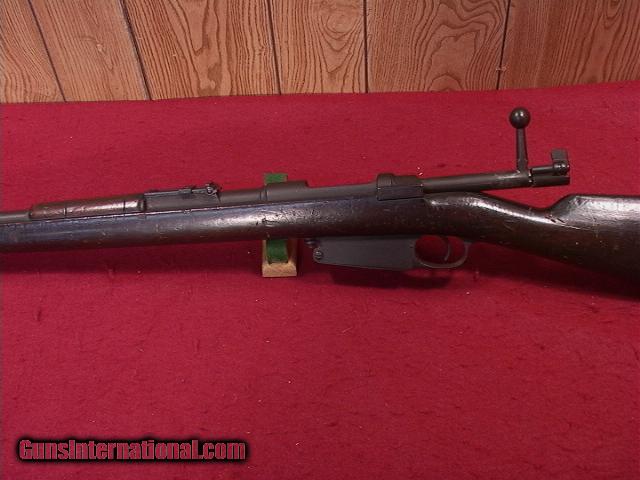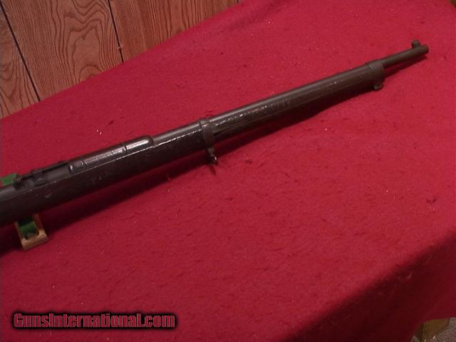 Description: MAUSER ARGENTINE 1891 7.65, BROWN AND LIGHTLY PITTED, MATCHING BOLT, MADE BY LOEWE IN BERLIN, BORE HAS STRONG RIFLING BUT IS DARK, ANTIQUE SOLD |