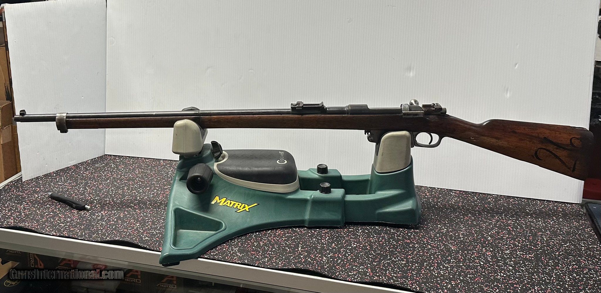 Description: Guns Listing ID: 545826 Argentine Model 1891 guns in decent shape. Missing a few parts but the action and barrel are solid. Still fires exceptionally. SOLD Curio/Relic: Yes Manufacturer: MAUSER Model: Argentino 1891 Caliber Info: 7.65X53MM ARGENTINE (7.65X53MM MAUSER) Condition: Used - Non-Certified Barrels: 28.5 BARREL Action: BOLT ACTION Finish: black /w wood stock |