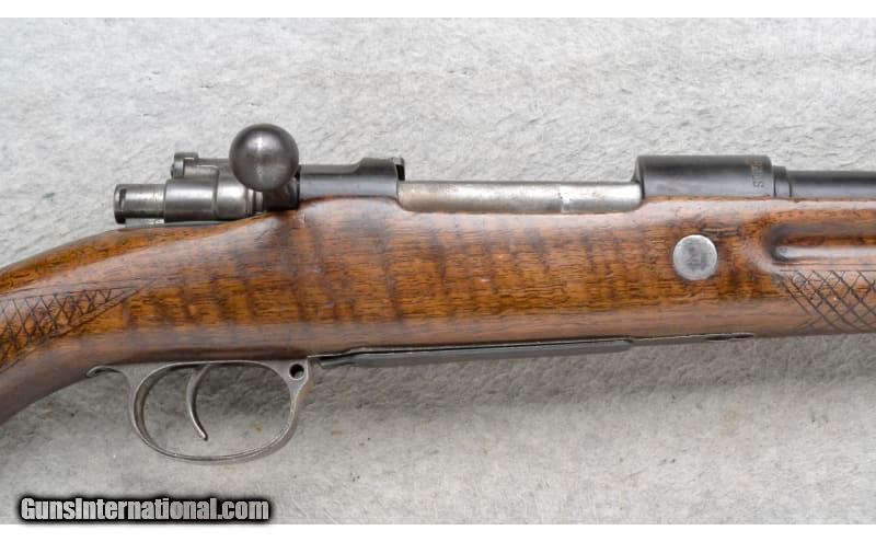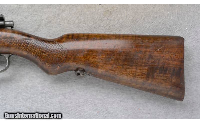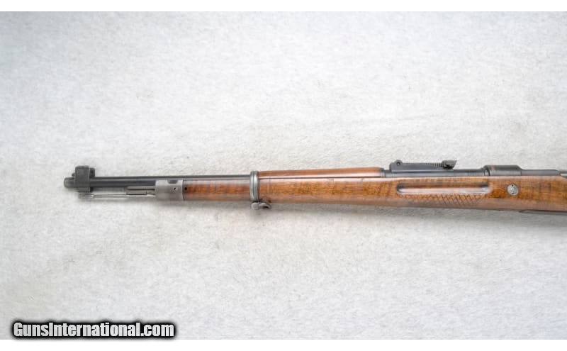 Description: This Mauser Model Belgian 1935 is a right hand bolt action rifle in 7.65mm Cal. It has a 24 inch barrel. A blade front sight with protective sides and an adjustable notch middle sight. The butt stock is a checkered grip hardwood pistol grip. The forearm is a checkered grip hardwood with finger grooves and a barrel band. S/N 48698. 7.65x53mm Mauser SOLD Curio/Relic: Yes Metal Condition: Good. Wood Condition: Good. Light handling marks. Bore Condition: Good. Barrels: 24 inch. Stock Dimensions: 13 inches. Fore End: Checkered grip two piece hardwood with finger grooves and a barrel band. Butt Pad: Smooth steel plate. Weight: 8 lb. 8 Oz. Sights: Blade front with protective sides. Adjustable notch middle. Item Location: Richfield, WI |