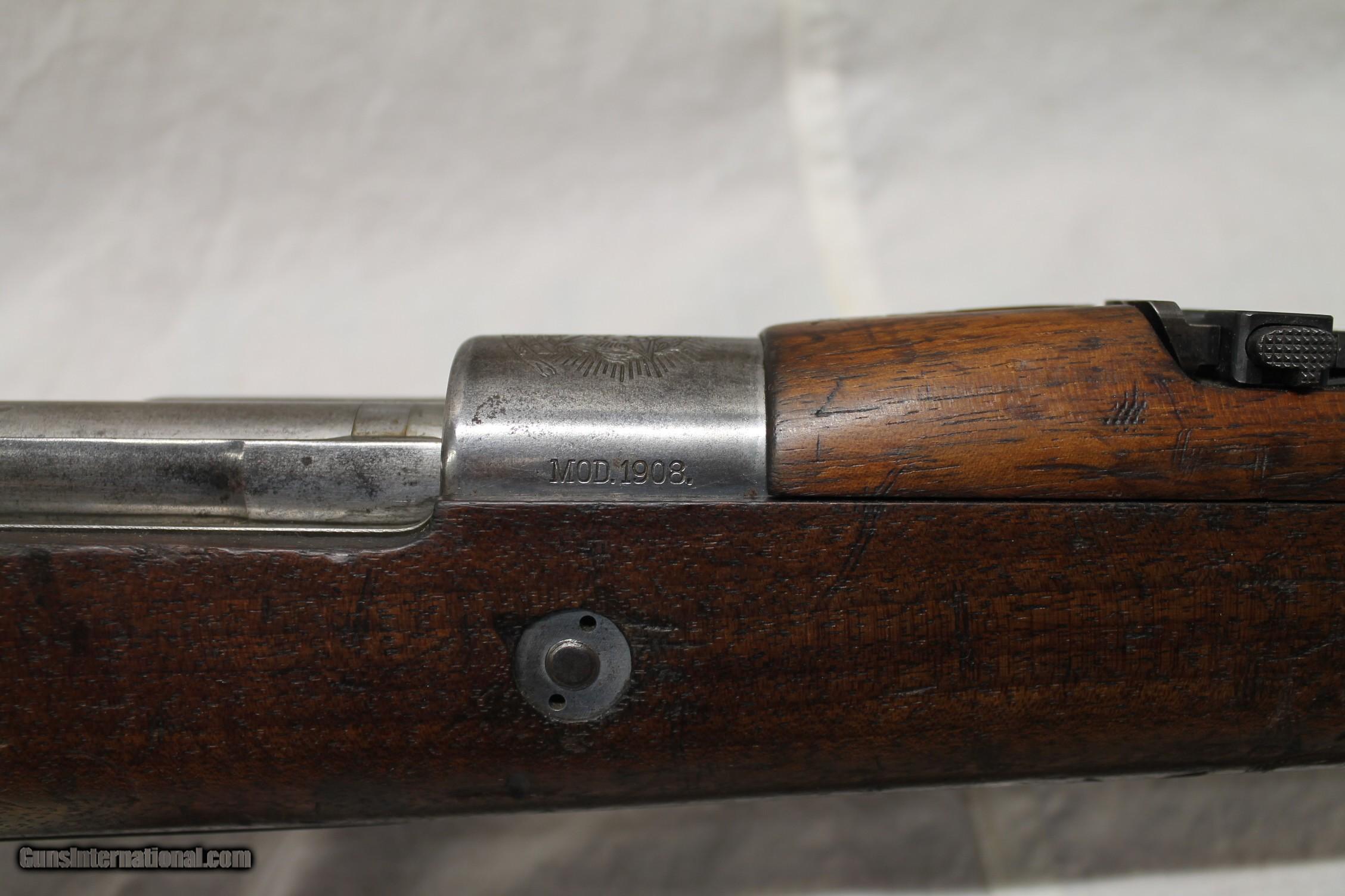 Description: Brazilian Mauser,1908 7x57,everything but the bolt match,good bore,no cracks in wood,no chips in wood,Deutsche waffen-und,munitionsfabriken Belin,crest is complet,muzzel crown is good,Payment with postal money order or add 6% for CC, shipping 65.00,We are a full time gun store and reserve the right to end an early if it sells in the store SOLD Rifle Caliber: 7x57mm Mauser Manufacturer: mauser Model: 1908 Serial Number: B2204 Metal Condition: 90% Wood Condition: 90% Bore Condition: 80% |
