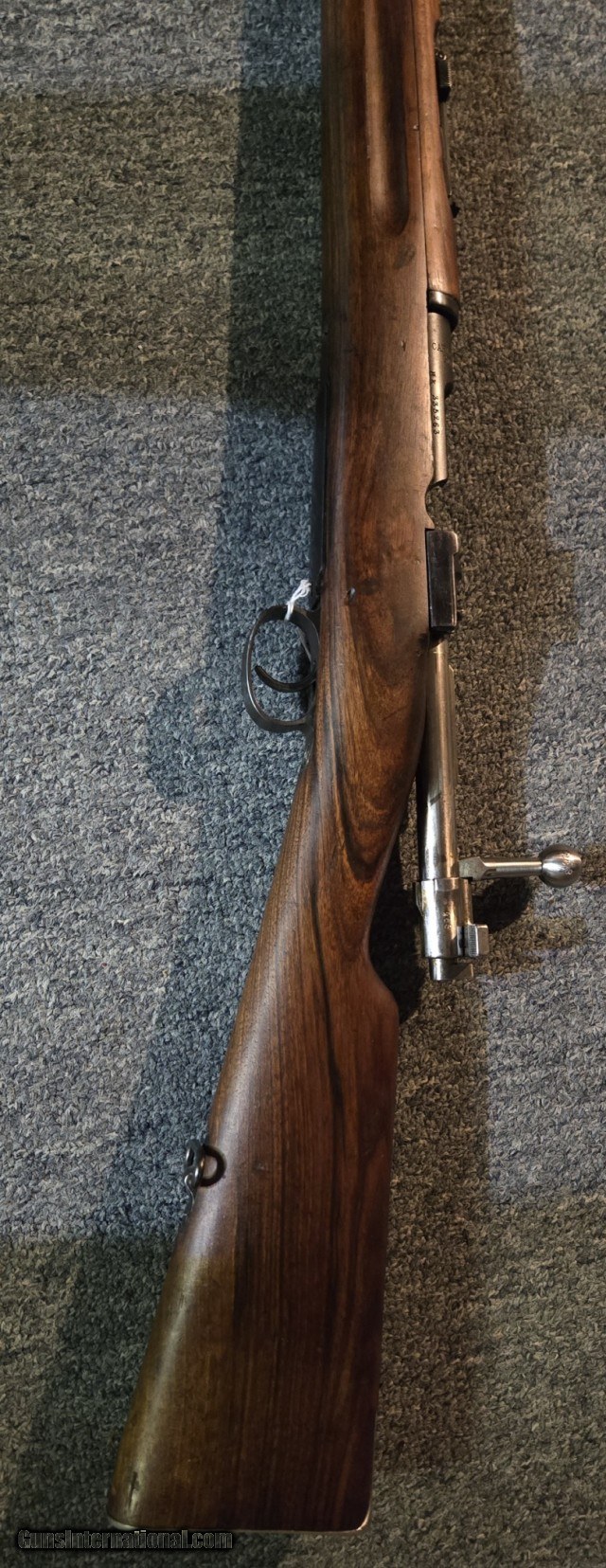 Description: This 6.5 X 55 Cal. Mauser is a Carl Gustfas rifle with matching #s. Threaded barrel. Extra nice wood. Perfect bore. No rust, no cracks or goughes. $900.00. rmgrigolettoyahoo 732 859 6066. Curio/Relic: Yes Price: $900.00 Contact Seller |