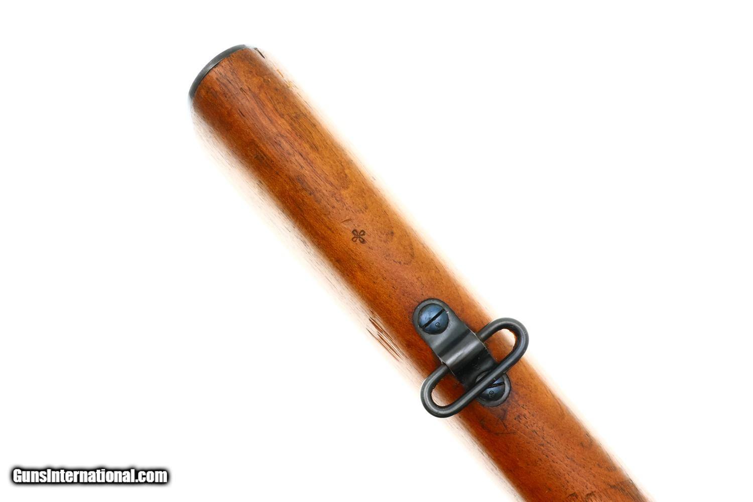Description: Synopsis: Beautiful, seemingly unissued, Chilean Model 1895 military rifle, made by Loewe in Berlin, with dramatic Chilean crest on the receiver and all matching to include cleaning rod. Wonderful rifle that would be difficult to improve upon. Description: Standard configuration Mauser Chileno Model 1895 bolt action rifle made by Loewe in Berlin, with Mauser action and chambered in 8mm Mauser. Drift adjustable inverted V front sight and ladder style rear sight graded 5-20. Large Chilean crest on the chamber. The left side is marked with the full SN followed by the manufacturer address. Full SN repeated on the bolt handle, trigger guard, and cleaning rod with the last two numbers repeated on the floorplate, bolt head, and safety selector. Multiple matching inspection marks on the rust blued and fired blued surfaces in addition to the matching stock. Smooth rust blued blued buttplate. Condition: Excellent, basically unissued, with a few superficial handling/rack marks on the wood and sharp edge wear on either side of the trigger guard. Similar considerations apply to the fired blued parts. Many of the in-the-white parts still with packing grease in recessed areas. Mirror bore, still with some packing grease. Correct manual mechanics. A classic South American contract rifle, all original, in impeccable condition! SOLD Manufacturer: Mauser Model: Chileno Model 1895 Serial Number: A5181 Caliber Info: 8mm Mauser Condition: EXC |