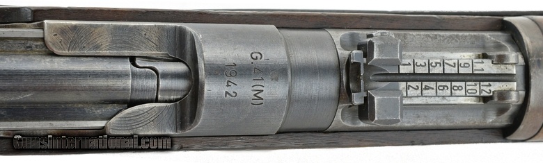 Mauser G41 (M) 8mm caliber rifle. Extremely rare 41 (M) German WWII Infantry rifle. Serial numbers are matching, except for the front sight, bolt body guard, and muzzle. Bore is excellent. Wood is good with combat wear. 135 Waffenamt cartouche is sharp and serial number on wood is visible. Comes with sling. Very good overall condition. A scarce rifle! Certainly one of the more desirable rarities of WWII collecting.