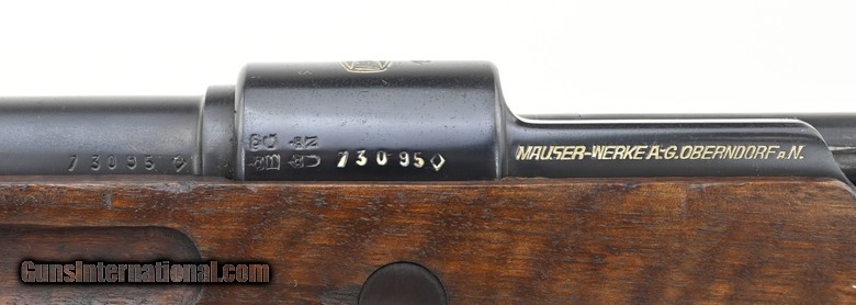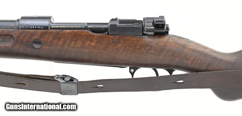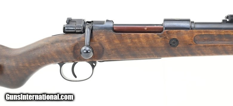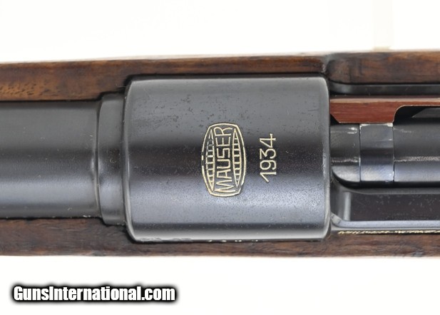 Description: Mauser K98 8mm caliber rifle. Mauser banner K98 manufactured in 1934, has been refinished. Bore is very good with strong rifling. Serial numbers are matching. Upper and lower barrel bands are un-numbered. Very good overall condition.