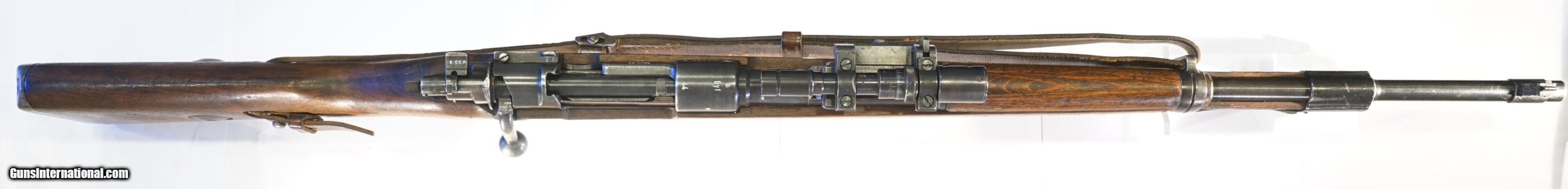 Description: Inv. 5895 Mauser K98 (byf 44) Sniper Cal. 8mm, Ser. 403XX This is a rare find in today's collector market. All original sniper. The rifle is all matching except for a field replaced period forearm. All numbered metal parts match. The original factory blue remaining is about 90%%. The loss is mostly due to some light toning on the magazine floor plate and scattered surface pin pricks on the left edge of the buttplate. The rest of the gun is really super. The receiver is stamped Eagle/ Swastika, 4033XX and Eagle/153 in three places. The barrel, Eagle/Swastika Eagle/153 and 13R261. The rear sight with scope base are stamped Eagle/135. The scope mount is stamped "duv" Eagle/135. The scope is marked "cag" /+/ and has been upgraded to a ZF-41-1 and has the original rear sunshade. It shows almost no wear and retains about 98-99% of the original finish. The only loss is from the rub mark made from the indexing system's locking plate. The lenses are clear and super bright with no fogging. The reticle is the correct three post type and functions properly. The stock is in fine condition. No splits or chips, there are numerous surface dings, but nothing serious.. The right side of the butt is stamped, Eagle Swastika WaA135. The bolt face follower and feed ramp do not show any excessive use. The bore is great, very bright with sharp well defined rifling and just a hint of graying. The gun comes with one original Nazi leather sling in good condition. It does show some small patches of wear. It would be a real handsome addition to any collection, re-enactor or as a paper blaster at the range......$3495. To purchase this firearm or if you want to request more information contact us at: Email ckgunsymail Phone 201-512-0002 Cell 201-575-6838 FAX 201-215-4759 We accept most major credit cards. Prices shown are Discounted 3% for Cash or Check. The buyer must be familiar with all the laws governing the purchase and the ownership of firearms in their own city and state. The Yankee Armorer, Inc is not responsible for any failure to comply with or observe these laws. The Yankee Armorer, Inc will only ship after full payment and receipt of all required documents. Shipping: Add $35.00 for handguns, $45.00 for long guns. New Jersey buyers are subject to a 7% sales tax. The Yankee Armorer, Inc offers a 3 day inspection period with full refund upon return of intact firearm and in the original condition. The Yankee Armorer, Inc offers a no interest lay away program - 25% down; 25% in 30 days; 25% in 60 days; and full payment in 90 days. Any violation of this policy is subject to restocking and forfeiture of all payments. Any variation from this policy must be agreed to in advance. Unshipped Cancelled sales are subject to a 20% restocking fee. Be advised that all firearms sold by The Yankee Armorer, Inc. or the Gun Exchange, LLC (SELLER) are sold as collector’s items. They have not been fired or tested for safety and must be examined by a license gunsmith prior to use. By purchasing any item from the (SELLER), you are agreeing to hold the (SELLER) free from any damages or lawsuits of any nature. Any item left for transfer or storage will be charged to $25.00 per month, per item from the day of its receipt. Any variation from this policy must be agreed to in advance. Store hours 10:00 am to 5:00 pm Tuesday -Saturday. It's always best to call for appointment. Store 201-512-0002, cell 201-575-6838. SOLD Curio/Relic: Yes Manufacturer: Mauser Model: K98 Serial Number: 403XX Caliber Info: 8mm |