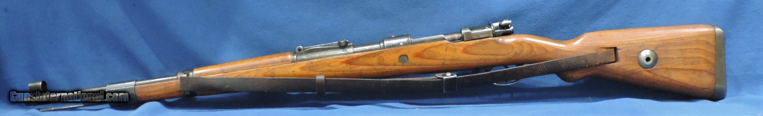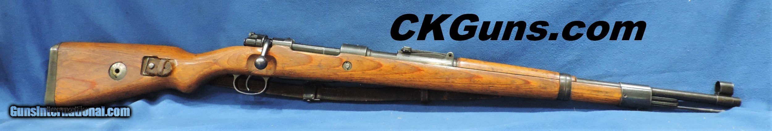Description: INV. 7913 MAUSER K98, CAL. 8MM, SER. 2934 o. AWESOME, THIS ALL MATCHING GUN RETAINS ABOUT 95% 0F THE ORIGINAL LATE WAR BLUE. THE LITTLE LOSS THERE IS, IS DUE TO SLIGHT SHARP EDGE SILVERING AND SCATTERED PIN PRICKS. THERE ARE NO RUST PATCHES OR SCRATCHES. THE RECEIVER IS STAMPED "duo/43, EAGLE/SWASTIKA, THE BARREL, EAGLE/SWASTIKA AND EAGLE/WaA80. THE STOCK AND FOREND ARE JUST ABOUT FACTORY NEW, NO SPLITS OR DINGS ANYWHERE. THE SLIDE RAILS, BOLT AND FEED RAMP SHOW ONLY SLIGHT USE. THE BORE IS SUPER, MIRROR BRIGHT WITH RAZOR SHARP RIFLING AND SOME LIGHT SCATTERED FROST. IT COMES WITH ONE ORIGINAL LEATHER SLING. TRULY, IT WOULD BE VERY DIFFICULT TO FIND A BETTER "98k" AT ANYWHERE NEAR THIS PRICE....SHIPPED..$1895.*** ***WITH OUR "PURCHASE SATISFACTIOIN GUARANTEE". To purchase this firearm or if you want to request more information contact us at: Email ckguns[at]ymail[dot]com Phone 201-512-0002 Cell 201-575-6838 FAX 201-215-4759 We accept most major credit cards. Prices shown are Discounted 3% for Cash or Check. The buyer must be familiar with all the laws governing the purchase and the ownership of firearms in their own city and state. The Yankee Armorer, Inc is not responsible for any failure to comply with or observe these laws. The Yankee Armorer, Inc will only ship after full payment and receipt of all required documents. Shipping: Add $35.00 for handguns, $45.00 for long guns. New Jersey buyers are subject to a 7% sales tax. The Yankee Armorer, Inc offers a 3 day inspection period with full refund upon return of intact firearm and in the original condition. The Yankee Armorer, Inc offers a no interest lay away program - 25% down; 25% in 30 days; 25% in 60 days; and full payment in 90 days. Any violation of this policy is subject to restocking and forfeiture of all payments. Any variation from this policy must be agreed to in advance. Unshipped Cancelled sales are subject to a 20% restocking fee. Be advised that all firearms sold by The Yankee Armorer, Inc. or the Gun Exchange, LLC (SELLER) are sold as collector’s items. They have not been fired or tested for safety and must be examined by a license gunsmith prior to use. By purchasing any item from the (SELLER), you are agreeing to hold the (SELLER) free from any damages or lawsuits of any nature. Any item left for transfer or storage will be charged to $25.00 per month, per item from the day of its receipt. Any variation from this policy must be agreed to in advance. Store hours 10:00 am to 5:00 pm Tuesday -Saturday. It's always best to call for appointment. Store 201-512-0002, cell 201-575-6838. SOLD Rifle Caliber: 7.92x57mm Mauser |