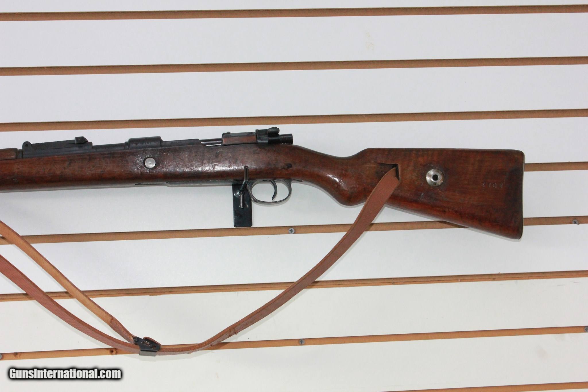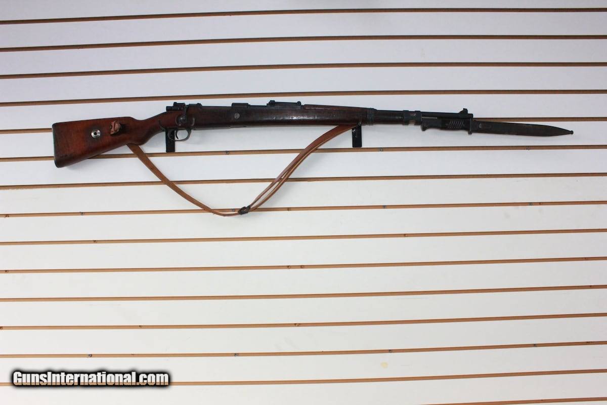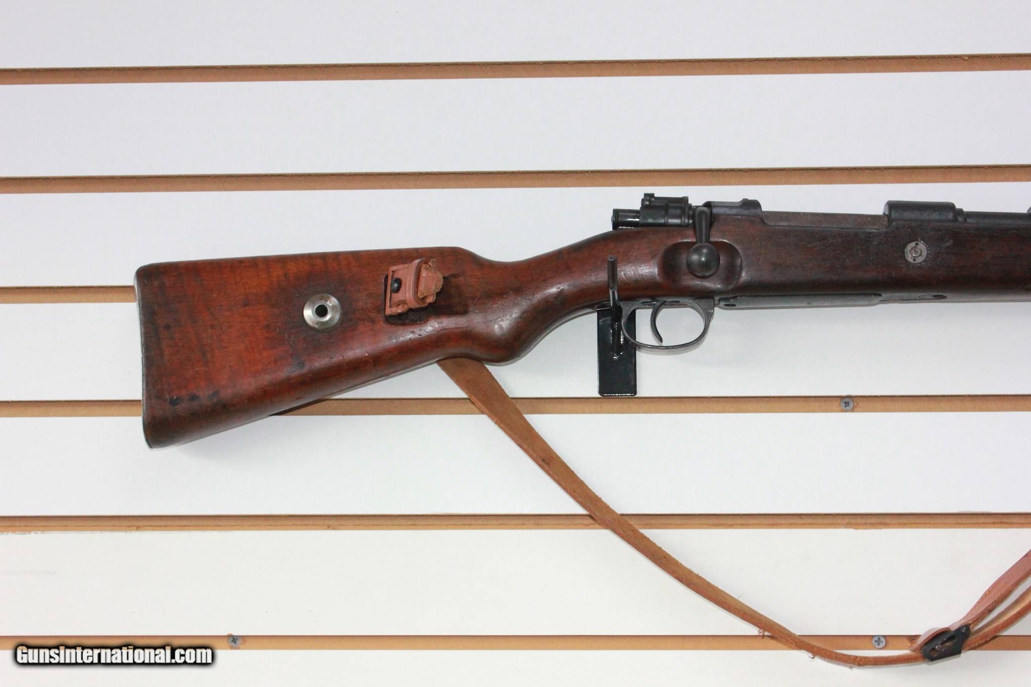 Description: Guns Listing ID: 390851 This Mauser K98 is chambered in 8MM Mauser and features a leather strap. This Mauser is stamped 1939 on the receiver and the code 243 indicates that this specific rifle was produced at Mauser-Werke AG, Werk Borsigwalde, Berlin-Borsigwalde, Eichborndamm. This rifle was Russian captured indicated by the X on the receiver. The upper receiver number matches the bolt, stock, and the barrel but the butt plate and bottom metal have different numbers. Overall this rifle is in good condition for being over 80 years old. This rifle also has a bayonet, but it is not the original bayonet. PLEASE LOOK AT THE PICTURES TO BETTER UNDERSTAND THE CONDITION OF THIS FIREARM!!!! SOLD Curio/Relic: Yes Manufacturer: MAUSER Model: K98 Caliber Info: 8MM Condition: Used - Non-Certified Barrels: 23 BARREL Finish: WOOD, BLUED STEEL |