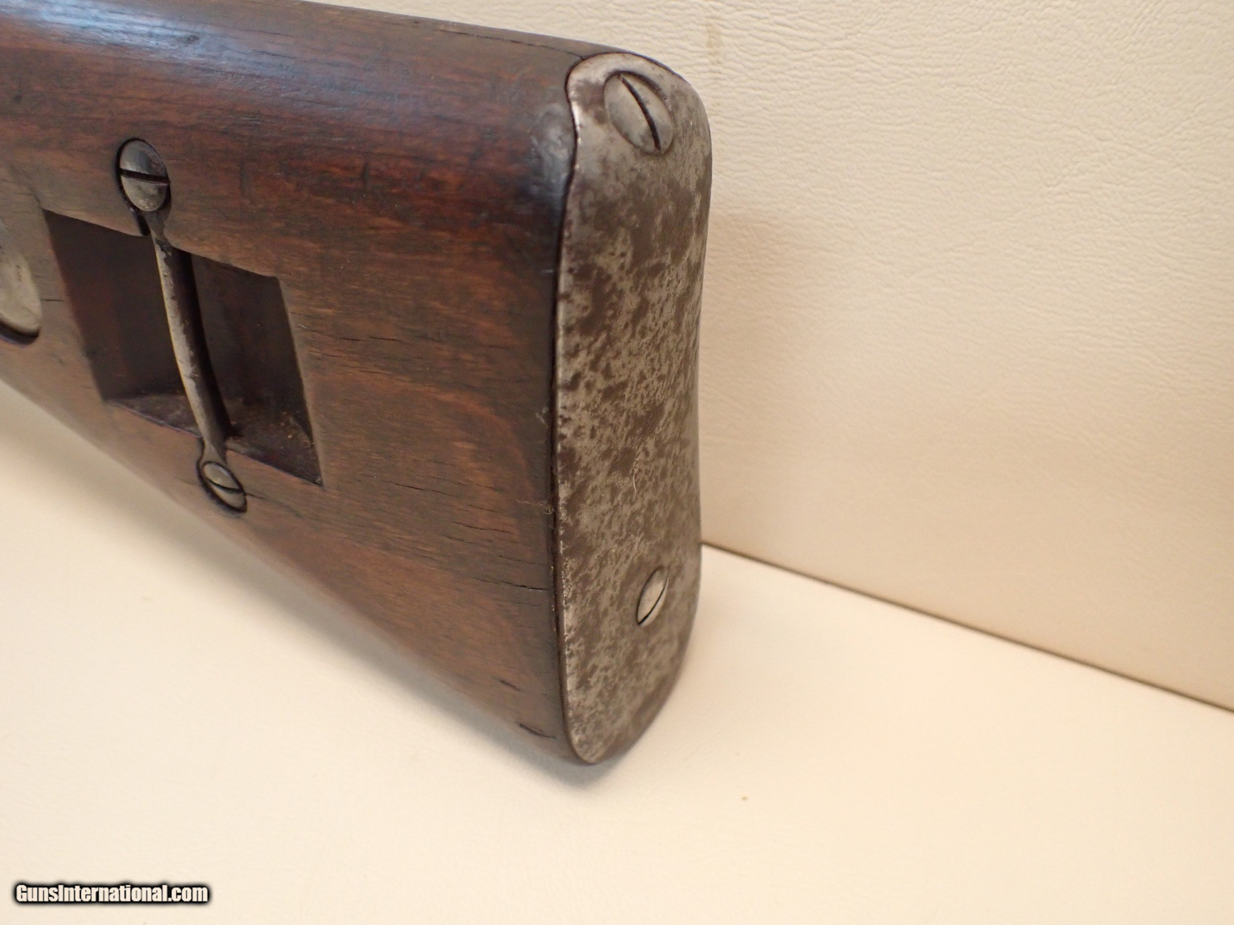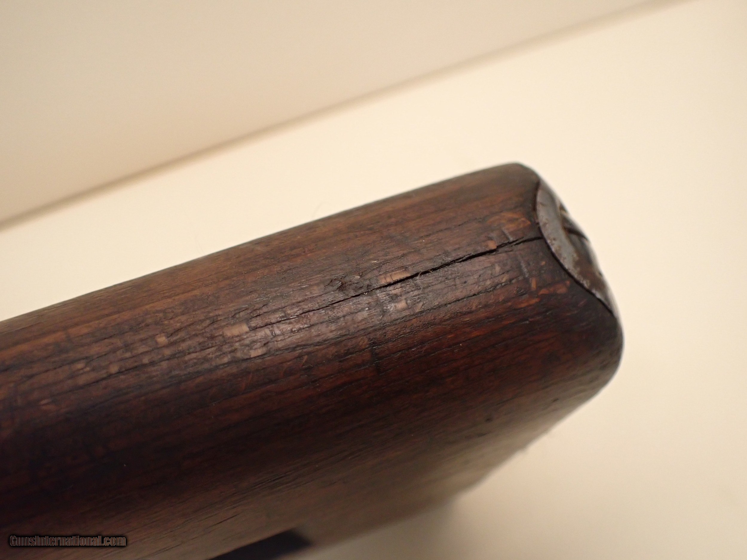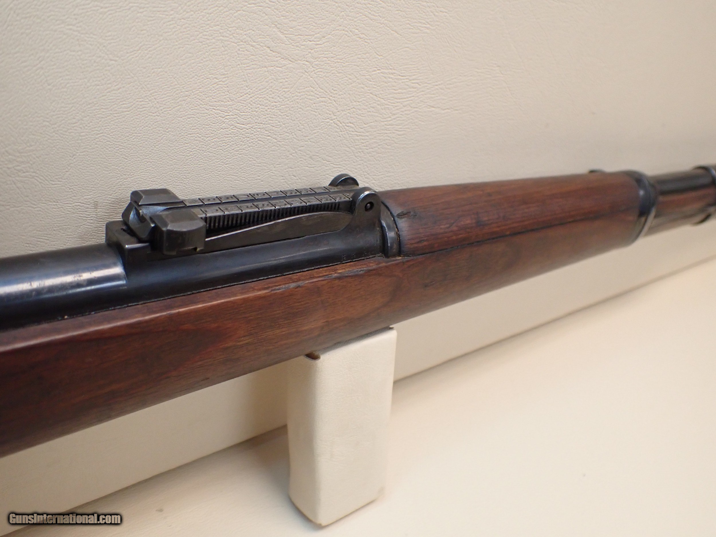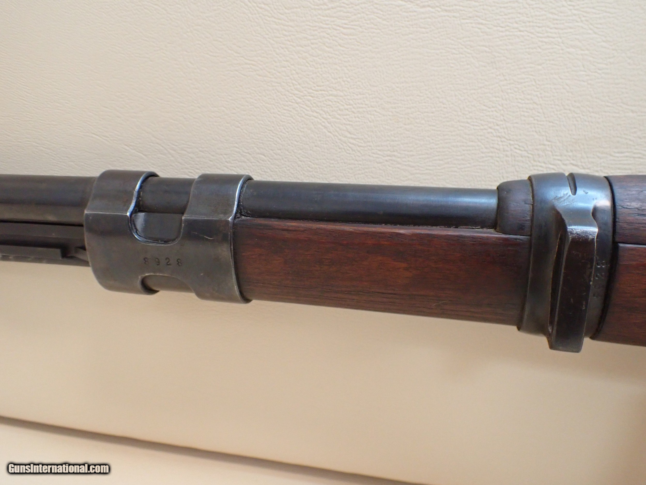 Description: ***SOLD*** Mauser K98k 8mm Mauser bolt action WWII German service rifle, dated to 1940. This rifle features a full length laminated hardwood stock and handguard, with a blued finish on the hardware, and the iconic Mauser-designed bolt action mechanism with internal magazine. The rifle appears to have all of its original matching parts, with matching numbers, as shown in the photos. The rifle is in good working order with a smooth action and operable trigger mechanism. The bore has some mild corrosion, with visible rifling underneath, and with some work/solvents, could become a nicer bore. The extractor and other flat springs are dispalying a red-ish tone, likely a result of the heat treating method they underwent during production. The stock has two small splits, one right behind the receiver tang, and one by the top of the butt plate, and both appear to be stable. Some evidence of finish wear and evidence of old surface rust is visible as well. Please refer to the photos to further assess the condition of the rifle. A wonderful collectible rifle for a WWII small arms enthusiast, and could make for a great shooter! C&R OK. SOLD Manufacturer: Mauser Model: K98k Serial Number: 8928 Caliber Info: 8mm Mauser |