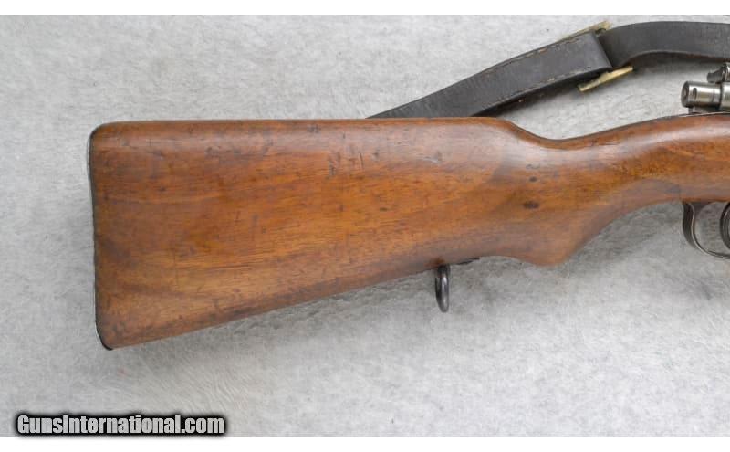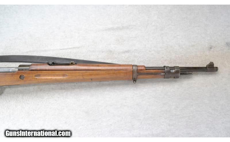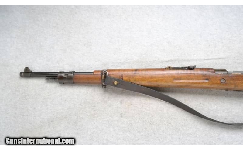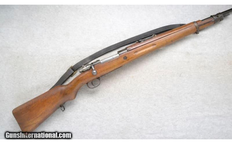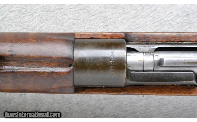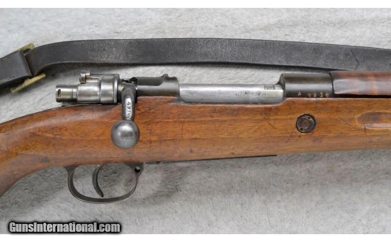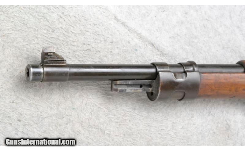 Description: This Mauser Model M24/52-C is a right hand bolt action rifle in 8x57mm Cal. It has a 23 inch barrel. A raised blade front sight and a numbered sliding adjustable notch middle sight. The butt stock is a smooth grip hardwood pistol grip. The forearm is a smooth grip two piece hardwood with finger grooves. S/N P4938. 8X57 SOLD Curio/Relic: Yes Metal Condition: Good. Wood Condition: Good. Many handling marks. Bore Condition: Very Good. Barrels: 23 inch. Stock Dimensions: LOP 13 inch. Fore End: Smooth grip two piece hardwood with finger grooves. Butt Pad: Smooth steel plate. Weight: 9 lb. 0 oz. Sights: Raised blade front. Numbered sliding adjustable notch middle. Item Location: Richfield, WI |