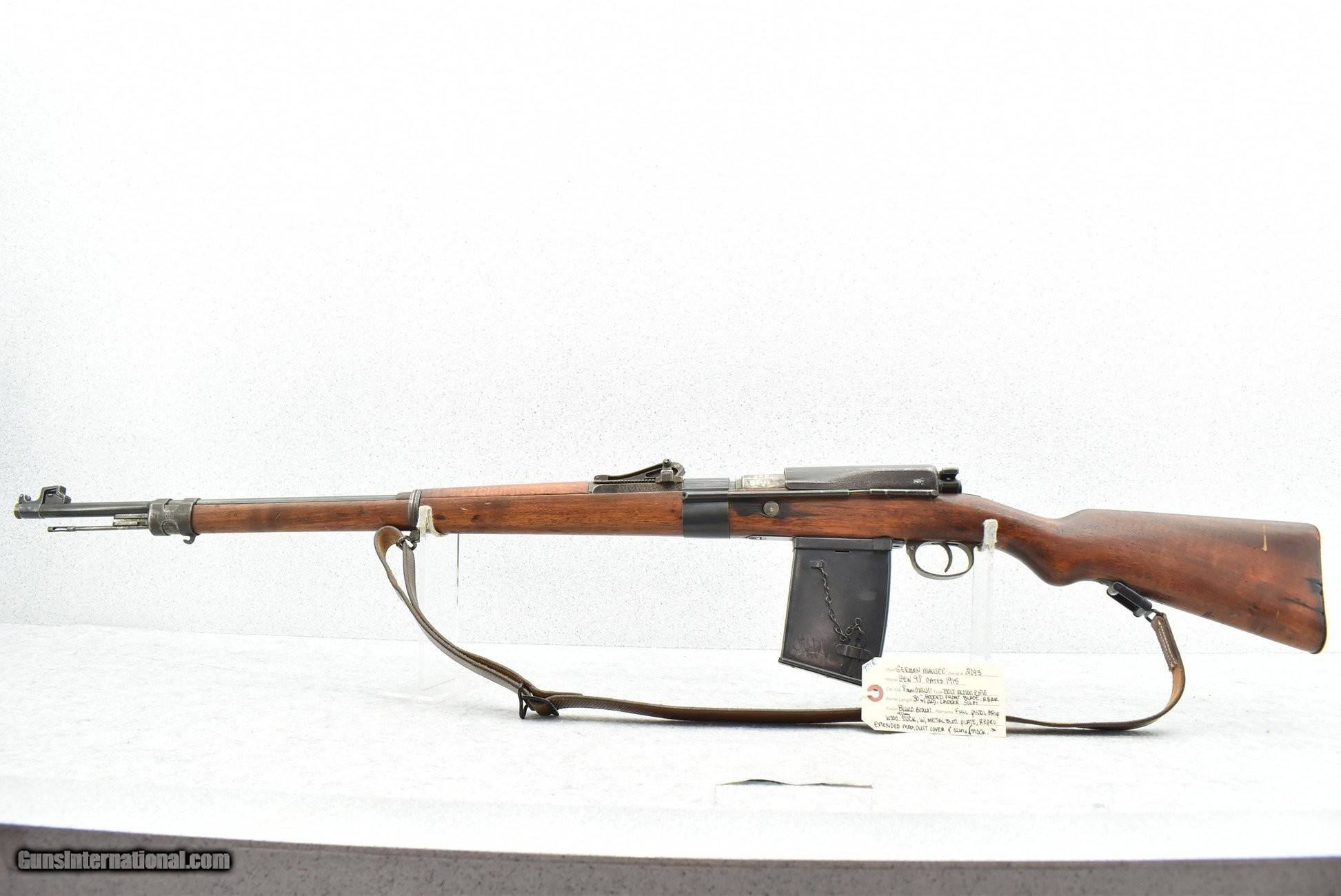 Description: Guns Listing ID: 614649 Mauser – Mod. GEW 98 – 8mm Mauser Cal. Bolt Action Rifle – w/30" Barrel w/Hooded Front Blade & Rear Adj. Ladder Sights – Blued/Brown Finish – w/Full Pistol Grip Wood Military Stock w/Metal Butt Plate – w/Reproduction Extended Mag, Dust Cover & Sling, Stock, Sight & Trigger Guard Numbers Match to Gun – Dated 1915 Curio/Relic: Yes Manufacturer: MAUSER Model: Mauser 98 Caliber Info: 8MM MAUSER Condition: Used - Non-Certified Barrels: 30" BARREL Action: BOLT ACTION Price: $2,399.99 Contact Seller |