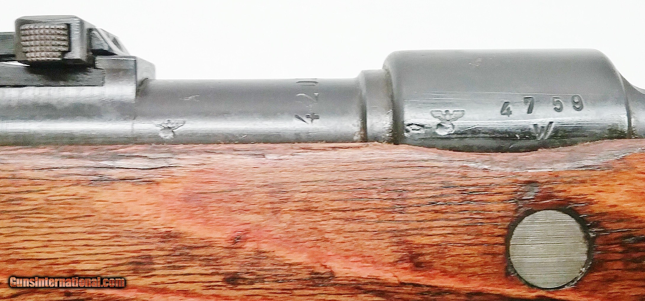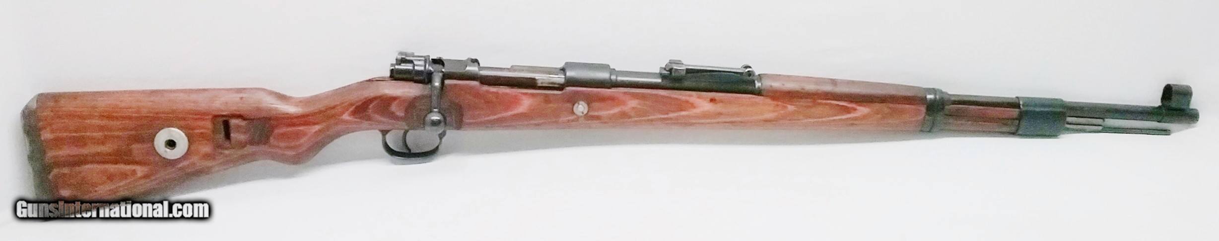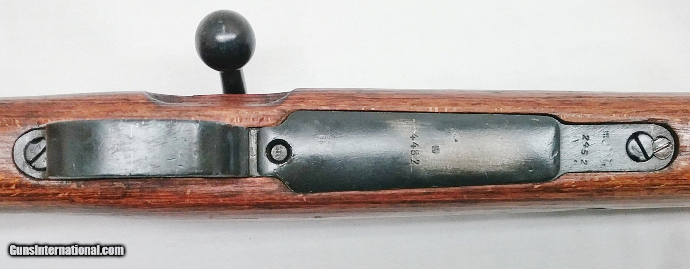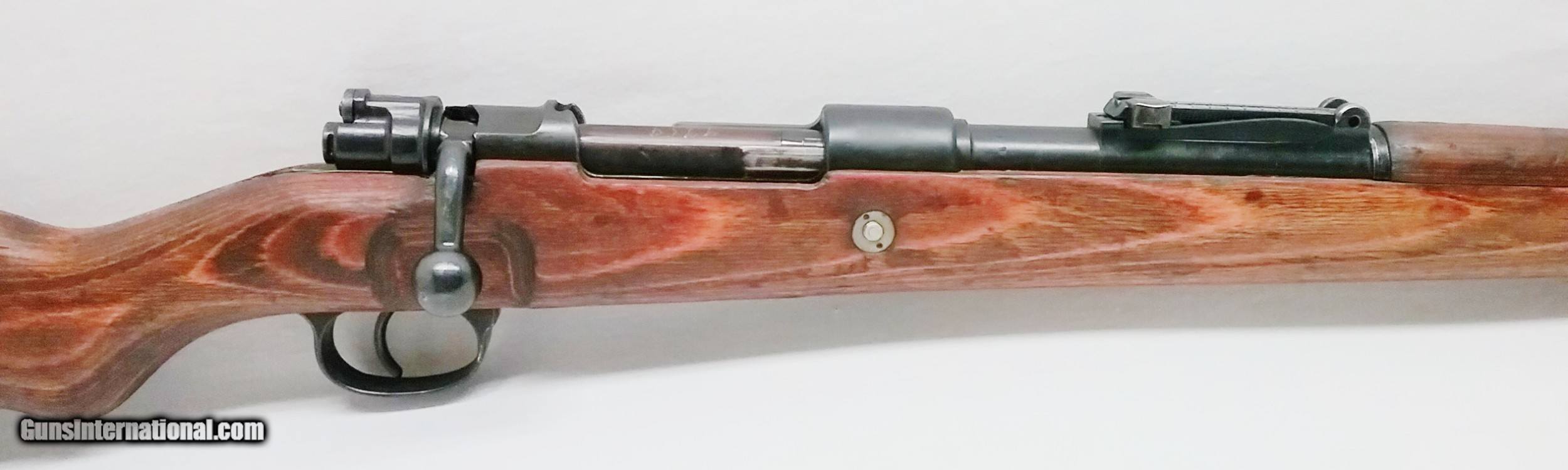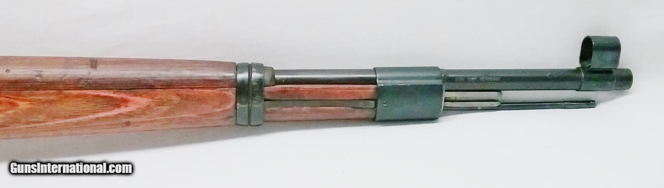 Description: This 8mm Mauser Model 98K Russian captured rifle has a 24” blued tapered round barrel mounted with a range-adjustable rear sight, a drift-adjustable front sight with hood and bayonet lug. The top of the receiver is stamped with byf 42 and the left side of the receiver is stamped Mod. 98. The bore is very good. The magazine floorplate has some wear. The wartime Laminate buttstock features the bolt disassembly tool and sling cutout and comes with a steel buttplate. The buttstock and handguard have some scratches and chips from usage but are in good condition. Please Note: All numbers are non-matching and swastikas have been defaced after capture. Length of pull is 13”, overall length is 43-1/2”, weight is 9.2 lbs. Our stock number is #C95. Will ship to any FFL anywhere in the United States. Buyer pays freight and insurance. SOLD Manufacturer: Mauser Model: 98K Caliber Info: 8mm Mauser Bore: Rifled Condition: Good Metal Condition: Good Wood Condition: Good Bore Condition: Very Good Barrels: One Barrel Type: Tapered Round Action: Bolt Action Triggers: One Stock: Laminate Fore End: Laminate Butt Pad: Metal LOP: 13 Weight: 9.2 lbs Sights: Adjustable Item Location: OR |