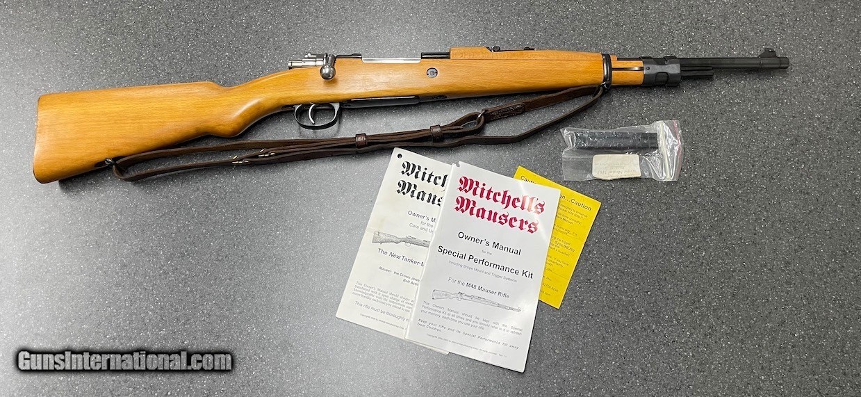 Description: This is an excellent condition Mauser 98 Carbine by Mitchells Mausers. Made by Zastava in a Model 63 18" barreled "Tanker" carbine. It is chambered in 30-06 caliber. The rifle is in great condition overall. All metal finishes are excellent. There are no notable flaws in the bluing. There is some light patina on the top of the buttplate. The bore is perfect. This rifle has not been shot much, if at all. The stock has a couple of scratches and marks. It comes with the original papaerwork as well as with a scope mount that installs in place of the rear sight. it has a military style sling on it which is also included. I do not have the original shipping box. Ship to FFL only. payment by check or MO only. Contact me for additional photos SOLD Rifle Caliber: .30-06 Springfield Manufacturer: Mitchells Mausers Model: M63 Condition: Very Good Metal Condition: VG Wood Condition: VG Bore Condition: VG Action: Bolt Triggers: Military Stock: Wood Butt Pad: Steel Finish: Blued Sights: Open Military Extras: Leather Sling Item Location: Rochester, NY |