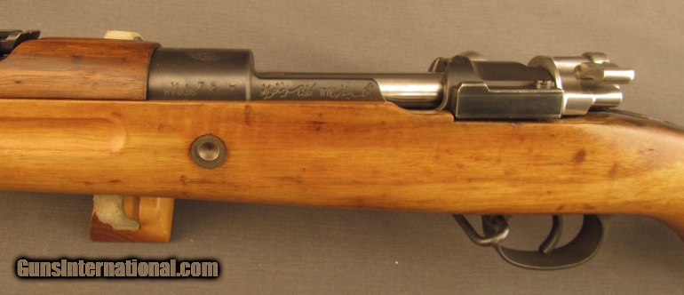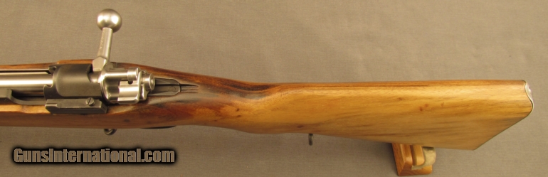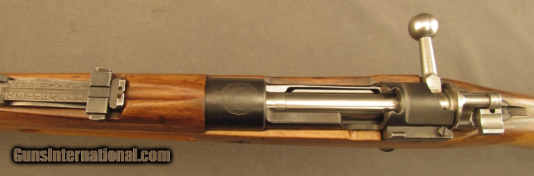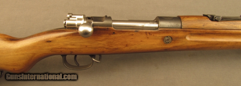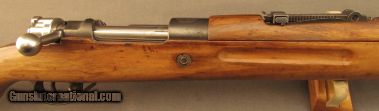 Description: Serial #P7036, 8mm Mauser, 29” barrel with an excellent, bright bore. This is an import marked rifle but retains 97-98% of an armory re-applied blue finish that has silvered very slightly at the muzzle as well as along the exposed edges of the triggerguard and receiver. The matching numbered bolt is finished armory bright and has some spots of mild freckling, mostly confined to the bolt knob. The handguard and matching numbered stock have been arsenal refinished to fine condition with an added varnish finish over scattered minor handling marks and surface bruises, and the Farsi markings are still legible. This is a nice example of a high quality, European-made contract Mauser that is refurbished to very good-near fine condition, and would make great addition to any collection. FFL or C&R SOLD Manufacturer: Persian Model: Mauser Serial Number: P7036 Caliber Info: 8mm Gauge Info: 8mm |