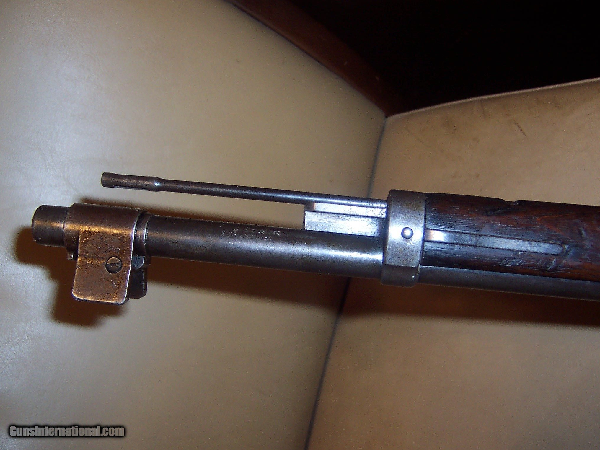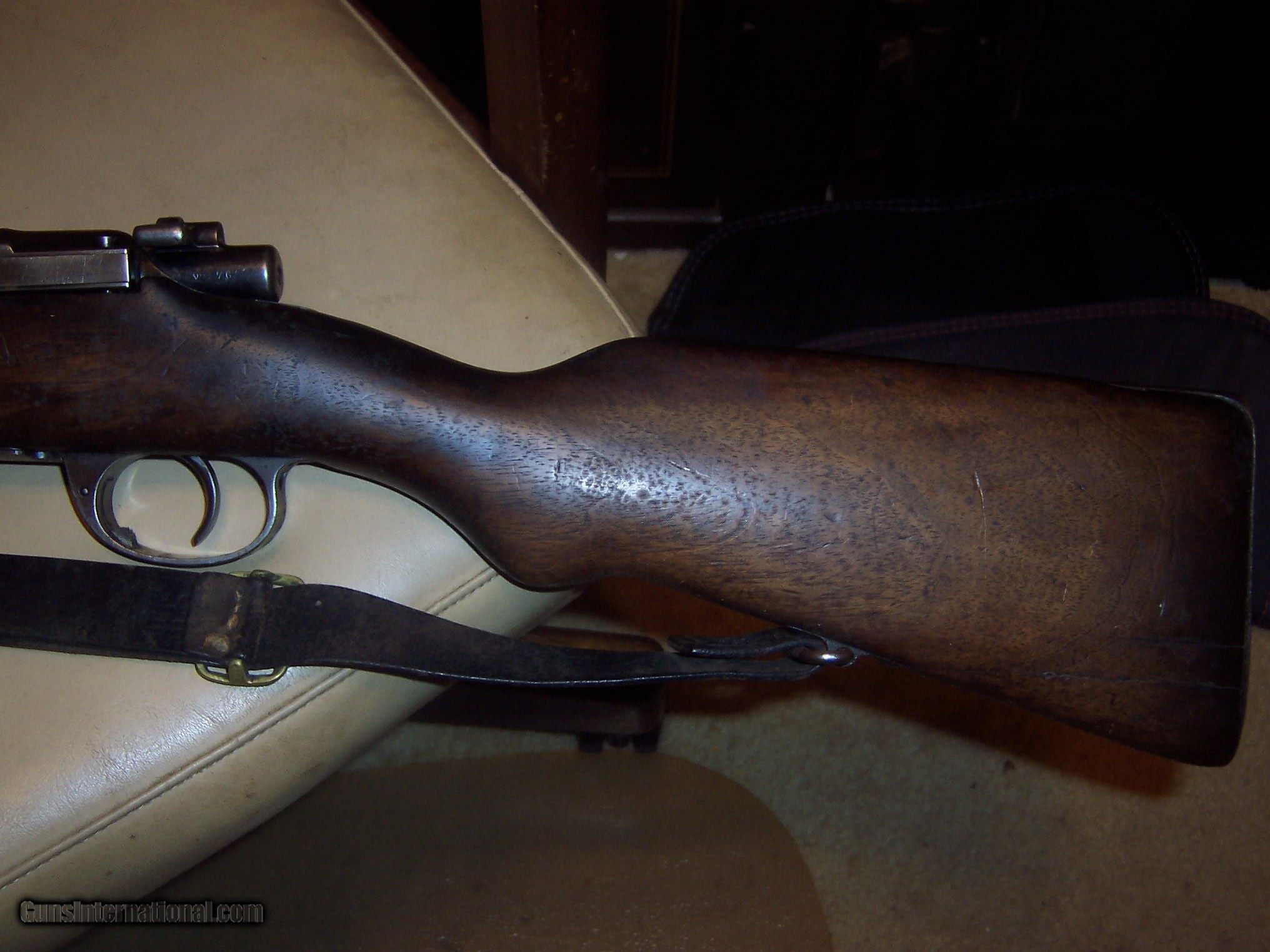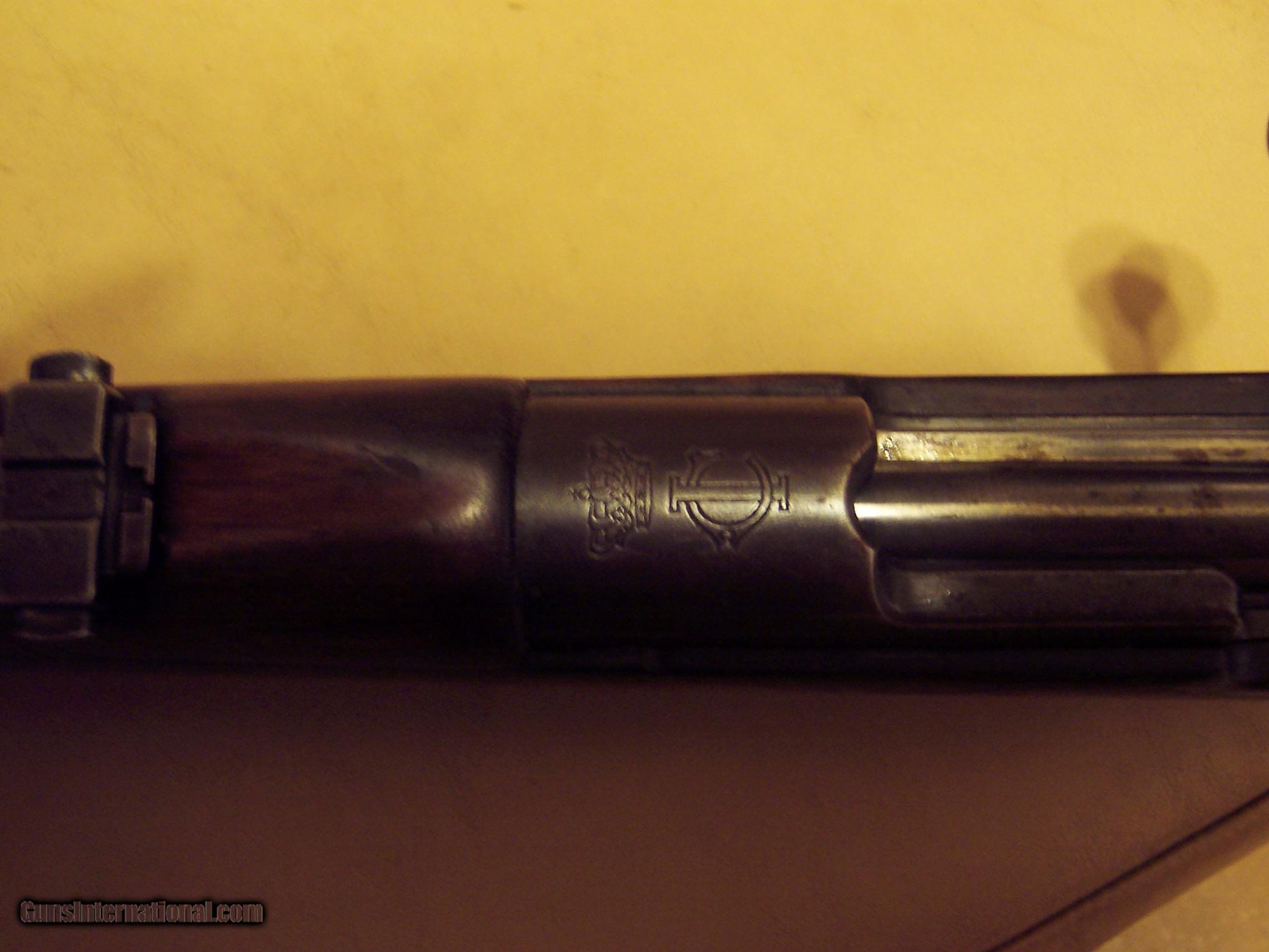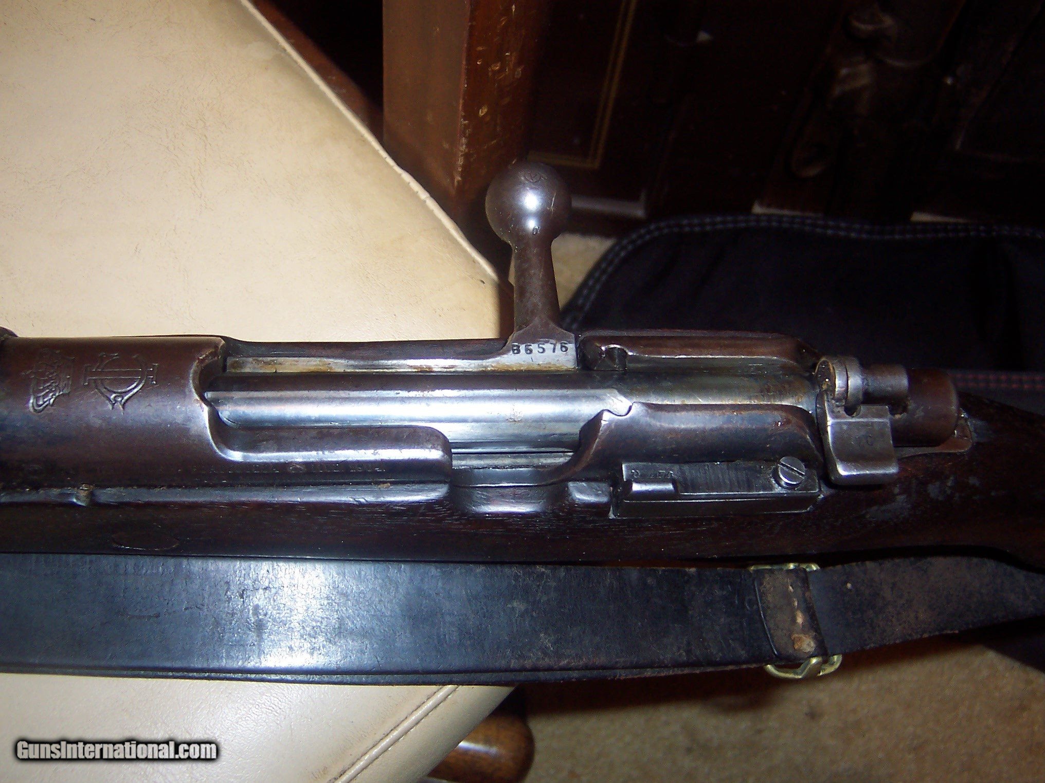 Description: fine bore , all original and vg condition matching serial # 89576 may have origina sling , appers top be a 1904/39 , works fine in dry fire blue brown patina , 2 inch cracks in one side of butt stock fwd of butt plate c&r ok should be 8mm mauser caliber feeds 8mm and ejects fine i have never fired but retuirns welcomeI GOT PAYMENT BUT NEED C&R OR FFL SOLD Curio/Relic: Yes |