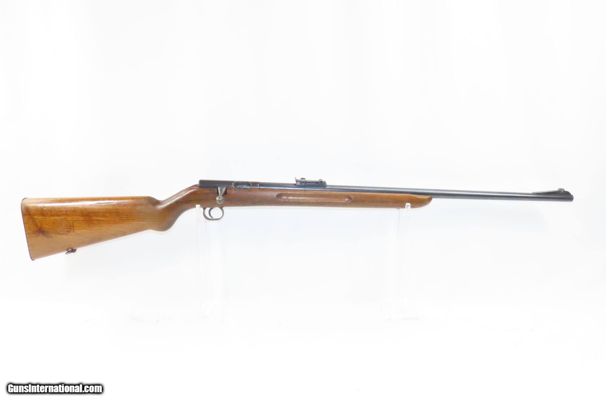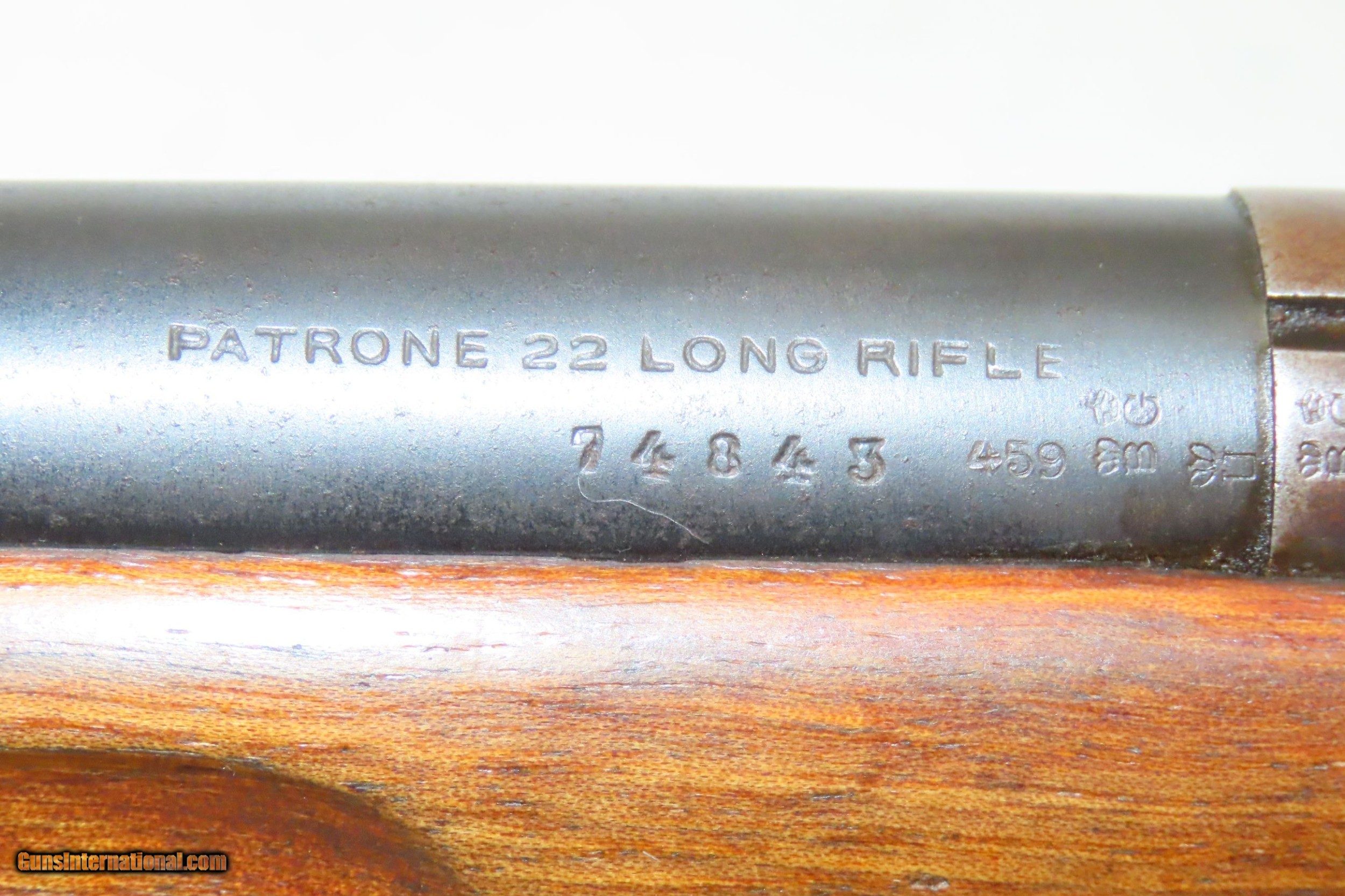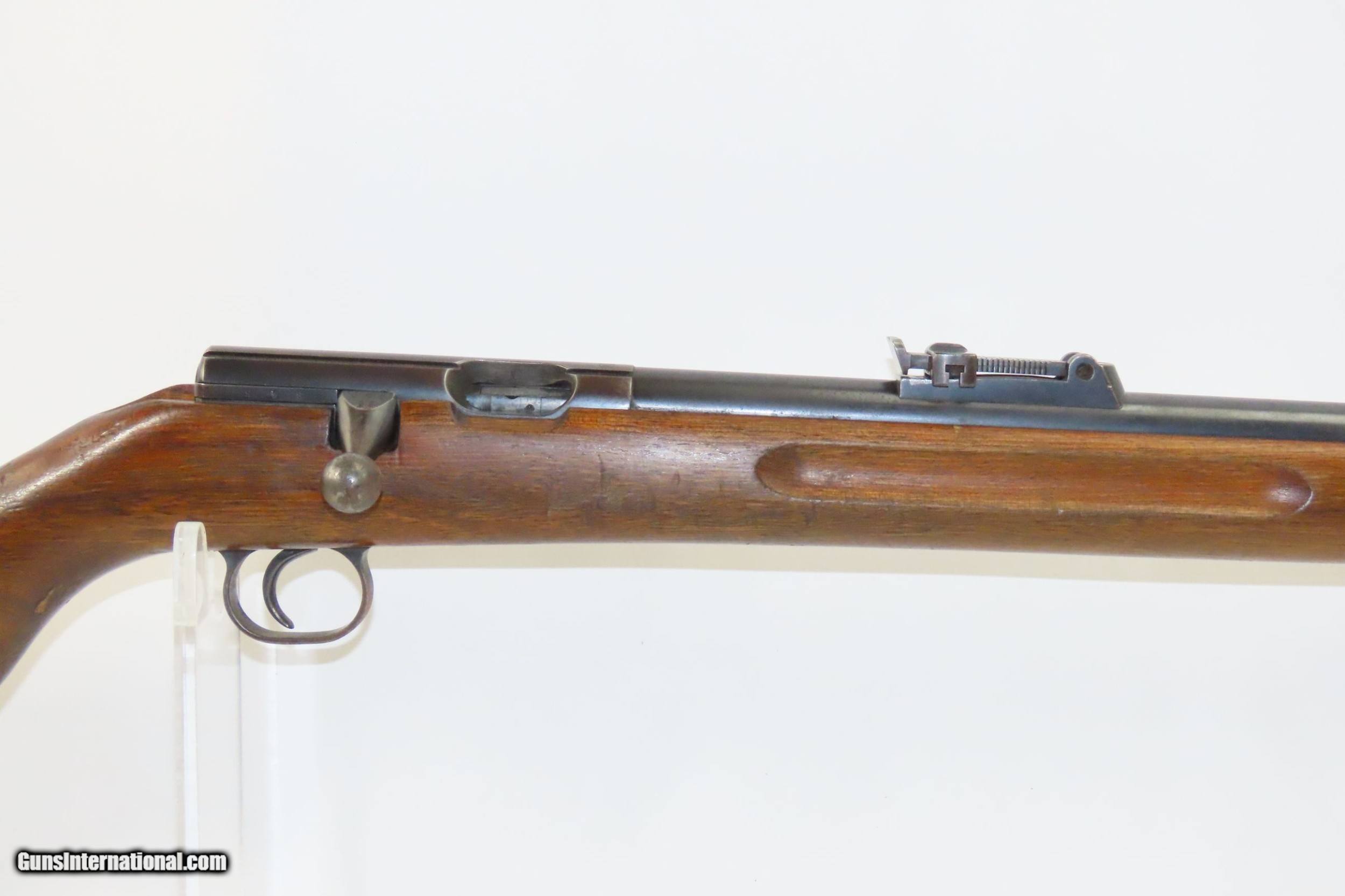 Description: Pre-WORLD WAR II German MAUSER Model 350 Series PATRONE Bolt Action Rifle SINGLE SHOT Training/Target Rifle Here we present a C&R German Mauser Werke Model 350 Series Patrone Rifle manufactured circa the 1930s. This single shot bolt action Mauser Werke rifle was manufactured in Oberndorf, Germany and was used primarily as a target or training rifle, though of course even a .22 rimfire would have been a useful weapon to a partisan or civilian during the war. The Mauser logo is on top of the action and the receiver wall is marked “MAUSER WERKE A.G. OBERNDORF A.N.”, along with various proof marks. The right side of the stock is clearly stamped with the Mauser logo. The overall condition is very good. Original blue preserved. Strong action. Nice 2-stage trigger. Bright, nicely rifled bore. Solid stock containing and expected amount of wear. The numbers match and visible markings are sharp. No import markings lends credence to the possibility of this being a bring-back by a GI. This is a neat little piece of German and military history. This firearm is classified as a Curio & Relic. Barrel is 25-1/2 inches. Caliber: .22 Long Rifle Rimfire Overall condition as seen in photos. Very Fast. Very Safe. FREE SHIPPING. Will need to be sent to your local FFL or C&R licensee. This firearm is classified as a Curio & Relic. Guaranteed AUTHENTIC & Includes CERTIFICATE OF AUTHENTICITY. ancestryguns $1250 #217552 SOLD Curio/Relic: Yes |