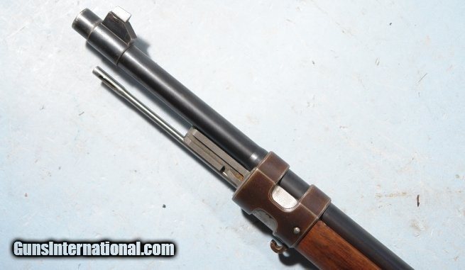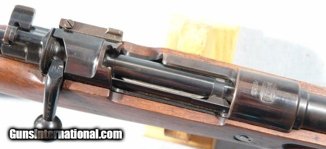 Description: PRE WW2 MAUSER OBERNDORF BANNER K PRE K98K 8MM COMMERCIAL STANDARD CONTRACT RIFLE. Serial numbered "509XX" and all matching. In the same range as the early "D.R." Reichsbahn rifles. Don't think export(Chinese or Spanish contracts) as no export markings on it. Condition also denotes non export as many that did are in poor condition from being crated and issued. This one appears almost never used in battle with all of it's original blue and crisp markings remaining as well as it's mirror bright crisp bore and rifling. Besides it's Mauser-Werke A.G Oberndorf a/N receiver address it has correct BUGN proofs(also on matching bolt). Turned down bolt(without relief cut for knob) matches number on rest of gun. Stock with no sling cut or disc as has sling swivel. Upper sling swivel on barrel band. No other markings on wood but correct in form. Similar to Standard Modell. SOLD Curio/Relic: Yes |