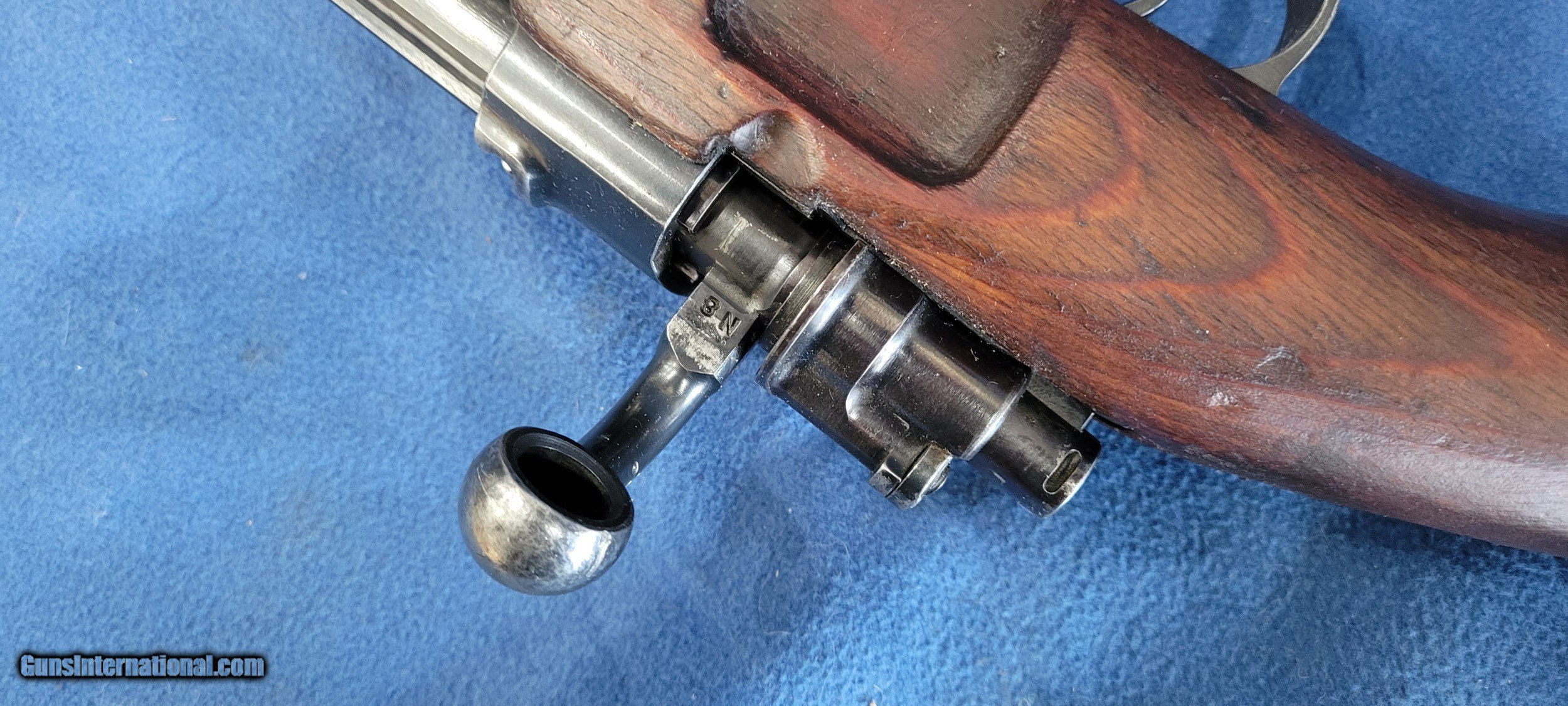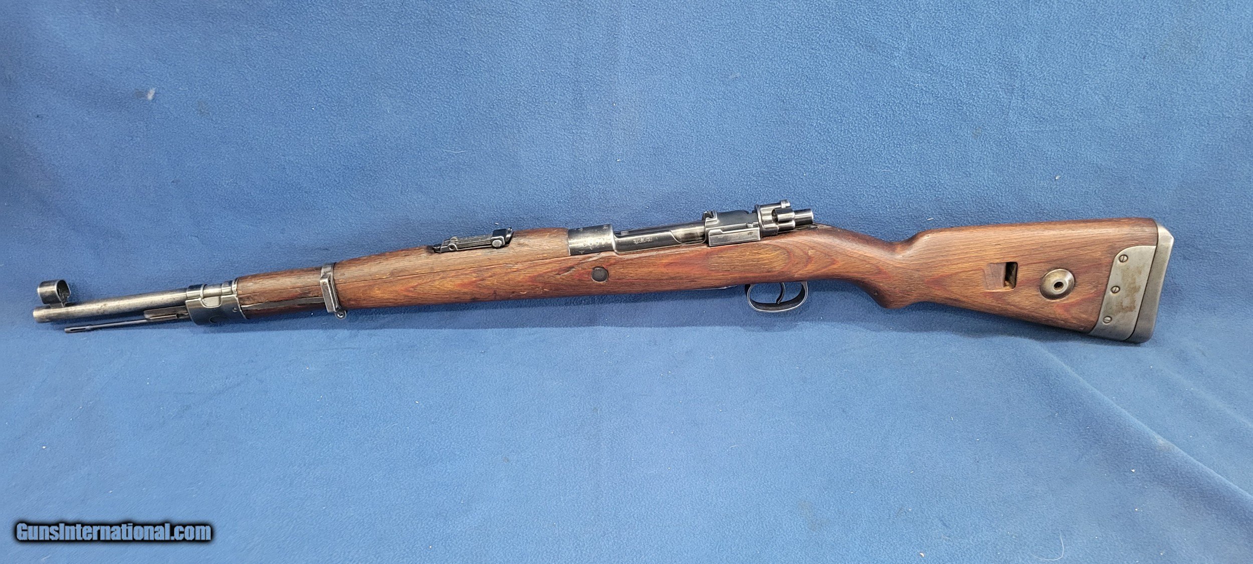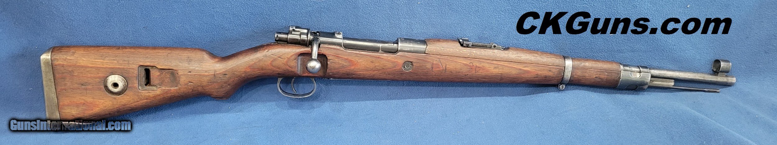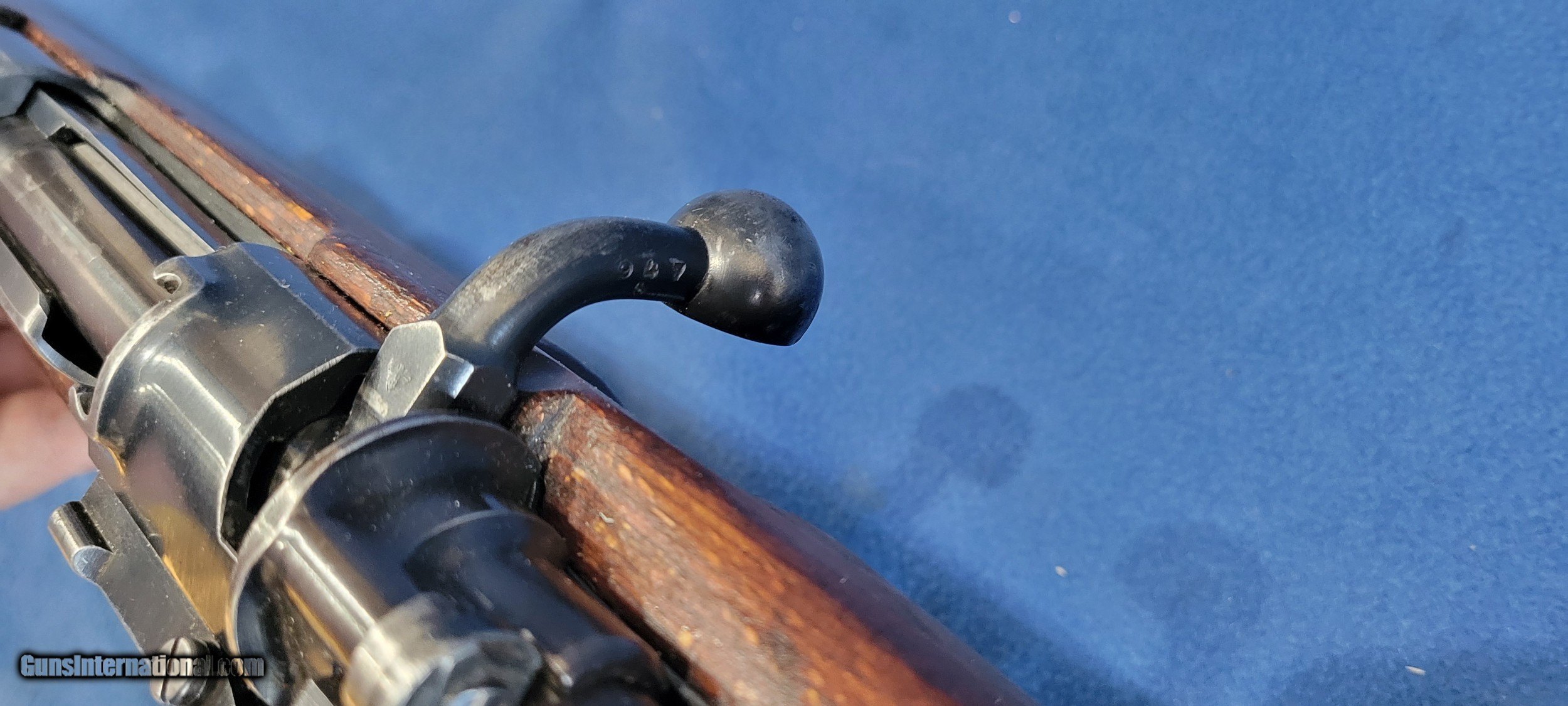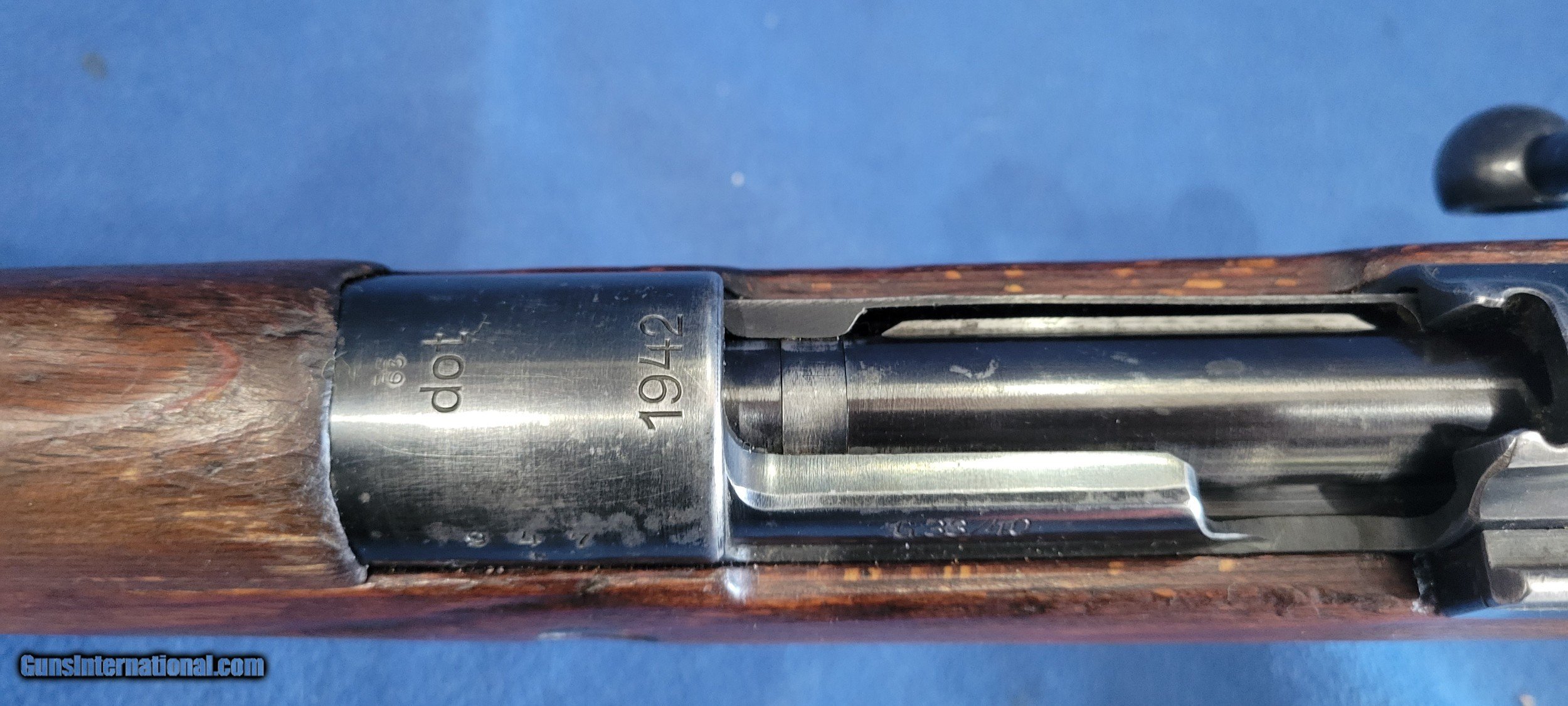 Description: INV. 10680 RARE, ALPINE CARBINE MAUSER "DOT" (WAFFENWERK BRUNN) G33/40, CAL. 8MM, SER.1997b, MFG. 1942. THIS NAZI ALPINE CARBINE IS IN REALLY GREAT SHAPE IT HAS RETAINED ABOUT 90-95% OF THE ORIGINAL BLUE. THE LITTLE LOSS THERE IS, IS DUE TO SHARP EDGE SILVERING, AND THE USUAL FADING ON THE BARREL BANDS. THE RECEIVER AND BOLT MATCH. THE BARRL BAND AND TRIGGER GROUP, BASEPLATE ARE NOT NUMBERED. THE BOLT IS THE CORRECT HOLLOW TYPE. THE RECEIVER IS STAMPED "DOT/1942" WITH TWO CORRECT WAFFENAMTS**. THE HARDWOOD LAMINATED STOCK HAS RETAINED ABOUT 90+% 0F THE FACTORY LACQUER AND IS SURPRISINGLY FREE OF SPLITS AND GOUGES. IT HAS THE PROPER NARROW FRONT SIGHT BASE AND SIGHT COVER. THE SLIDE RAILS, BOLT FACE AND FEED RAMP SHOW SLIGHT IF ANY WEAR. THE BORE IS SUPER, LASER BRIGHT WITH RAZOR SHARP RIFLING AND NOT A WHISP OF FROST. IT COMES WITH ONE ORIGINAL RAM ROD AND AN ORIGINAL NAZI SLING. THIS RARE "ALPINE CARBINE" REALLY A GREAT FIND AT THIS PRICE ......$3595.*** **THE WHITE CRAYON IS TO SHOW THAT ALL MARKINGS ARE CORRECT. IT IS HARMLESS AND EASILY REMOVED WITH LIGHTER FLUID AND A BRUSH. WE WILL DO IT ON REQUEST. *** 100% OF THE GUN'S PRICE IS SATISFACTION GUARANTEED. To purchase this firearm or if you want to request more information contact us at: Email ckguns[at]ymail[dot]com Phone 201-512-0002 Cell 201-575-6838 FAX 201-215-4759 We accept most major credit cards. Prices shown are Discounted 3% for Cash or Check. The buyer must be familiar with all the laws governing the purchase and the ownership of firearms in their own city and state. The Yankee Armorer, Inc is not responsible for any failure to comply with or observe these laws. The Yankee Armorer, Inc will only ship after full payment and receipt of all required documents. Shipping: Add $35.00 for handguns, $45.00 for long guns. New Jersey buyers are subject to a 7% sales tax. The Yankee Armorer, Inc offers a 3 day inspection period with full refund upon return of intact firearm and in the original condition. The Yankee Armorer, Inc offers a no interest lay away program - 25% down; 25% in 30 days; 25% in 60 days; and full payment in 90 days. Any violation of this policy is subject to restocking and forfeiture of all payments. Any variation from this policy must be agreed to in advance. Unshipped Cancelled sales are subject to a 20% restocking fee. Be advised that all firearms sold by The Yankee Armorer, Inc. or the Gun Exchange, LLC (SELLER) are sold as collector’s items. They have not been fired or tested for safety and must be examined by a license gunsmith prior to use. By purchasing any item from the (SELLER), you are agreeing to hold the (SELLER) free from any damages or lawsuits of any nature. Any item left for transfer or storage will be charged to $25.00 per month, per item from the day of its receipt. Any variation from this policy must be agreed to in advance. Store hours 10:00 am to 5:00 pm Tuesday -Saturday. It's always best to call for appointment. Store 201-512-0002, cell 201-575-6838. SOLD |