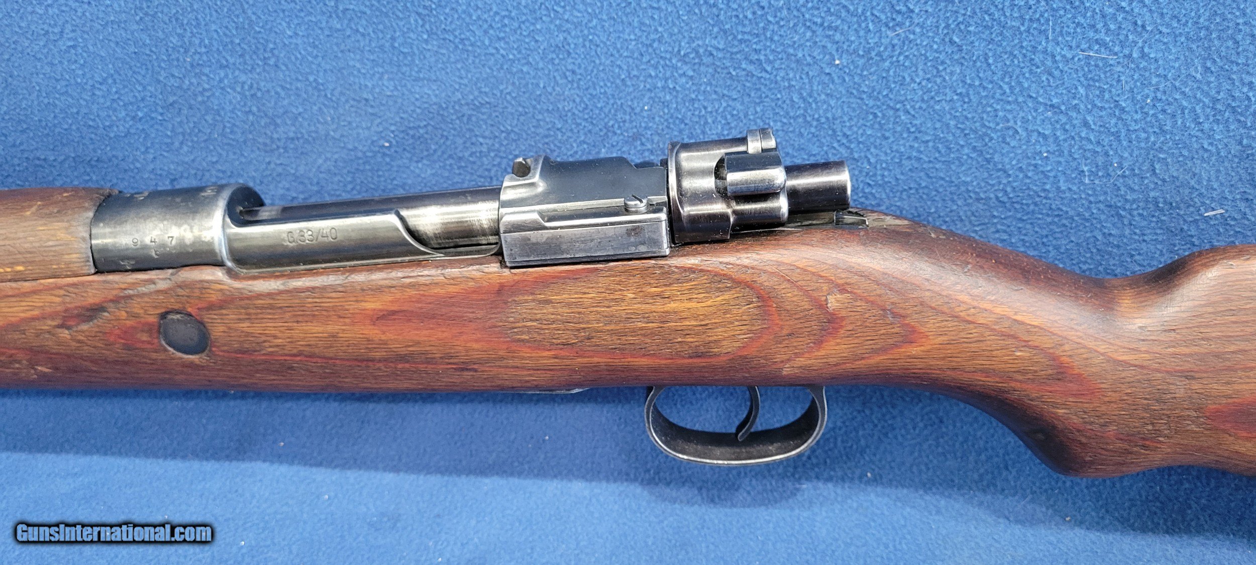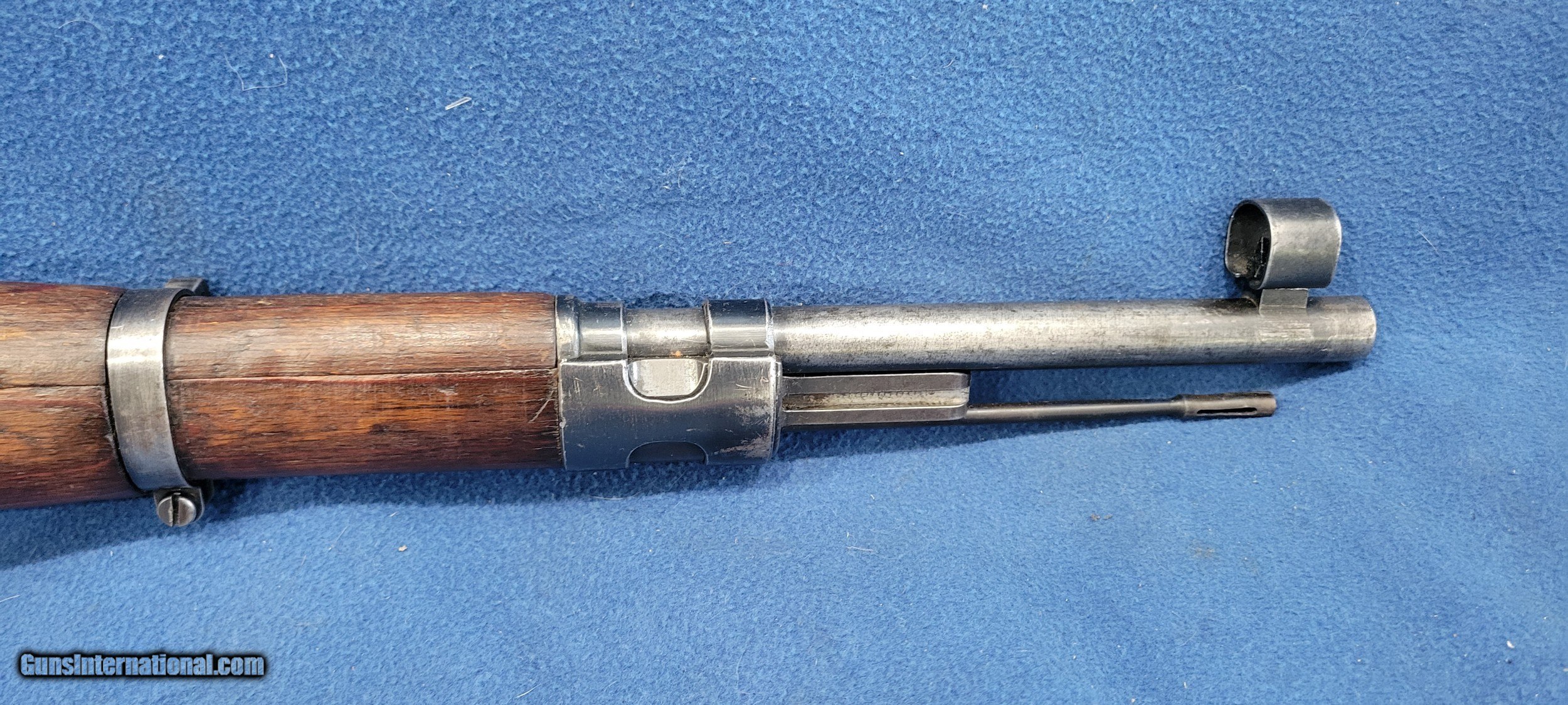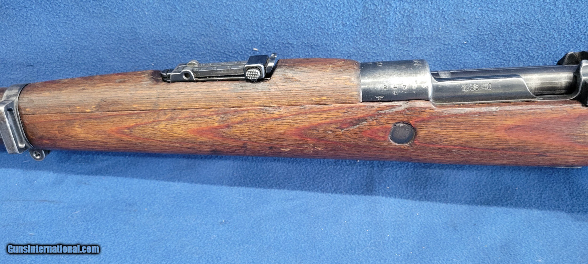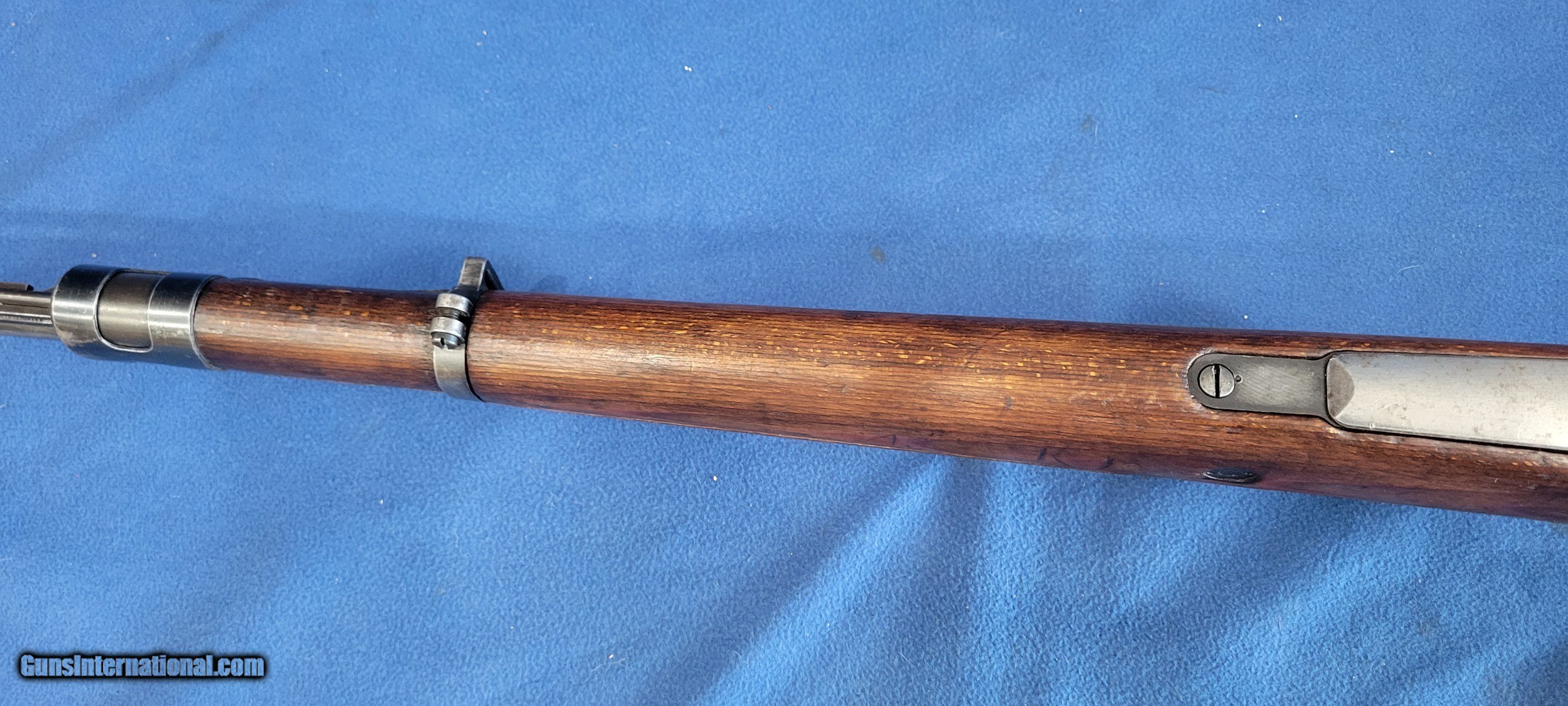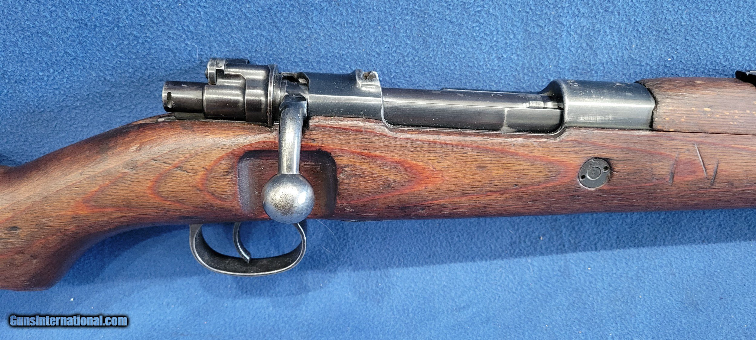 Description: INV. 10680 RARE, ALPINE CARBINE MAUSER "DOT" (WAFFENWERK BRUNN) G33/40, CAL. 8MM, SER.1997b, MFG. 1942. THIS NAZI ALPINE CARBINE IS IN REALLY GREAT SHAPE IT HAS RETAINED ABOUT 90-95% OF THE ORIGINAL BLUE. THE LITTLE LOSS THERE IS, IS DUE TO SHARP EDGE SILVERING, AND THE USUAL FADING ON THE BARREL BANDS. THE RECEIVER AND BOLT MATCH. THE BARRL BAND AND TRIGGER GROUP, BASEPLATE ARE NOT NUMBERED. THE BOLT IS THE CORRECT HOLLOW TYPE. THE RECEIVER IS STAMPED "DOT/1942" WITH TWO CORRECT WAFFENAMTS**. THE HARDWOOD LAMINATED STOCK HAS RETAINED ABOUT 90+% 0F THE FACTORY LACQUER AND IS SURPRISINGLY FREE OF SPLITS AND GOUGES. IT HAS THE PROPER NARROW FRONT SIGHT BASE AND SIGHT COVER. THE SLIDE RAILS, BOLT FACE AND FEED RAMP SHOW SLIGHT IF ANY WEAR. THE BORE IS SUPER, LASER BRIGHT WITH RAZOR SHARP RIFLING AND NOT A WHISP OF FROST. IT COMES WITH ONE ORIGINAL RAM ROD AND AN ORIGINAL NAZI SLING. THIS RARE "ALPINE CARBINE" REALLY A GREAT FIND AT THIS PRICE ......$3595.*** **THE WHITE CRAYON IS TO SHOW THAT ALL MARKINGS ARE CORRECT. IT IS HARMLESS AND EASILY REMOVED WITH LIGHTER FLUID AND A BRUSH. WE WILL DO IT ON REQUEST. *** 100% OF THE GUN'S PRICE IS SATISFACTION GUARANTEED. To purchase this firearm or if you want to request more information contact us at: Email ckguns[at]ymail[dot]com Phone 201-512-0002 Cell 201-575-6838 FAX 201-215-4759 We accept most major credit cards. Prices shown are Discounted 3% for Cash or Check. The buyer must be familiar with all the laws governing the purchase and the ownership of firearms in their own city and state. The Yankee Armorer, Inc is not responsible for any failure to comply with or observe these laws. The Yankee Armorer, Inc will only ship after full payment and receipt of all required documents. Shipping: Add $35.00 for handguns, $45.00 for long guns. New Jersey buyers are subject to a 7% sales tax. The Yankee Armorer, Inc offers a 3 day inspection period with full refund upon return of intact firearm and in the original condition. The Yankee Armorer, Inc offers a no interest lay away program - 25% down; 25% in 30 days; 25% in 60 days; and full payment in 90 days. Any violation of this policy is subject to restocking and forfeiture of all payments. Any variation from this policy must be agreed to in advance. Unshipped Cancelled sales are subject to a 20% restocking fee. Be advised that all firearms sold by The Yankee Armorer, Inc. or the Gun Exchange, LLC (SELLER) are sold as collector’s items. They have not been fired or tested for safety and must be examined by a license gunsmith prior to use. By purchasing any item from the (SELLER), you are agreeing to hold the (SELLER) free from any damages or lawsuits of any nature. Any item left for transfer or storage will be charged to $25.00 per month, per item from the day of its receipt. Any variation from this policy must be agreed to in advance. Store hours 10:00 am to 5:00 pm Tuesday -Saturday. It's always best to call for appointment. Store 201-512-0002, cell 201-575-6838. SOLD |